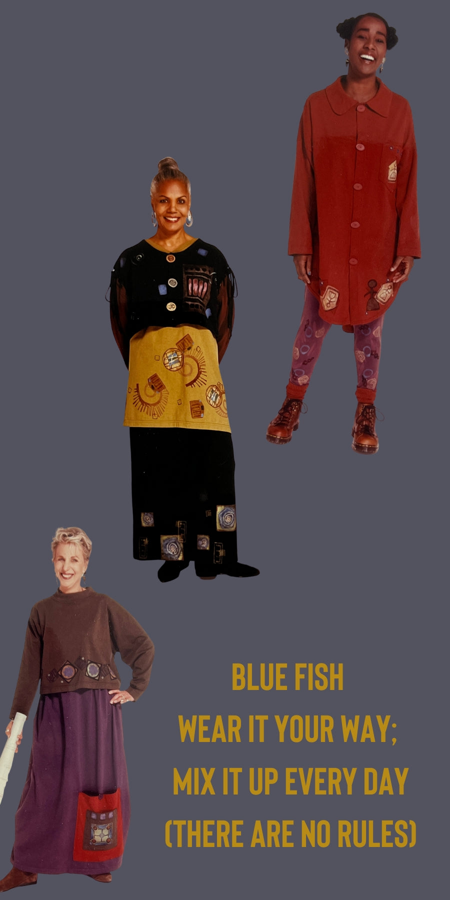 I hope this message finds you well and brimming with creativity as you begin to rediscover and remix your Blue Fish pieces into new and beautiful combinations. It has been 100% fun & delightful to find and revisit old favorites and see how easily they mix with newer pieces both in color and style. Vintage meets modern meets one of a kind looks that only YOU can create within your unique Blue Fish collection. YOU will find infinite possibilities to wear. You will always feel creative and comfortable. I hope these clothes have given you inspiration, joy and comfort- and the feeling of 'being yourself'