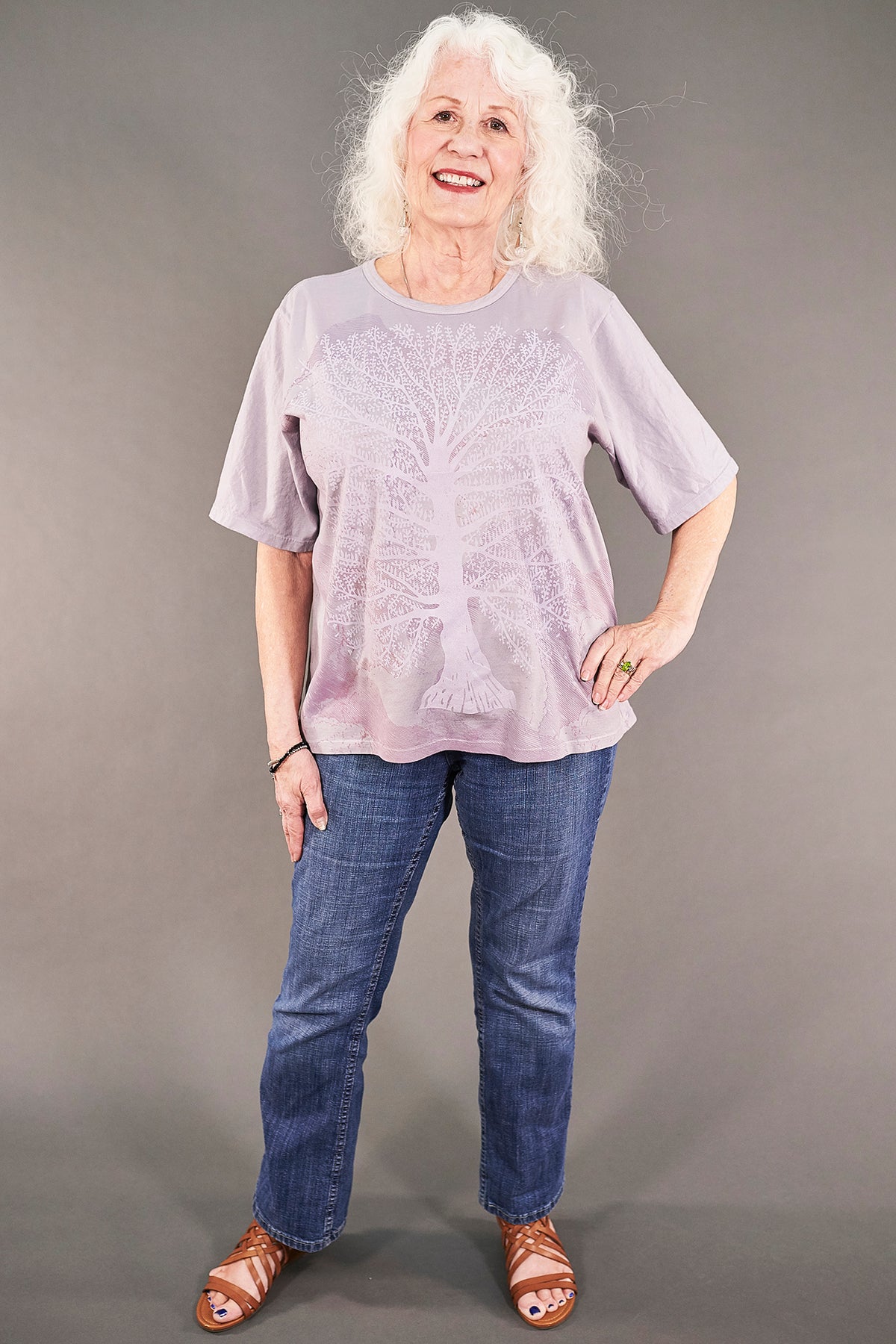 This basic layering tee will be your go-to for every outfit. Worn over, under, or just alone--it will provide the perfect basis for any Blue Fish look. We made this from an incredibly soft & comfortable organic cotton jersey that will last you a lifetime! Dreamy hand-printing on the front from our Fairfield, Iowa studio makes each a keepsake to treasure.