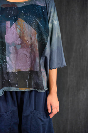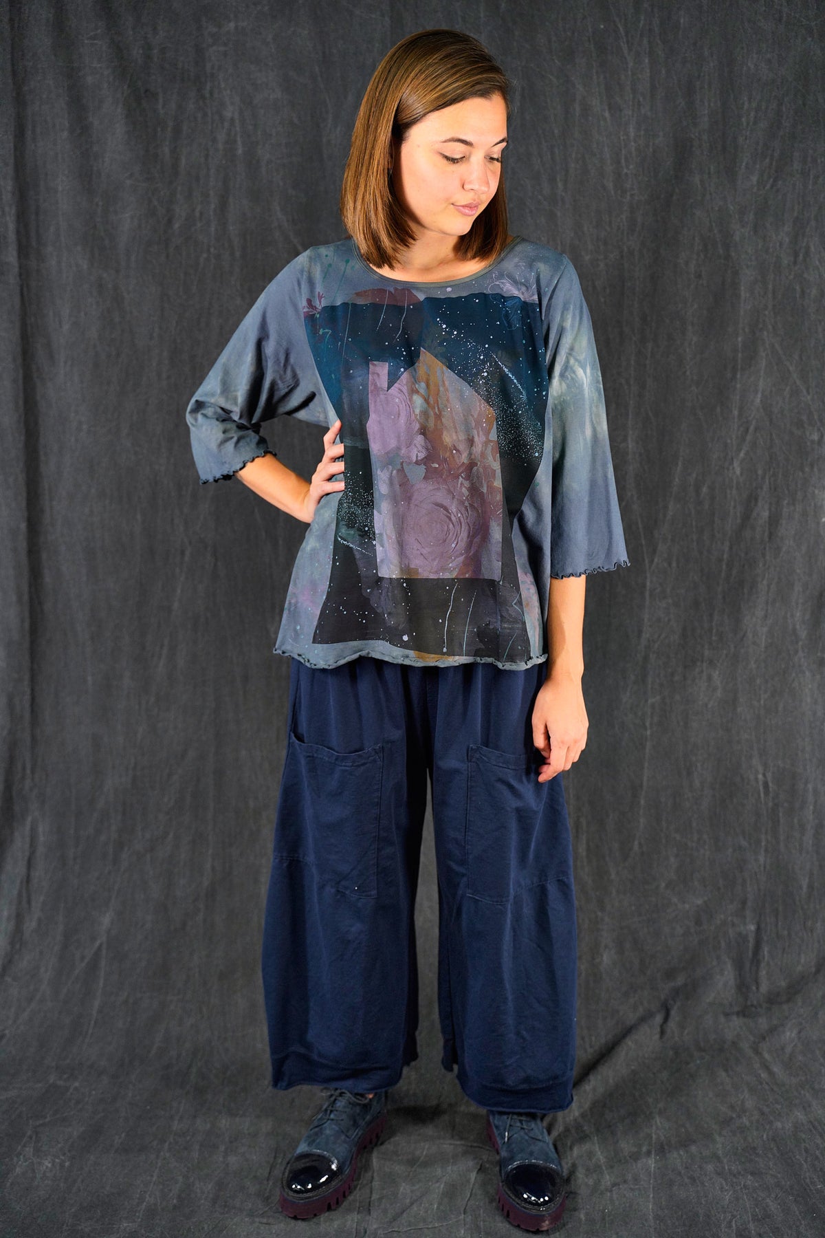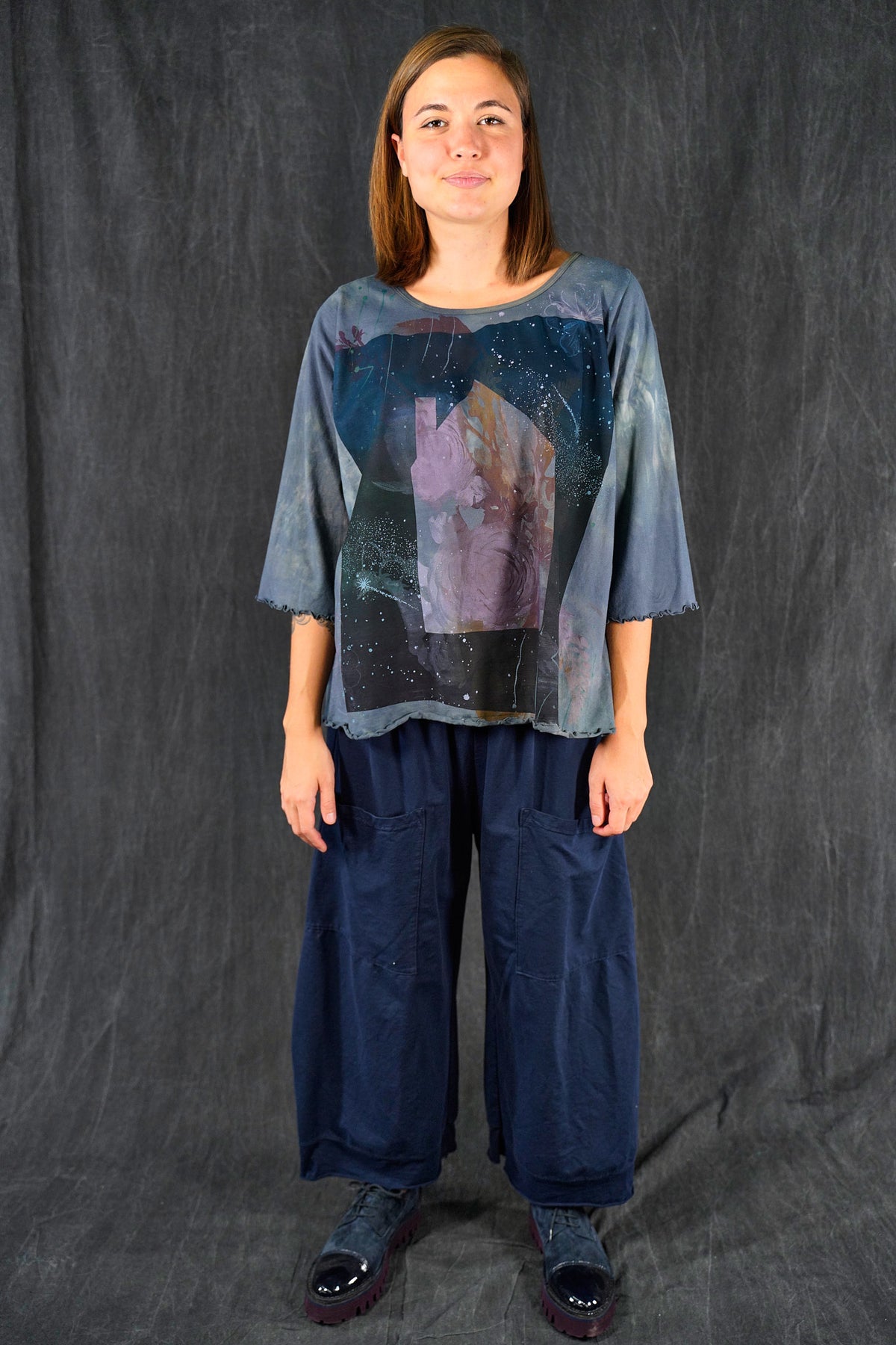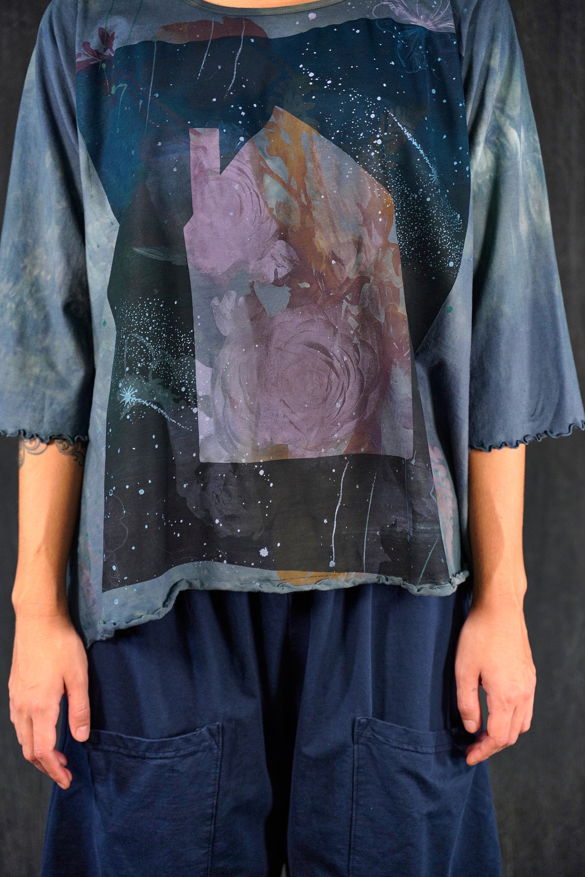 This cafe tee is HD- hand dyed and printed in our Blue Fish studio Our designs celebrates our fondness for art with textured and colorful accents in the imagery.