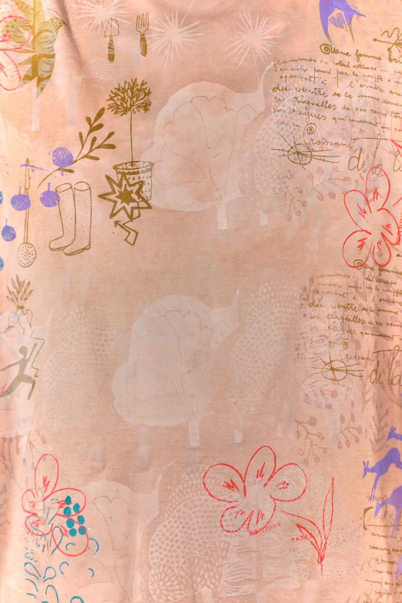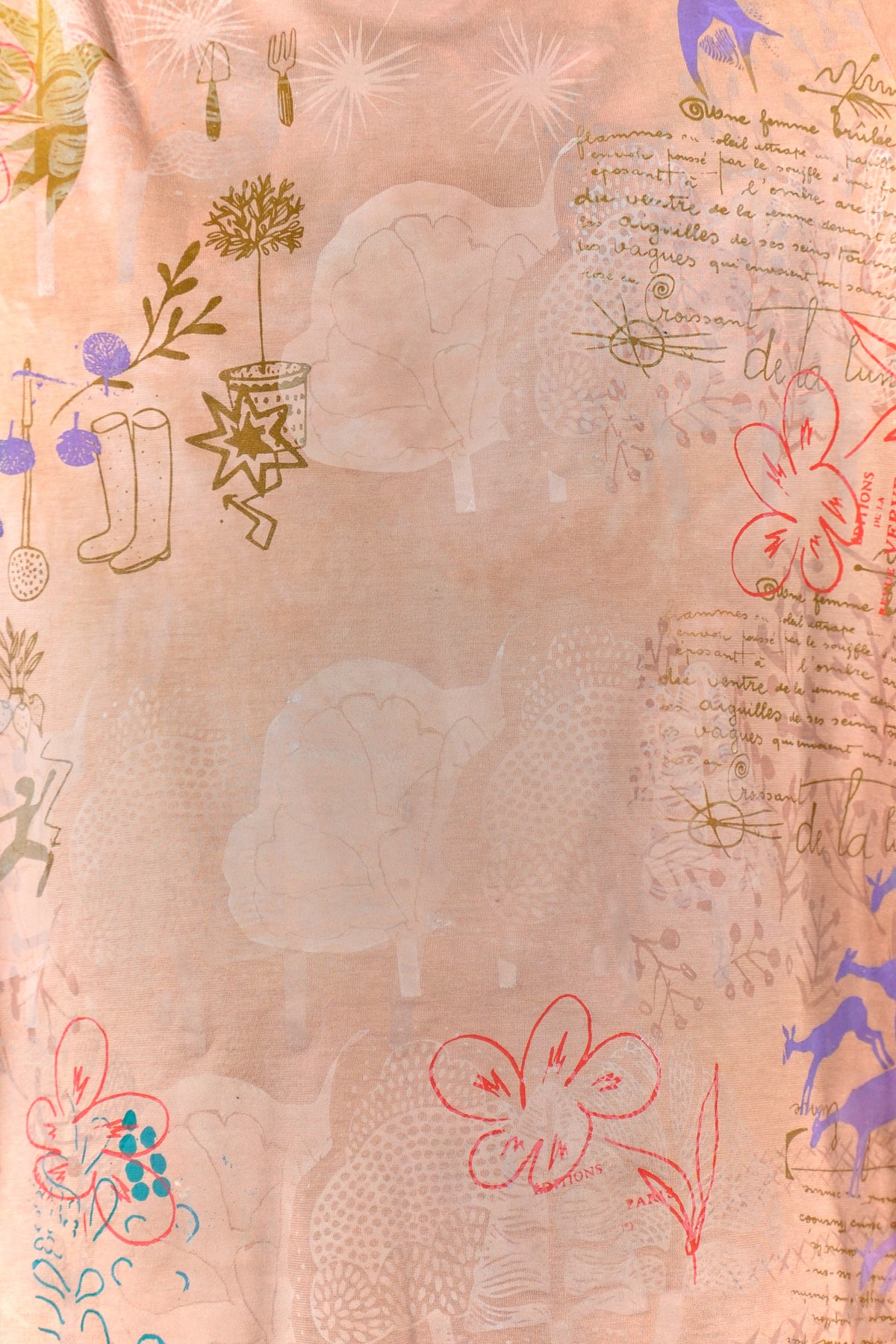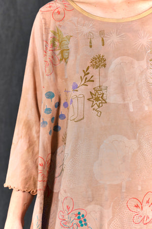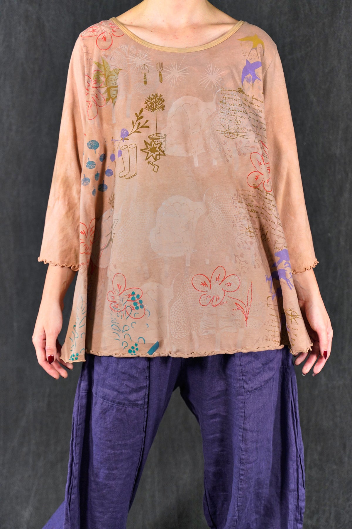 This cafe tee is HD- hand dyed and printed in our Blue Fish studio.  Our designs celebrates our fondness for art with textured and colorful accents in the imagery.
