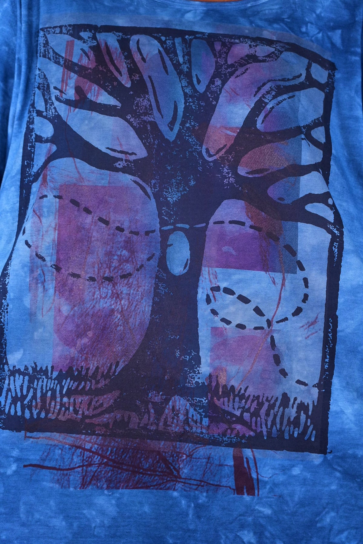 This cafe tee is HD- hand dyed and printed in our Blue Fish studio. Our designs celebrates our fondness for art with textured and colorful accents in the imagery.