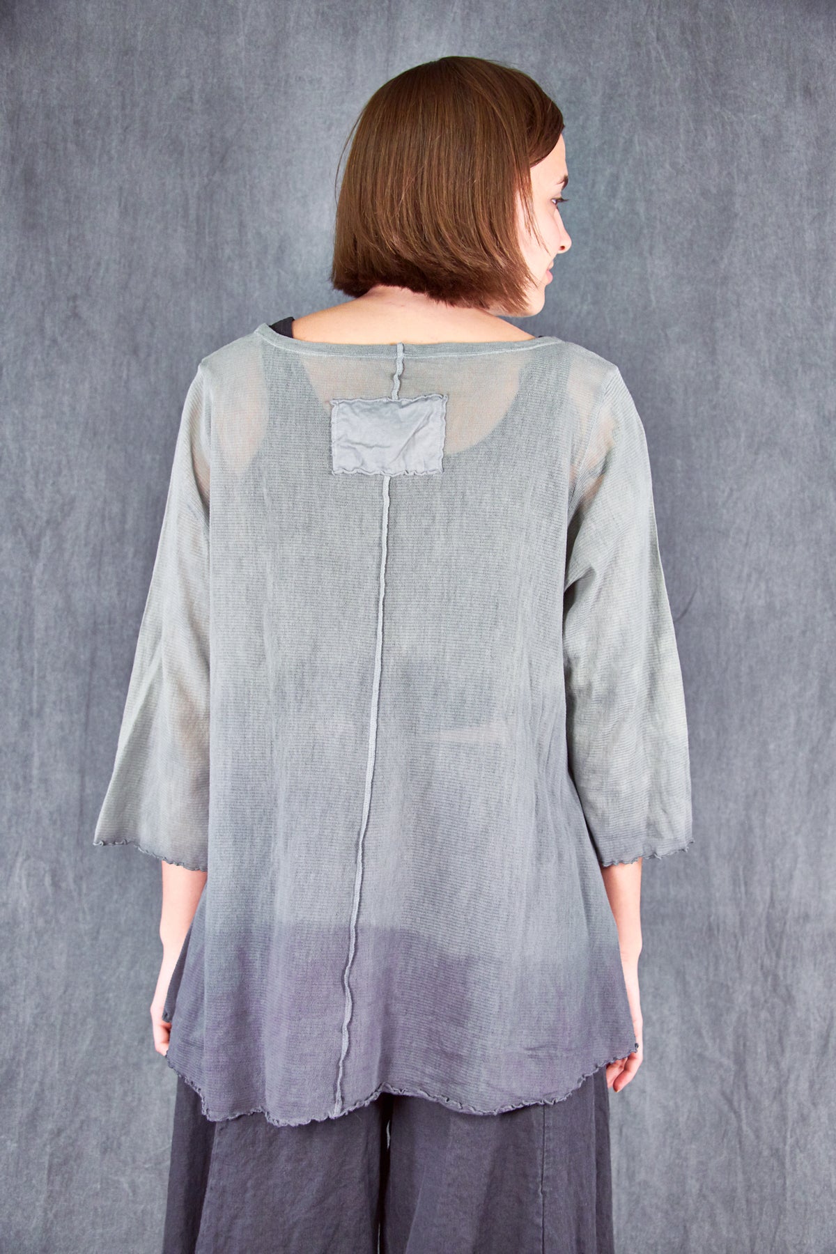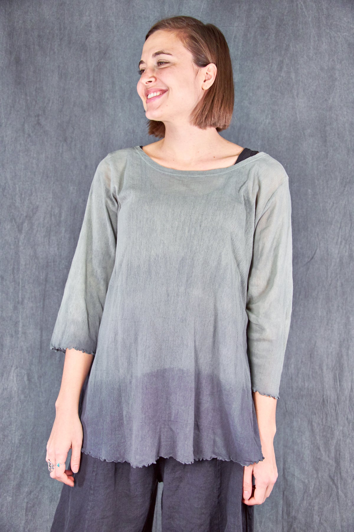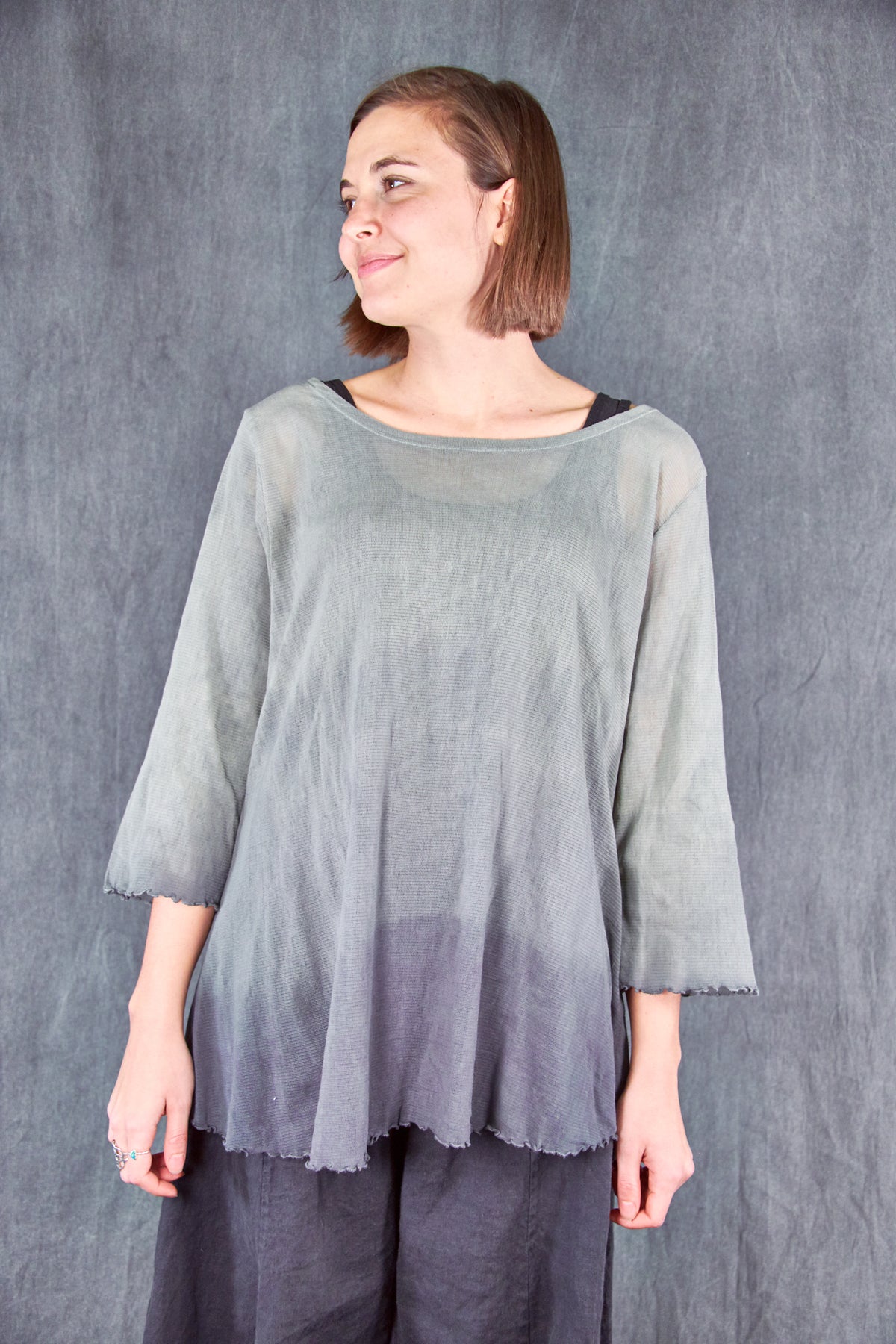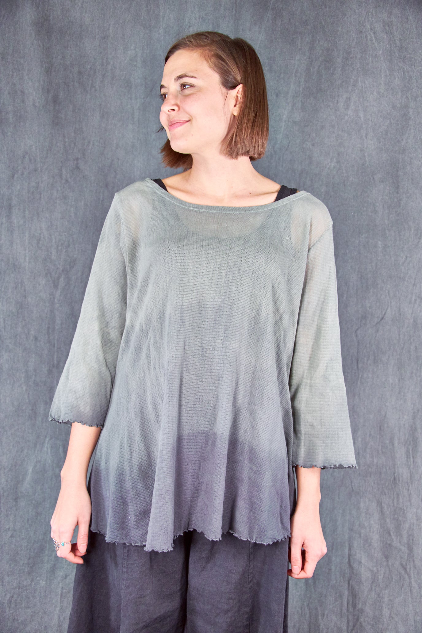 A gorgeous 100% cotton mesh ( yes it has some stretch) that has been carefully sewn and then hand dyed for you to create one of a kind texture. As these beautiful tops have been dyed by hand, each is unique and will vary from the patterning seen in the photo.