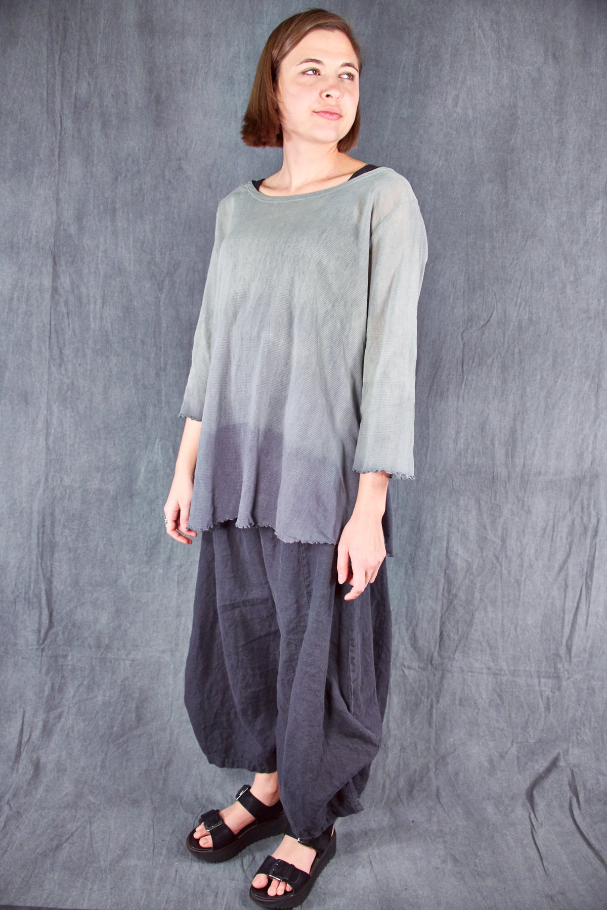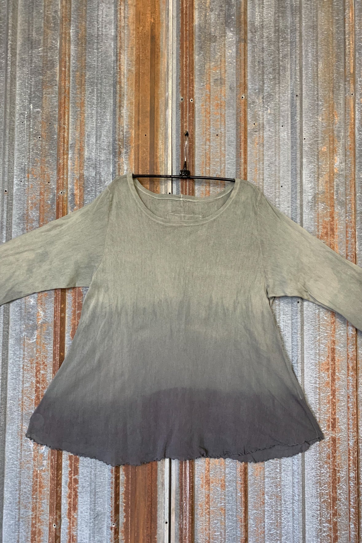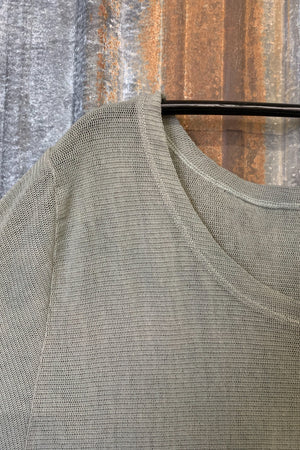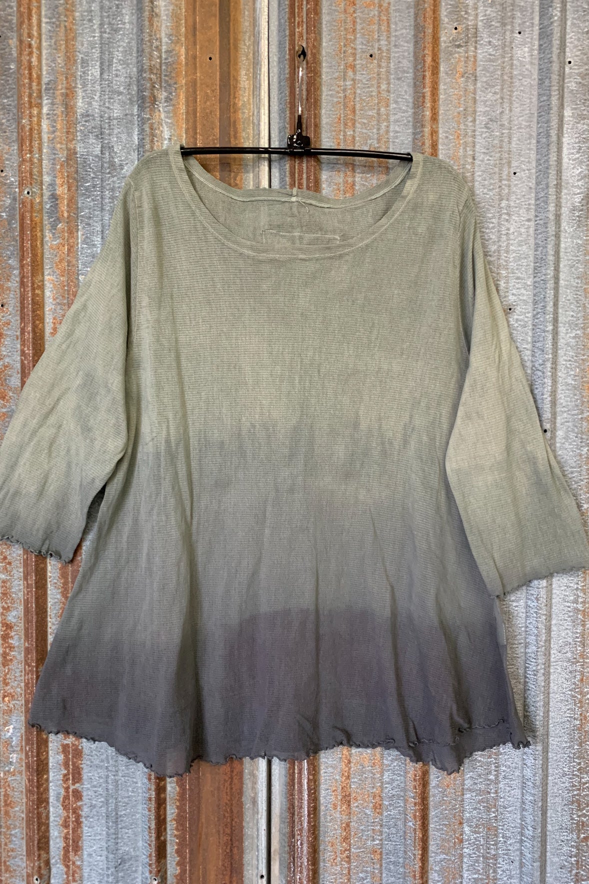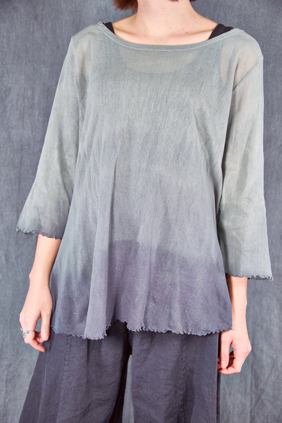 A gorgeous 100% cotton mesh ( yes it has some stretch) that has been carefully sewn and then hand dyed for you to create one of a kind texture. As these beautiful tops have been dyed by hand, each is unique and will vary from the patterning seen in the photo.