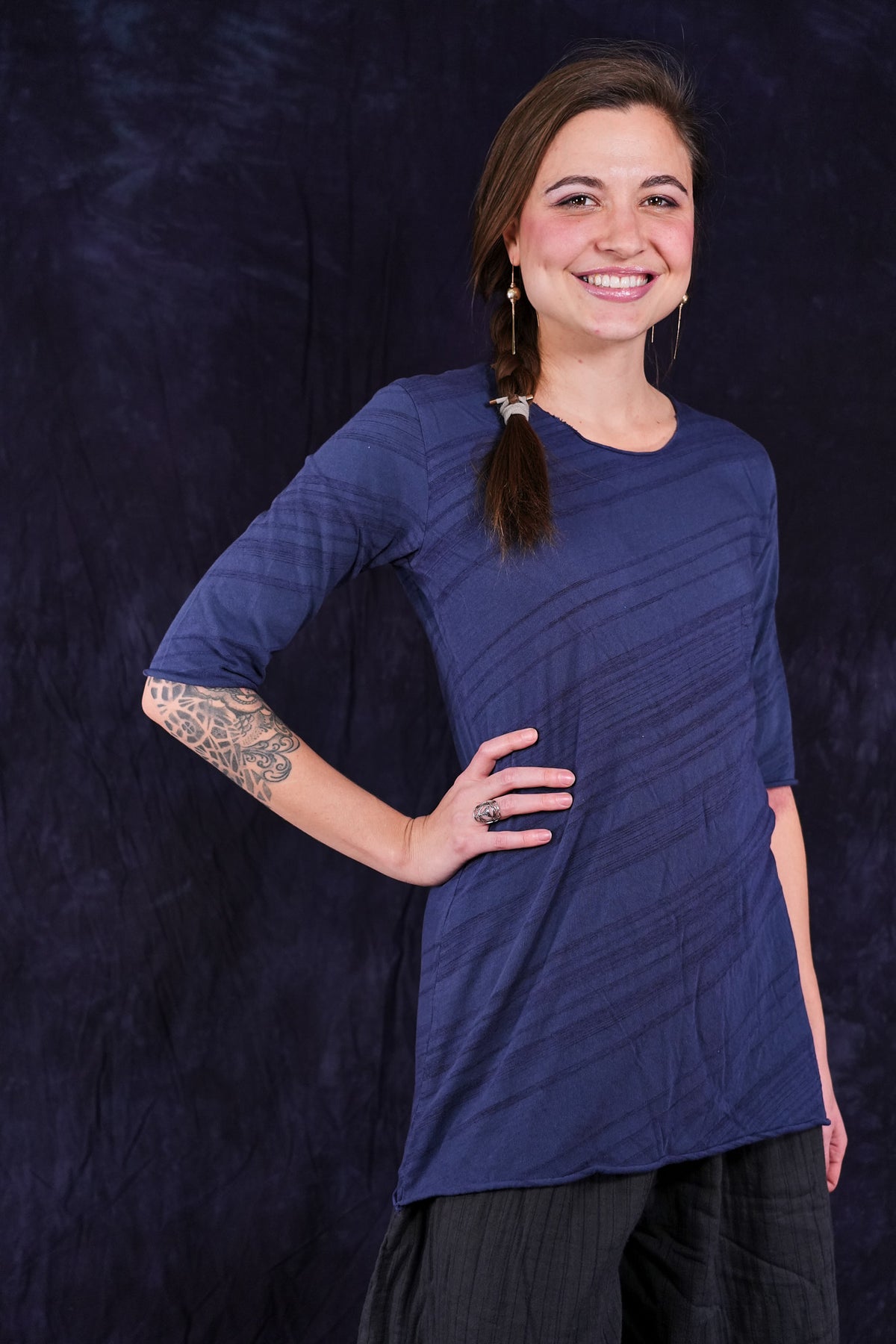 This basic layering tee will be your go-to for every outfit. Worn over, under, or just alone--it will provide the perfect basis for any Blue Fish look. Longer length and more fitted than our other tees for the perfect layer.