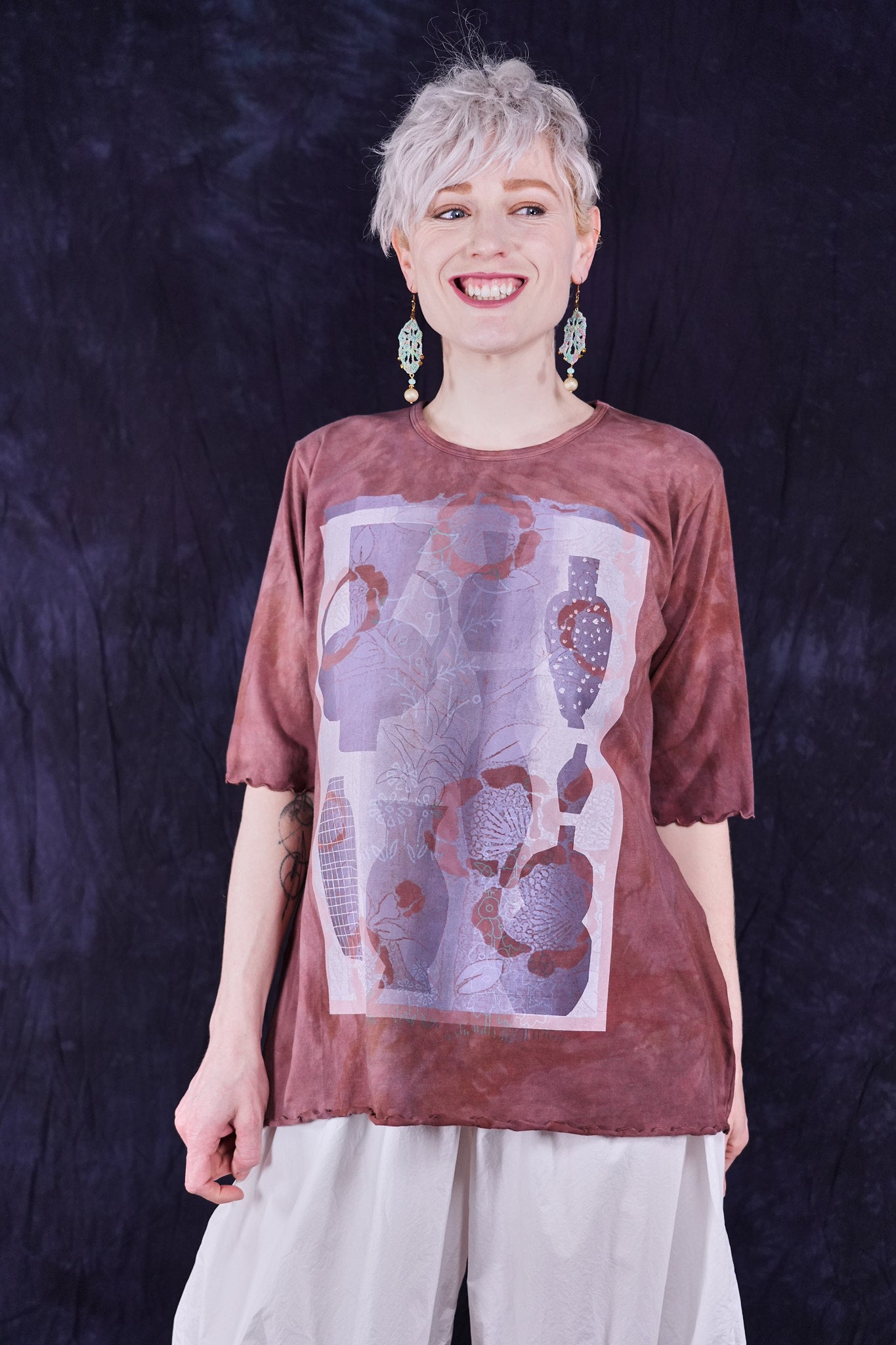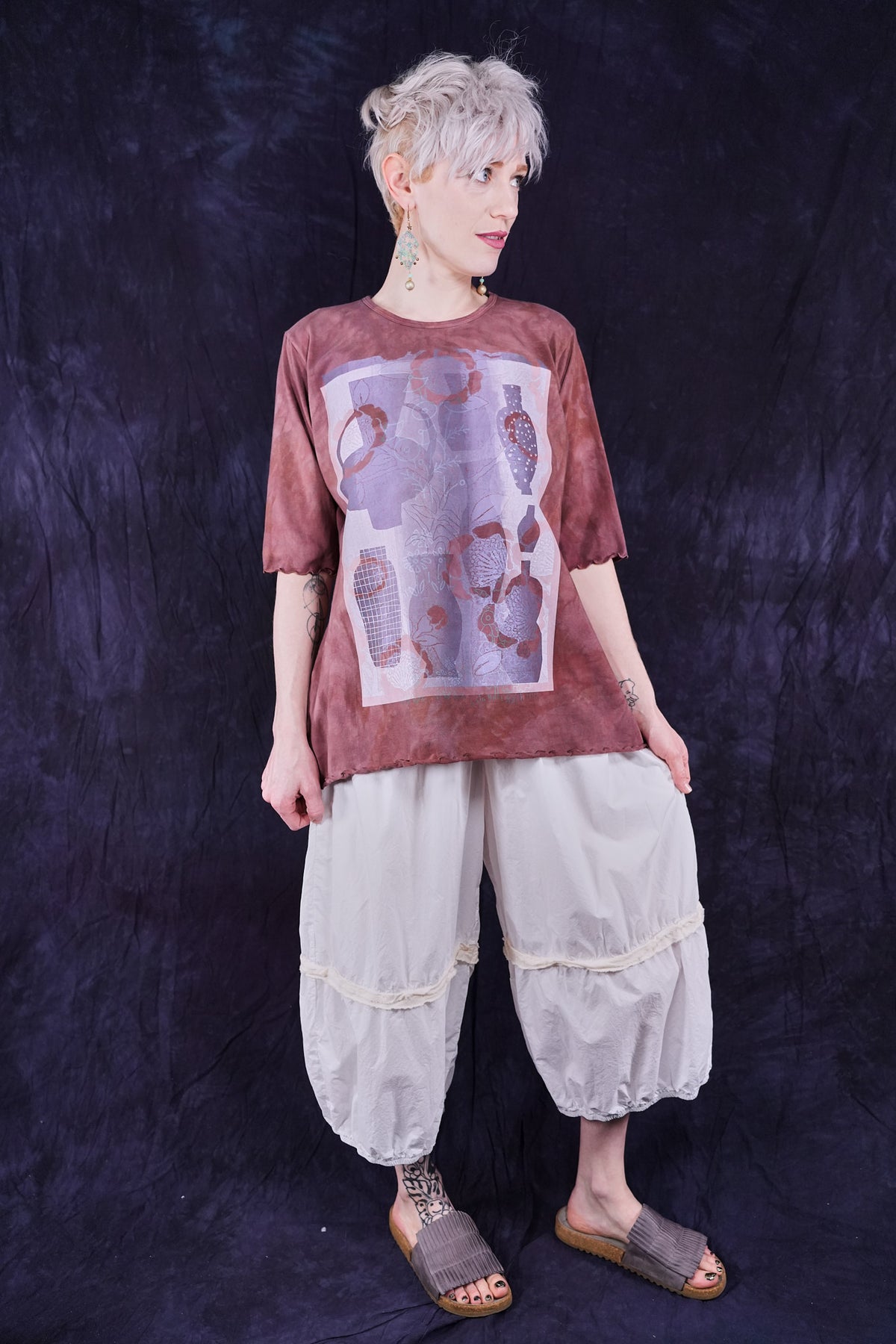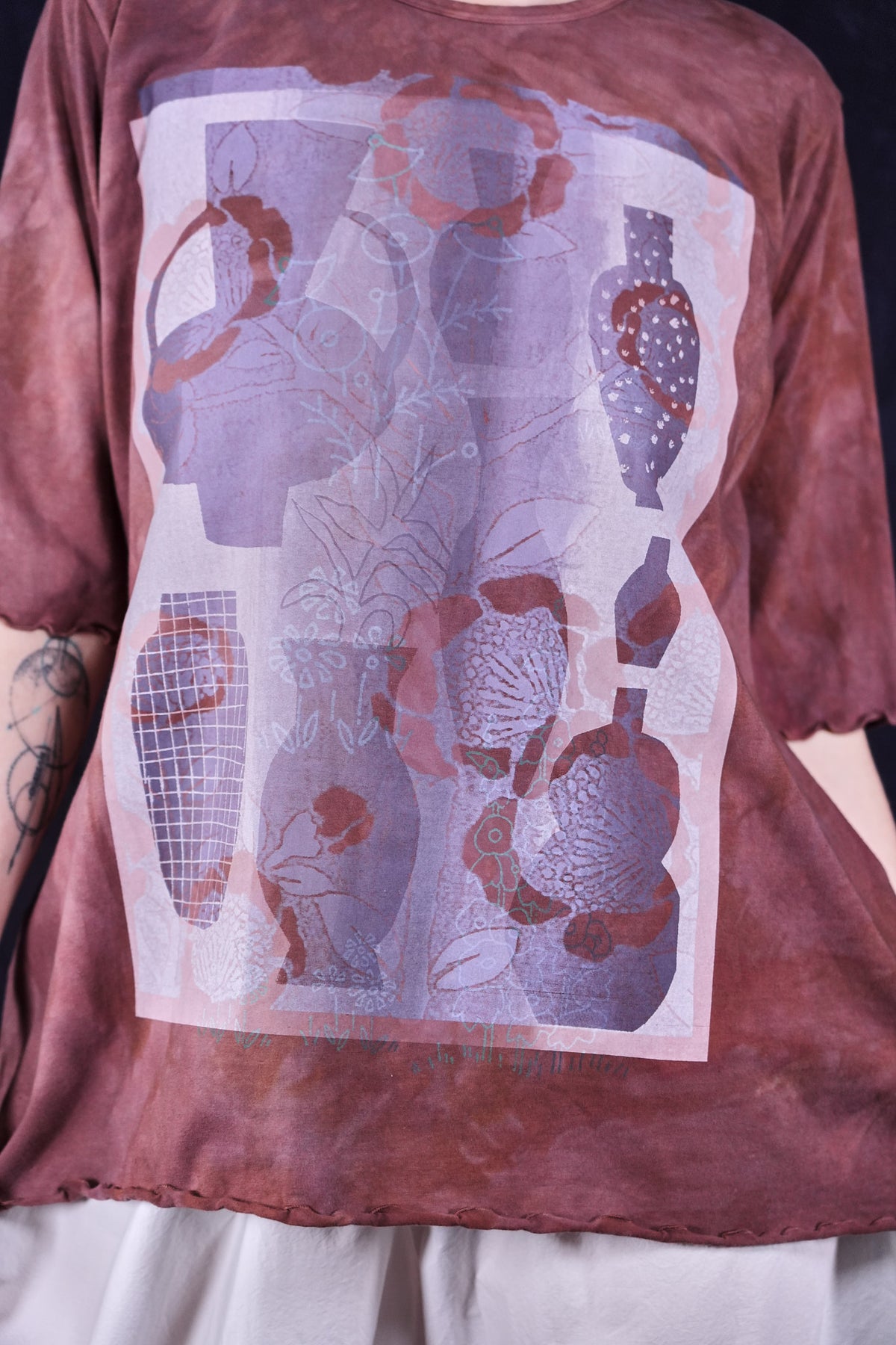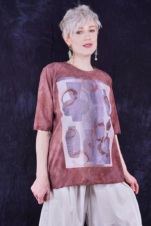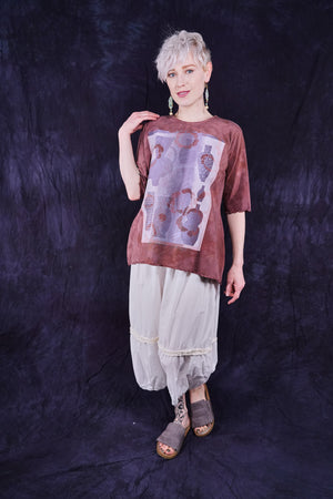 Vintage cotto hand dyed printed with vessels and vases