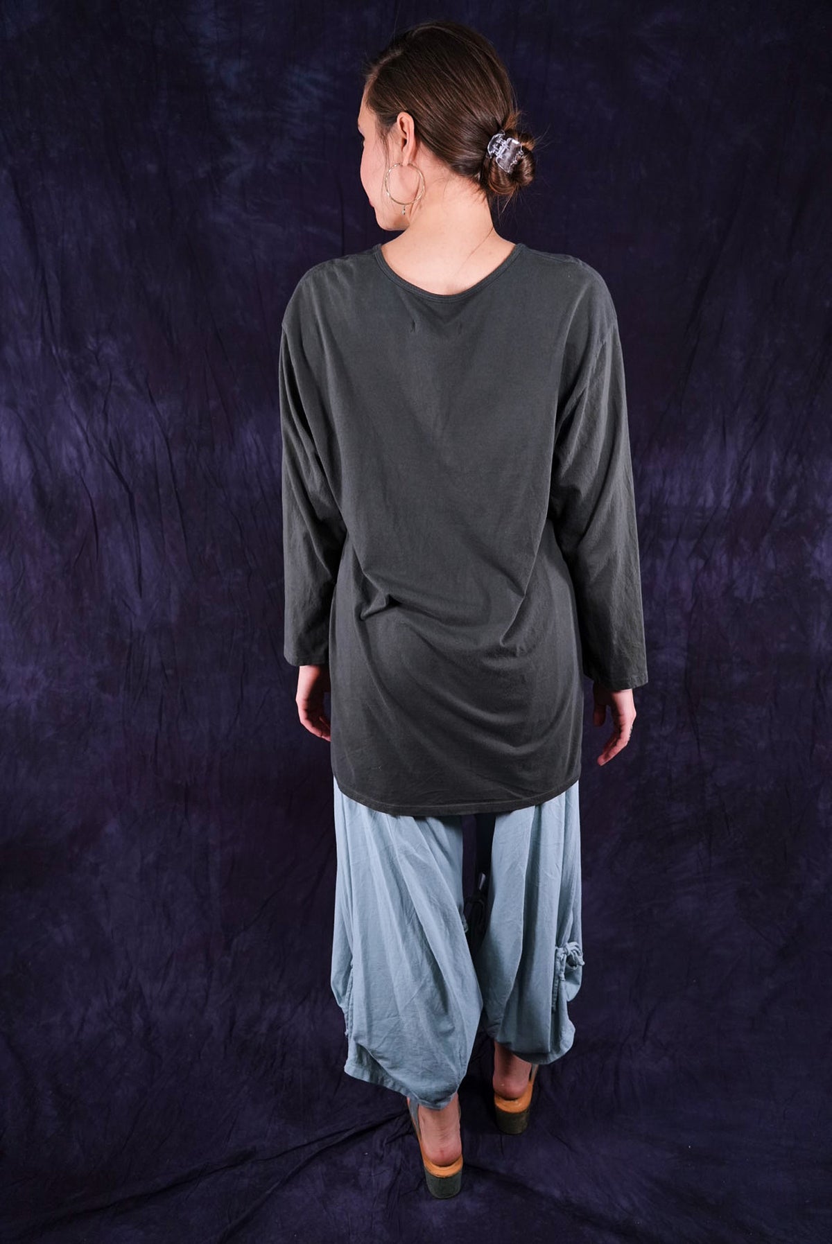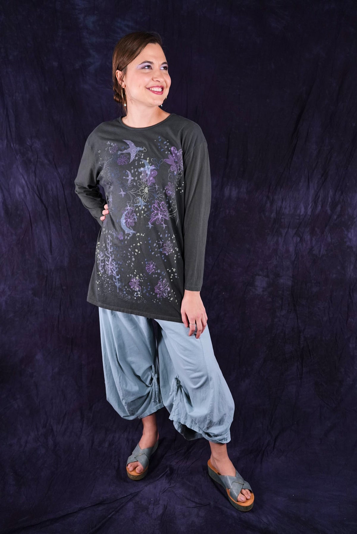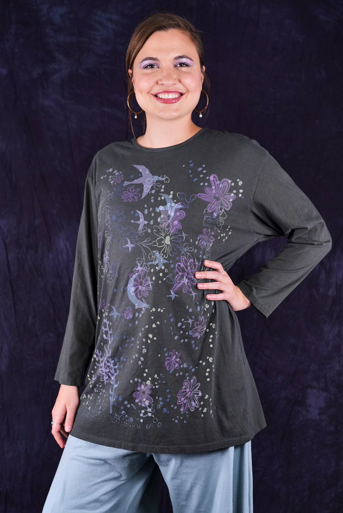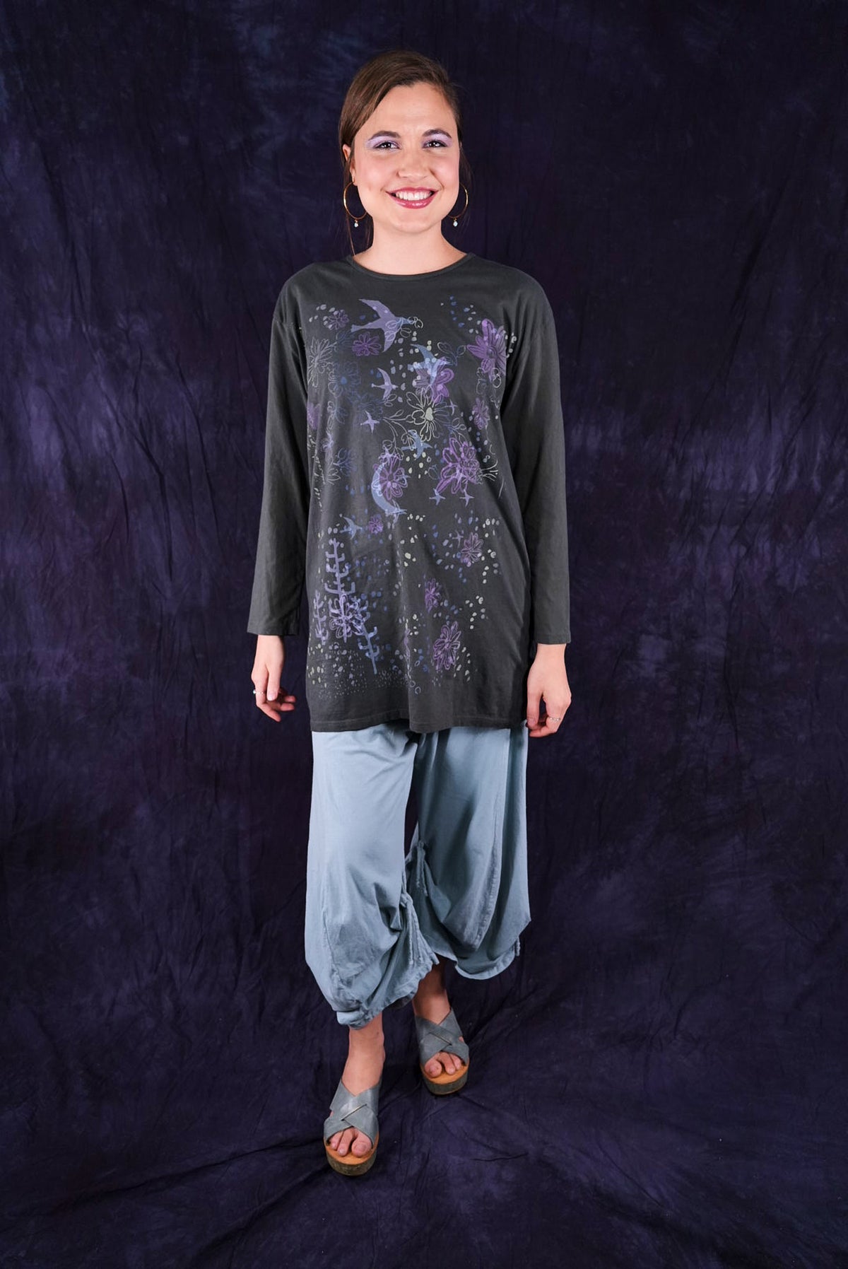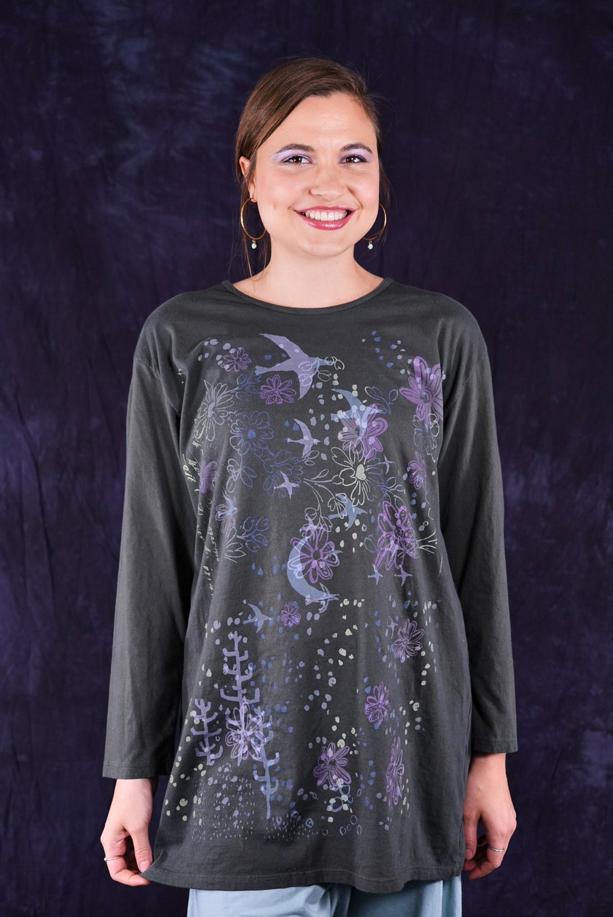 Our classic, long-sleeved organic cotton tee, reinvented each time with new colors and assorted hand-printed designs.