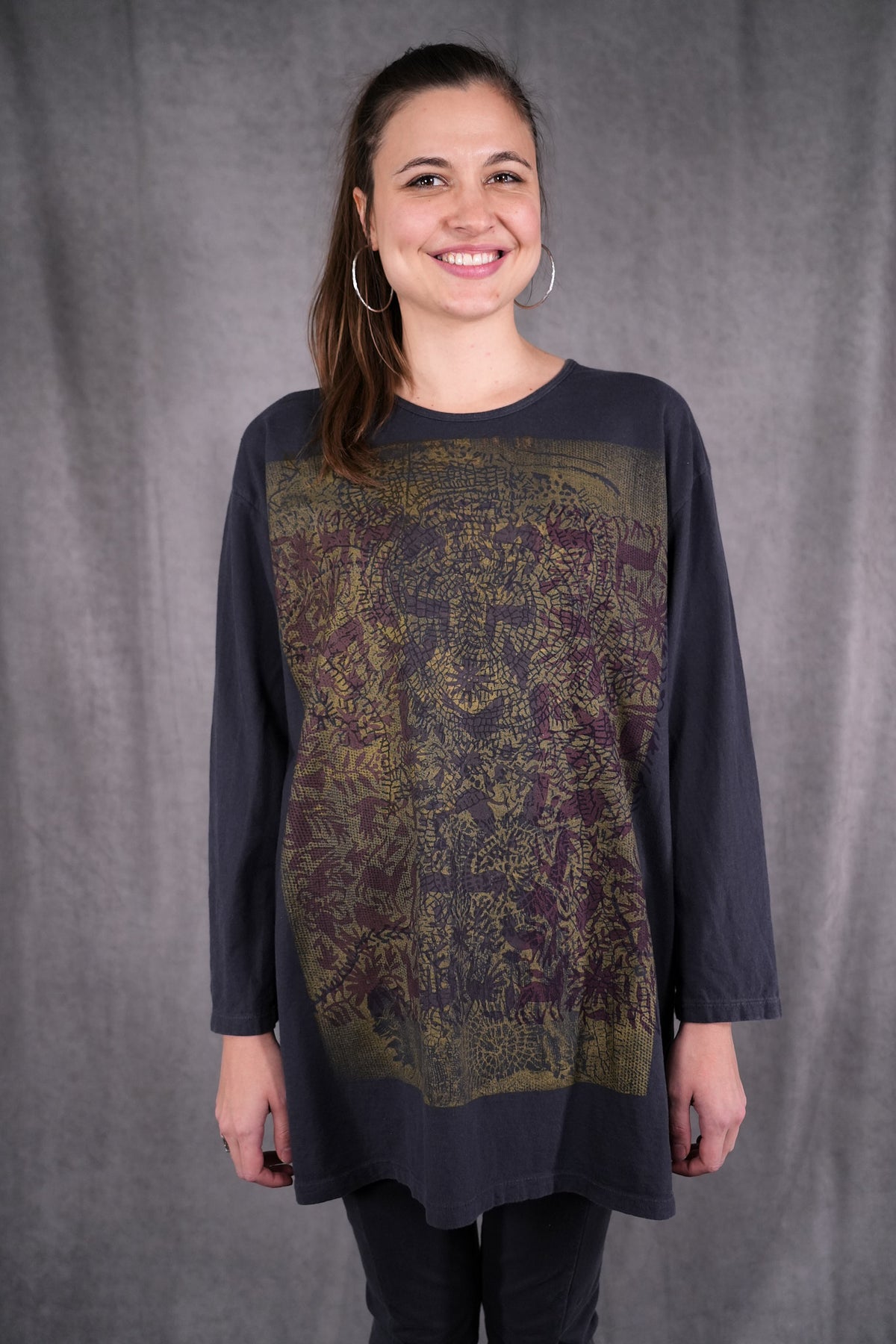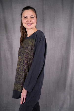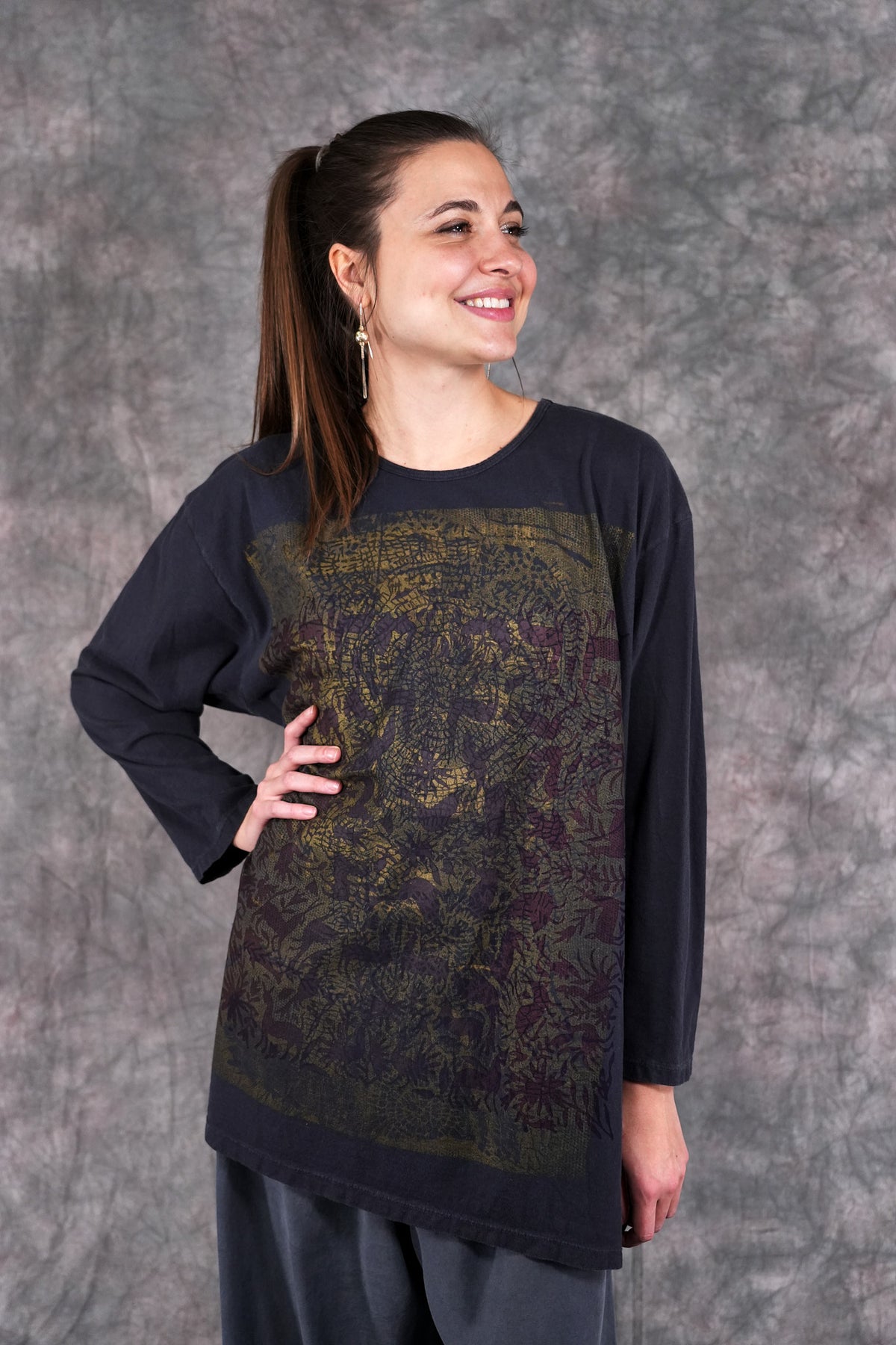 Classic Blue Fish: long sleeve organic cotton tee in new beautiful shades. Assorted hand-printed designs. Please note that Blue Fish artists add unique personal touches to the design, so no two are exactly alike.