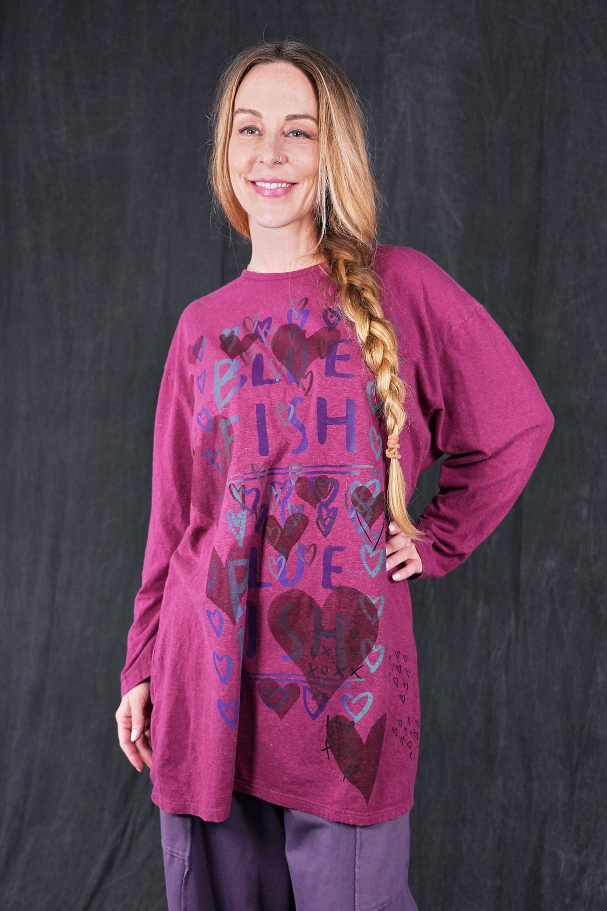 Special 2023 Valentine Tee. Super fun colors and layers of love. Our classic , long sleeved organic cotton tee, reinvented each time with new colors and this time with hemp.