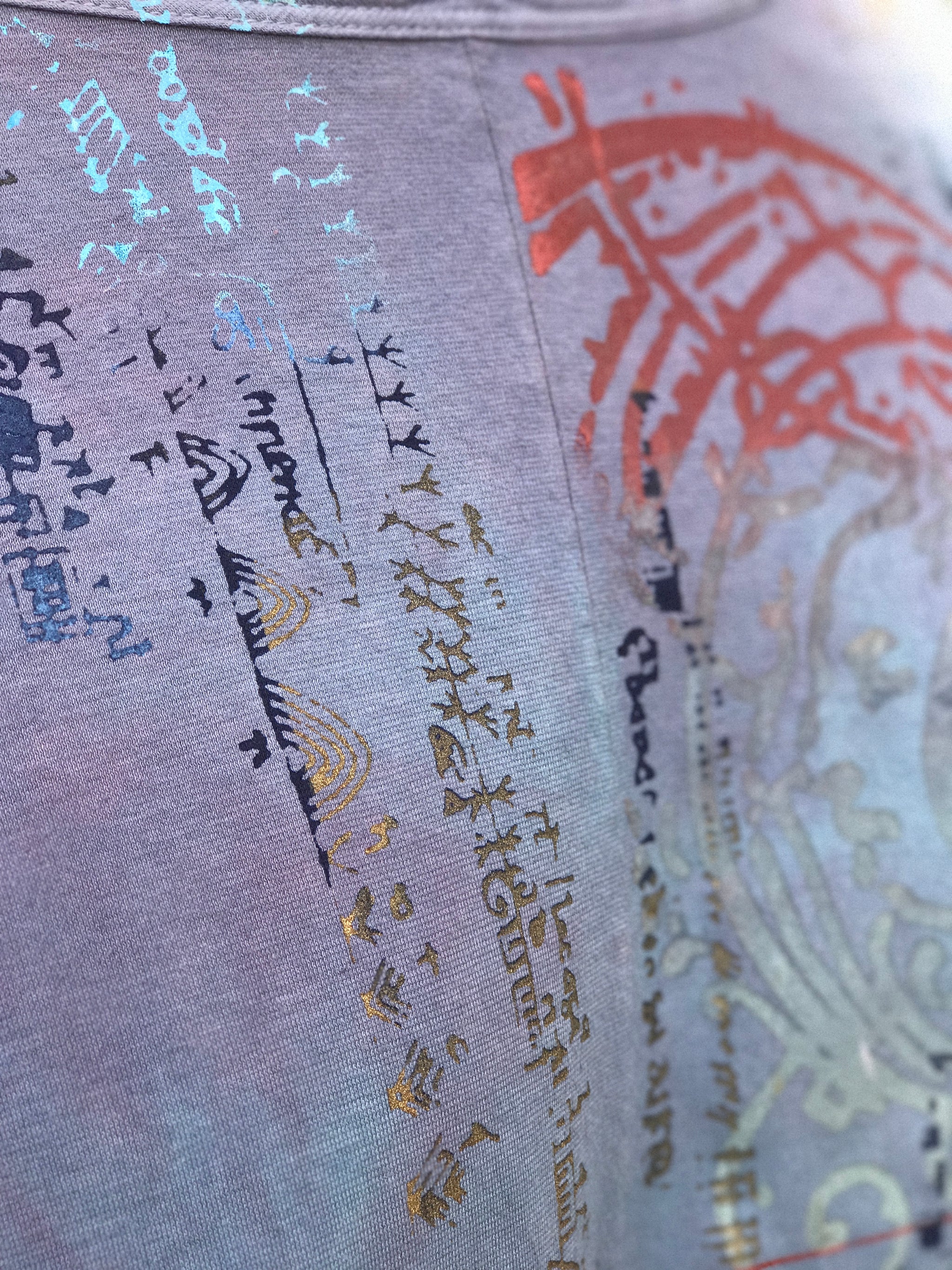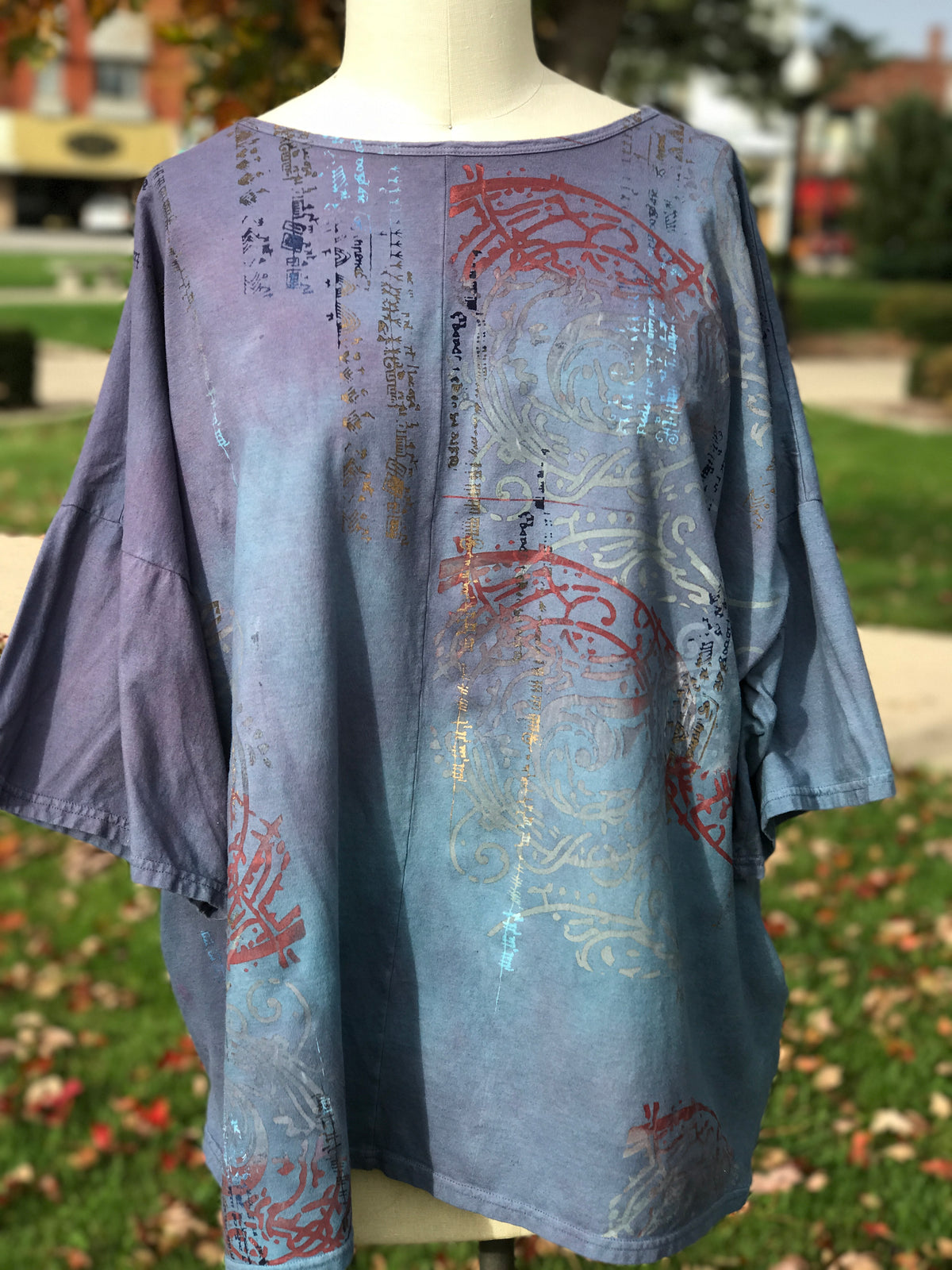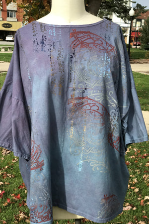 Perfect one-size soft, organic cotton tunic to wear now and into autumn...New colorful & magical designs in color drenched shades that we have hand printed for maximum effect. Limited quantities. Double hand dyed and layered multi-tonal printing. Very oversized. Perfect for lounging.