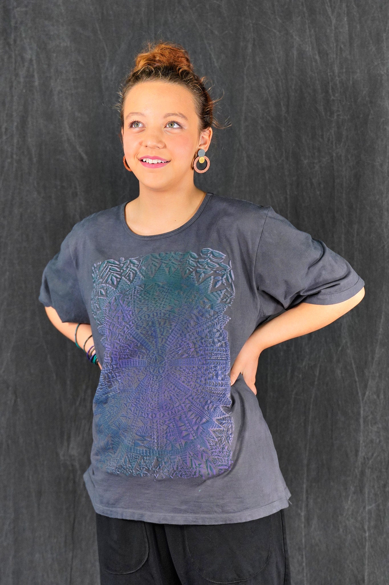 This basic, boxy style really gives our artists a chance to shine each one is painted with love & care. You've heard of wearing your heart on your sleeve; you can wear blue fish art over your heart. Currently, these tees are printed in ever-changing editions of magical tree art; each limited print run is different.
