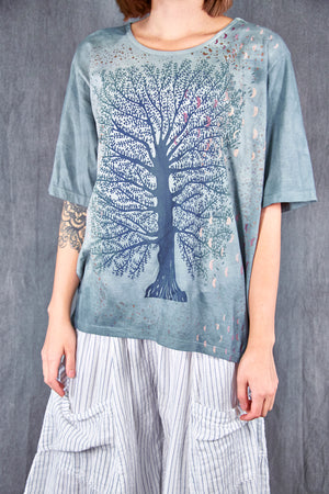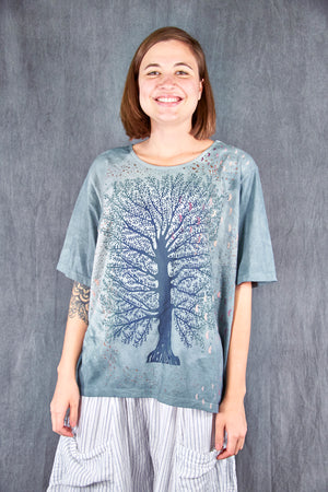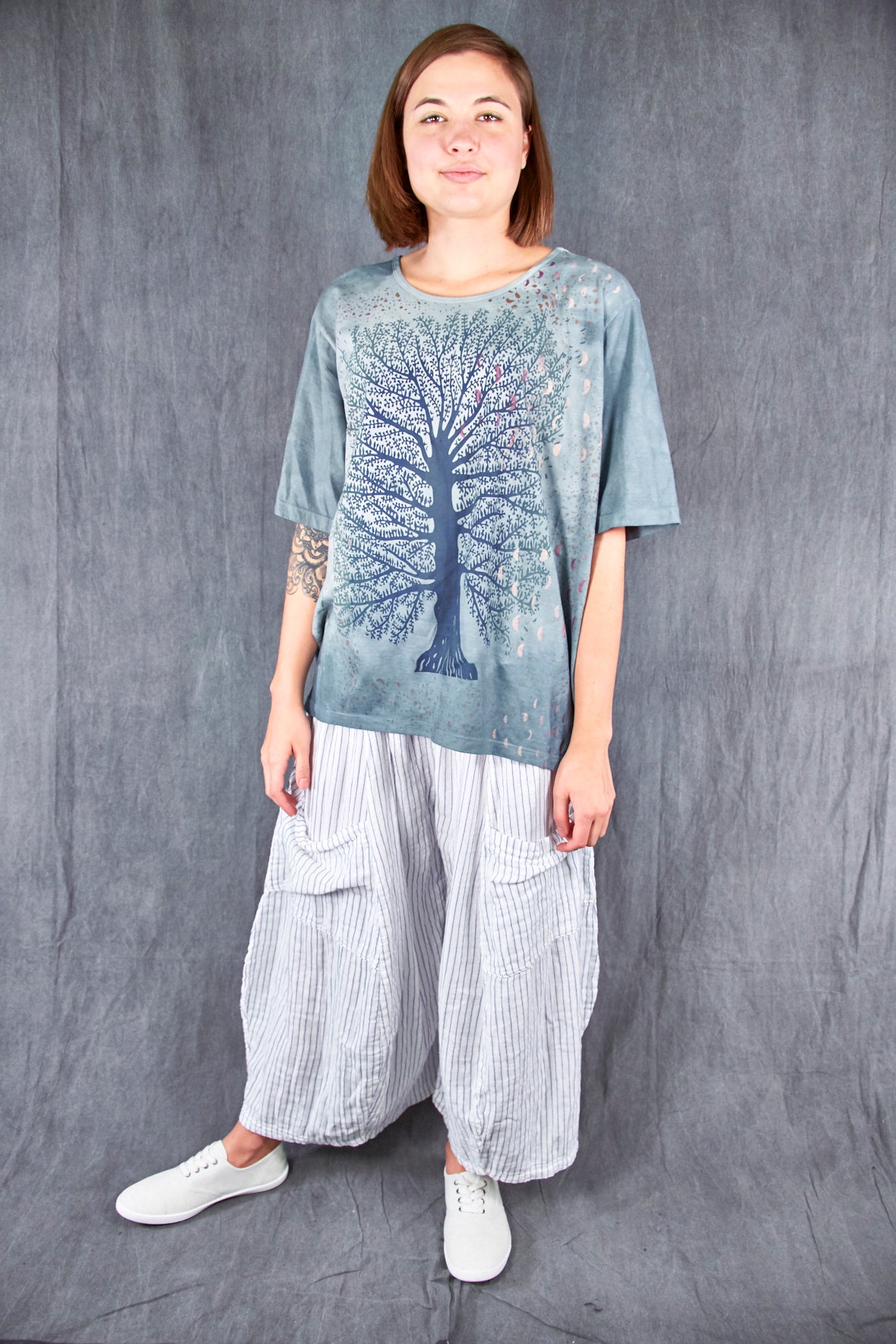 This basic, boxy style really gives our artists a chance to shine each one is painted with love & care. You've heard of wearing your heart on your sleeve; you can wear blue fish art over your heart. Currently, these tees are printed in ever-changing editions of magical tree art; each limited print run is different.