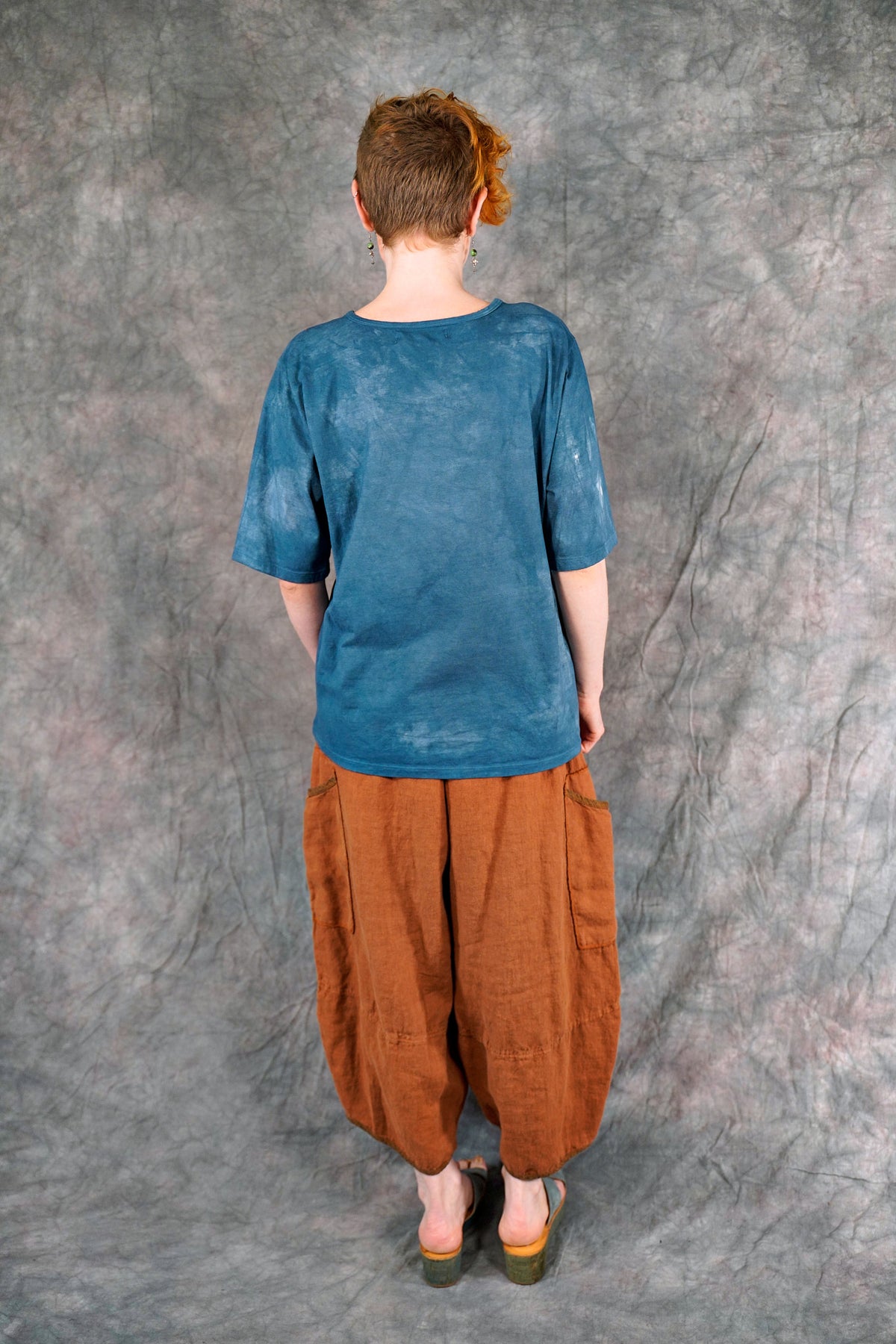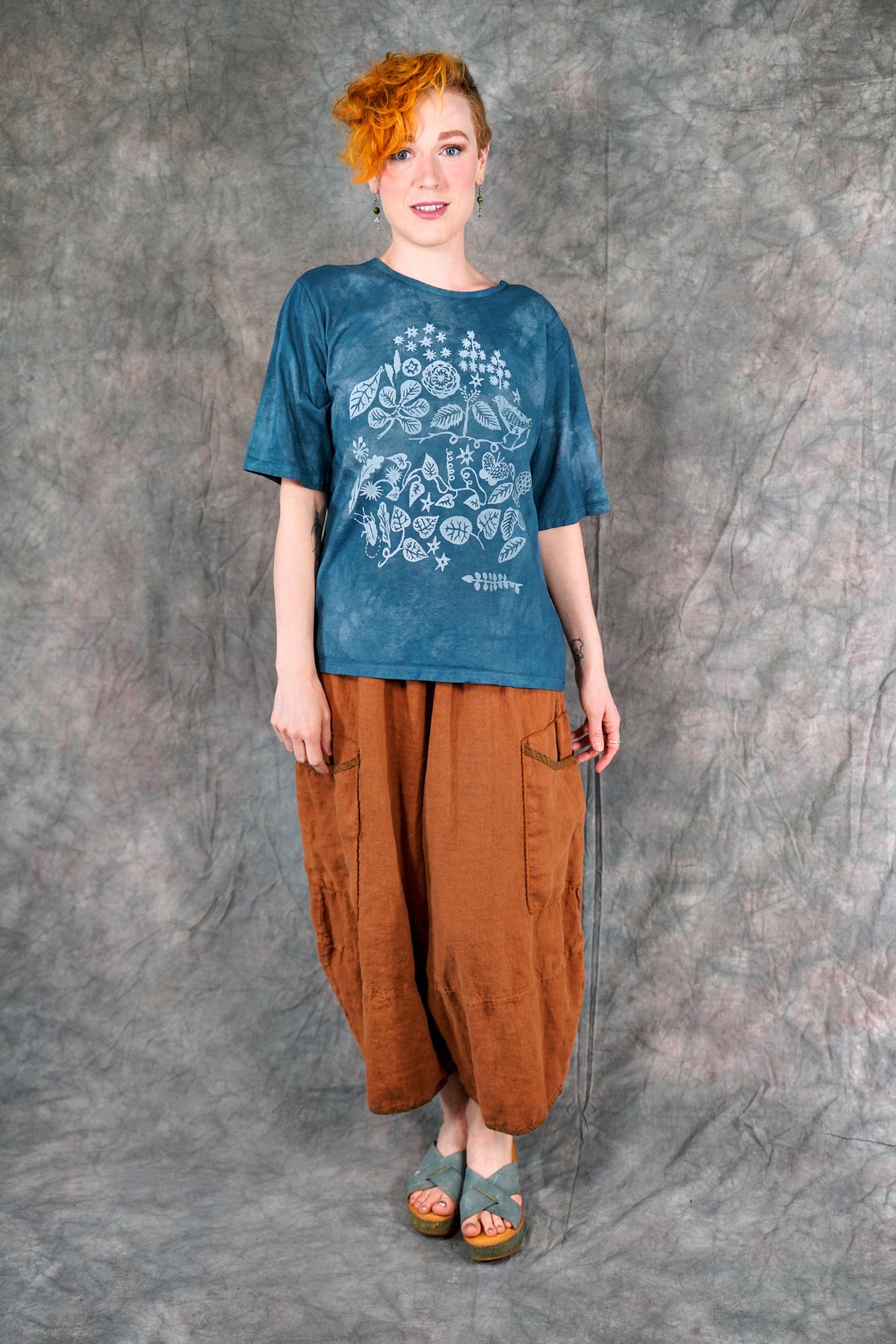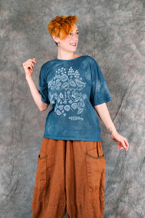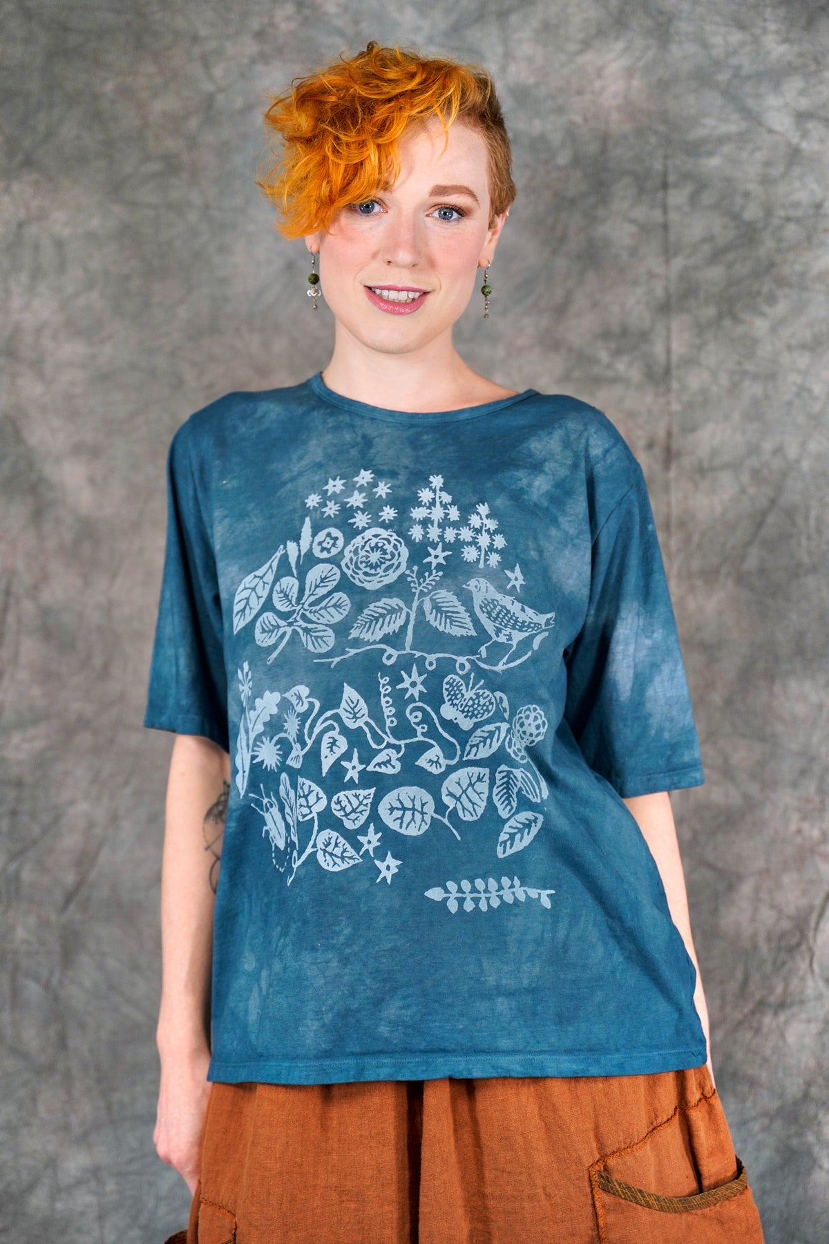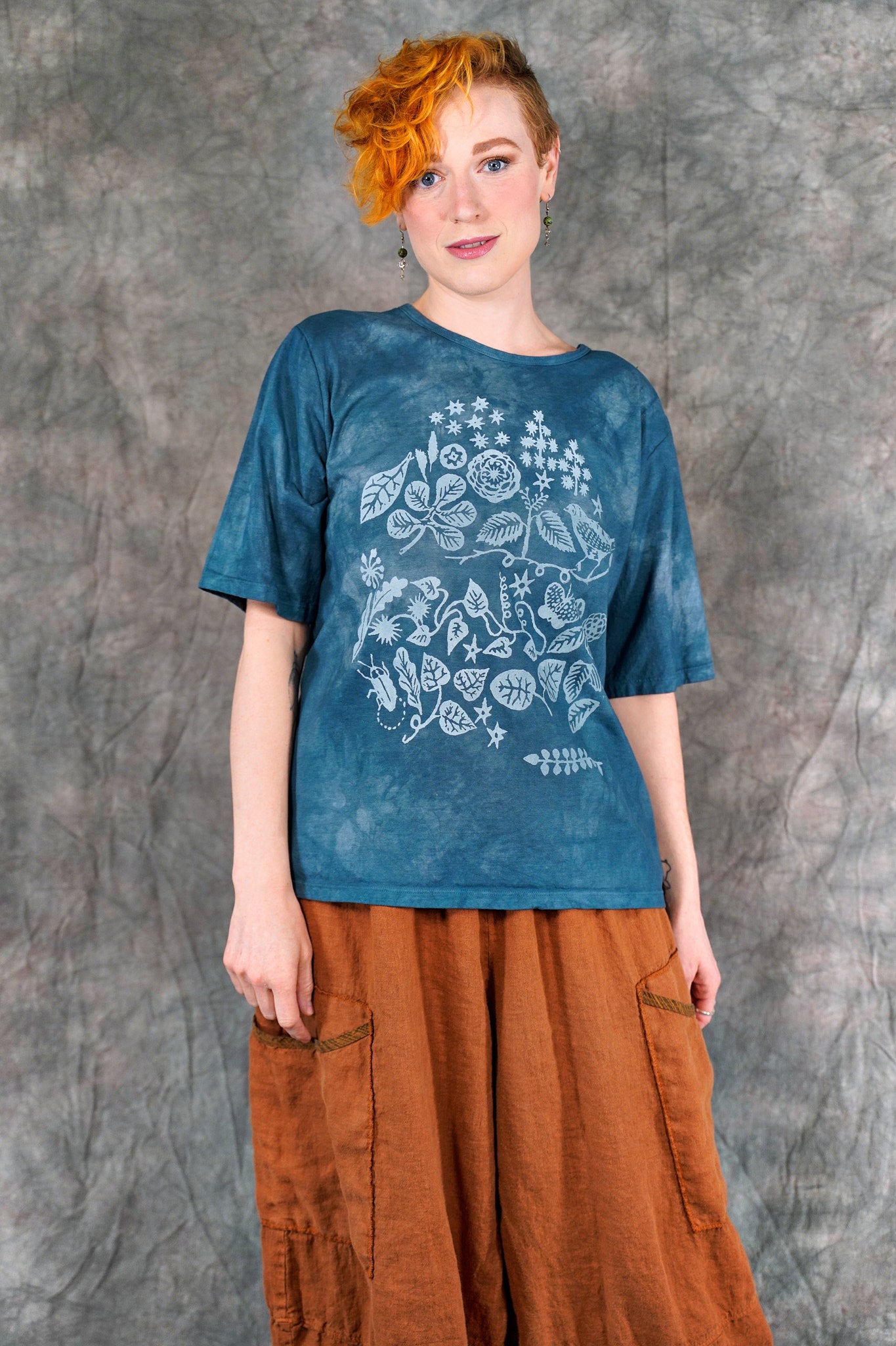 This basic, boxy style really gives our artists a chance to shine- each one hand dyed then painted with love & care. You've heard of wearing your heart on your sleeve; you can wear blue fish art over your heart.