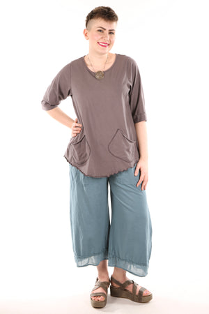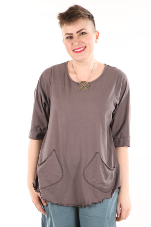 This Airy Top features a scooped hem, 2 square pockets, and gentle shaping.