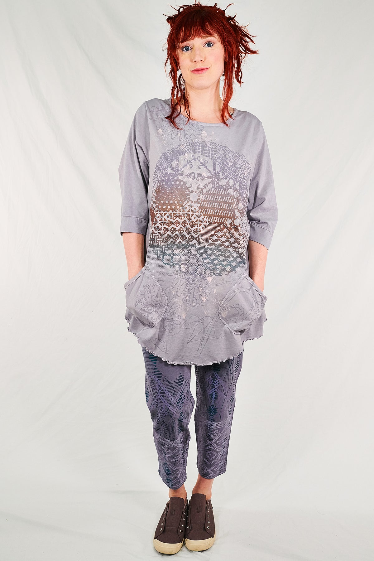We adore this sweet top: It is the perfect blend of elegance, art, & practicality. Imagine wearing this to lunch at a cafe, on a stroll through town on a picturesque spring day, or even gardening or painting (hello, pockets!). Printing on the front from our Iowa studio is so dreamy that you’ll want to wear this every day.