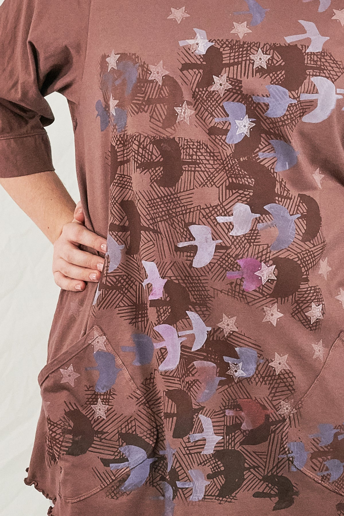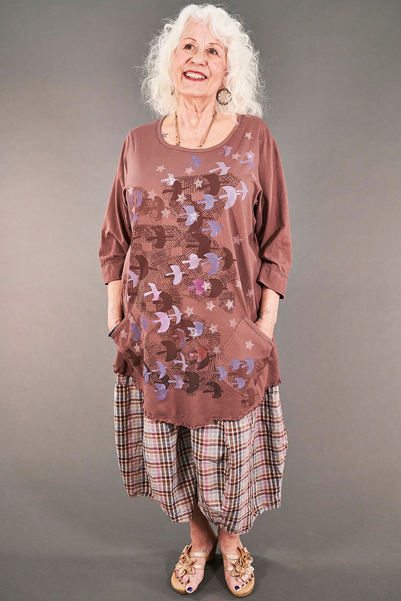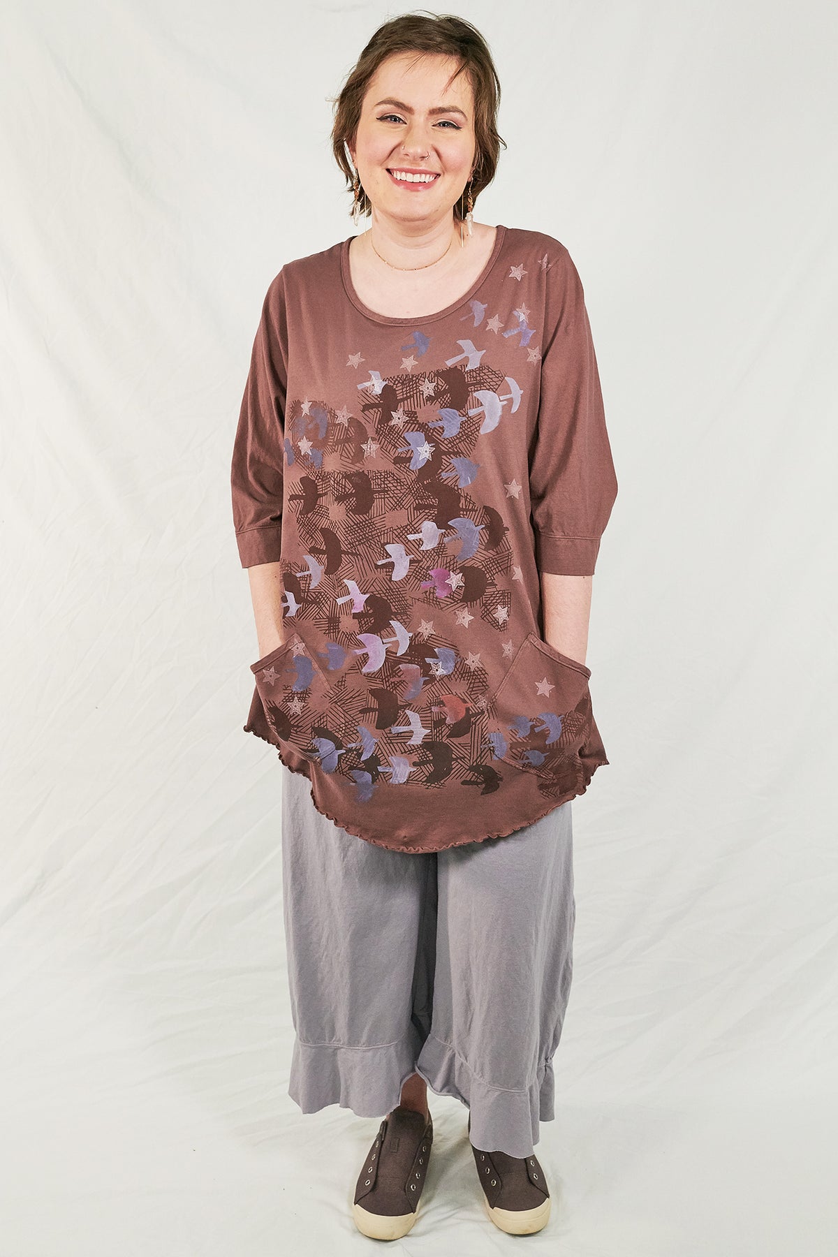 We adore this sweet top: It is the perfect blend of elegance, art, & practicality. Imagine wearing this to lunch at a cafe, on a stroll through town on a picturesque spring day, or even gardening or painting (hello, pockets!). Printing on the front from our Iowa studio is so dreamy that you’ll want to wear this every day.