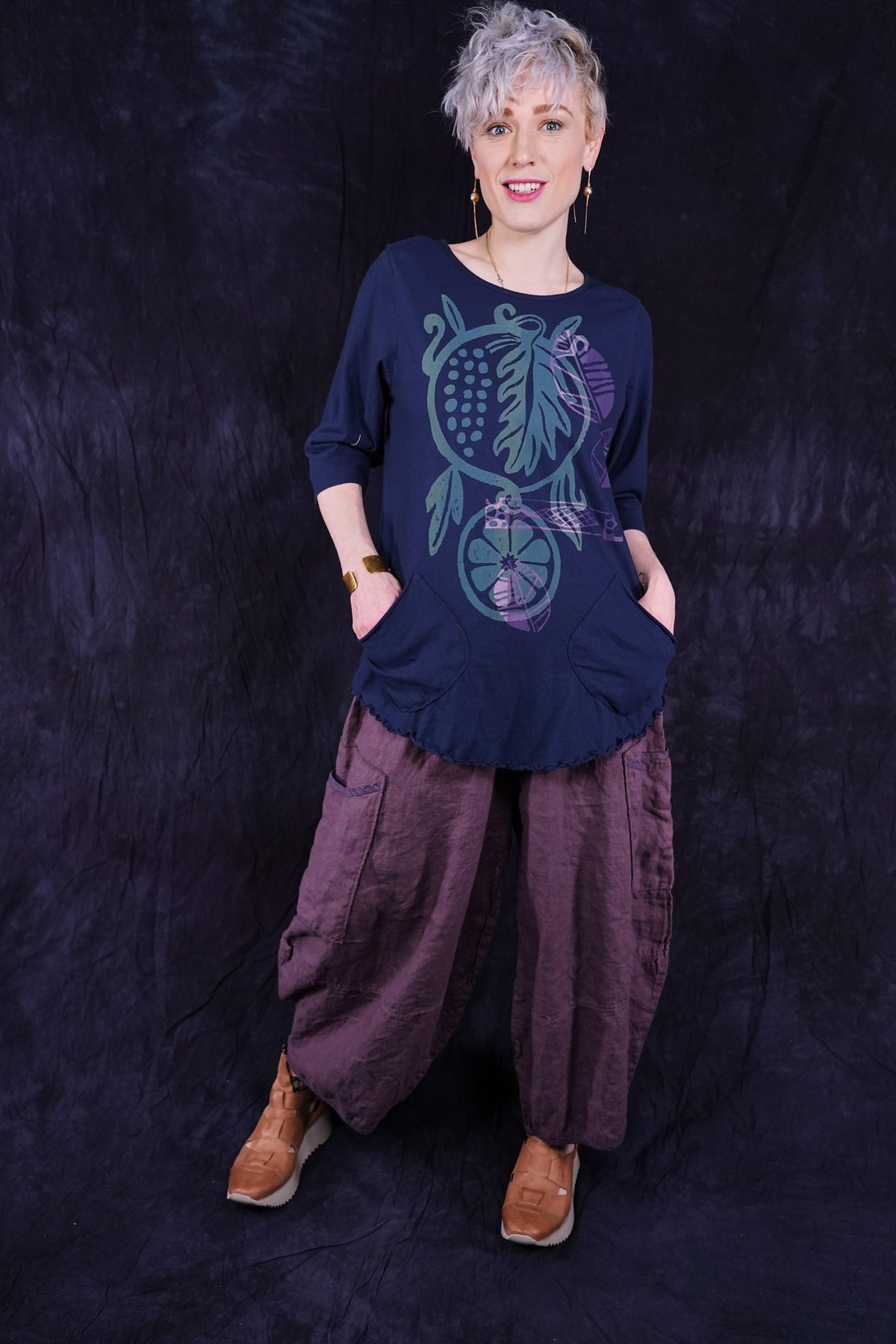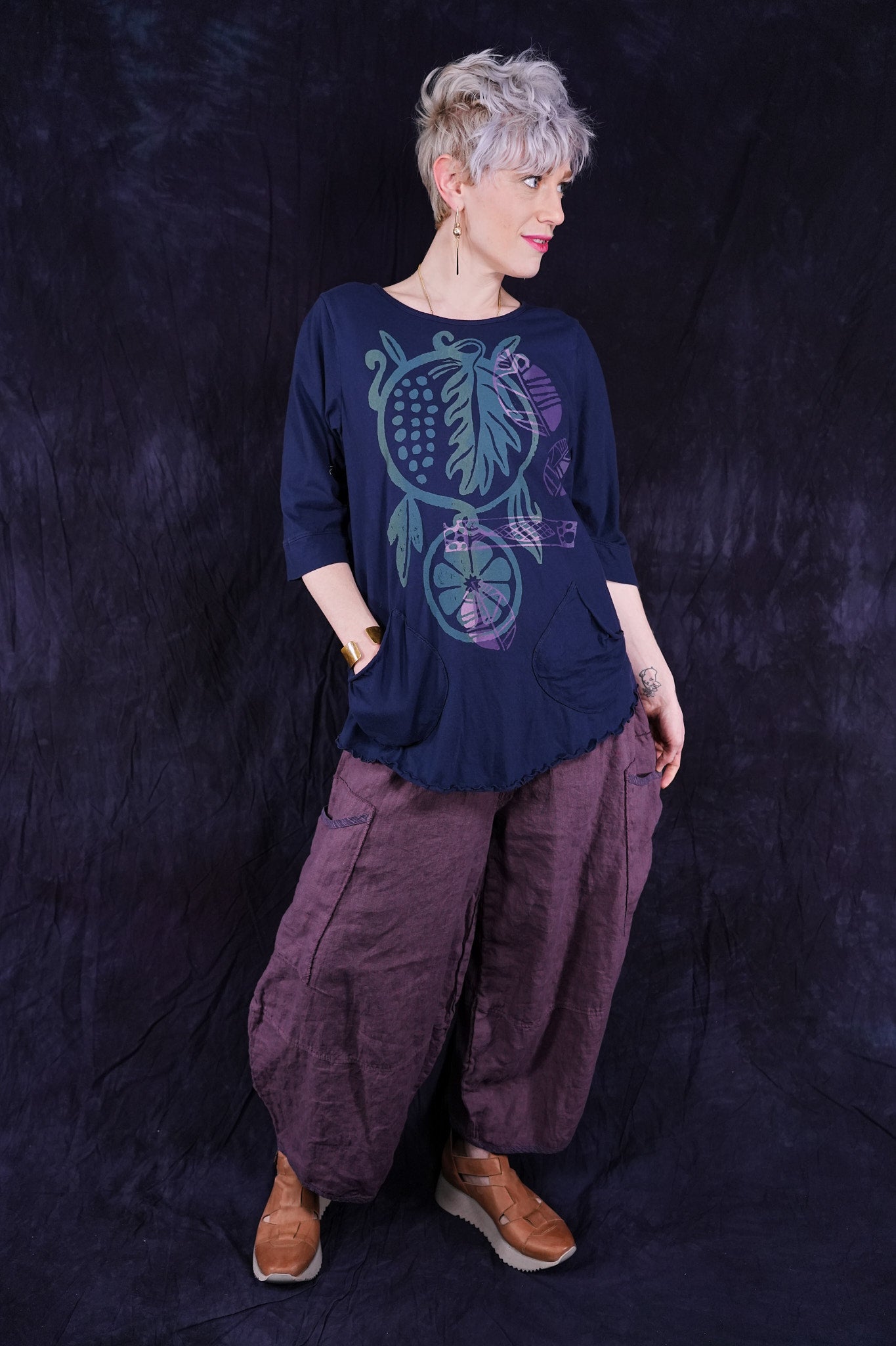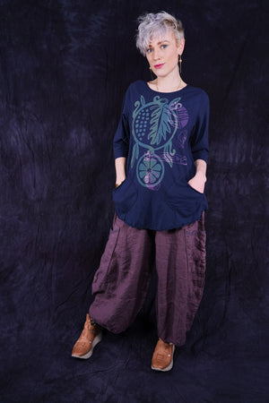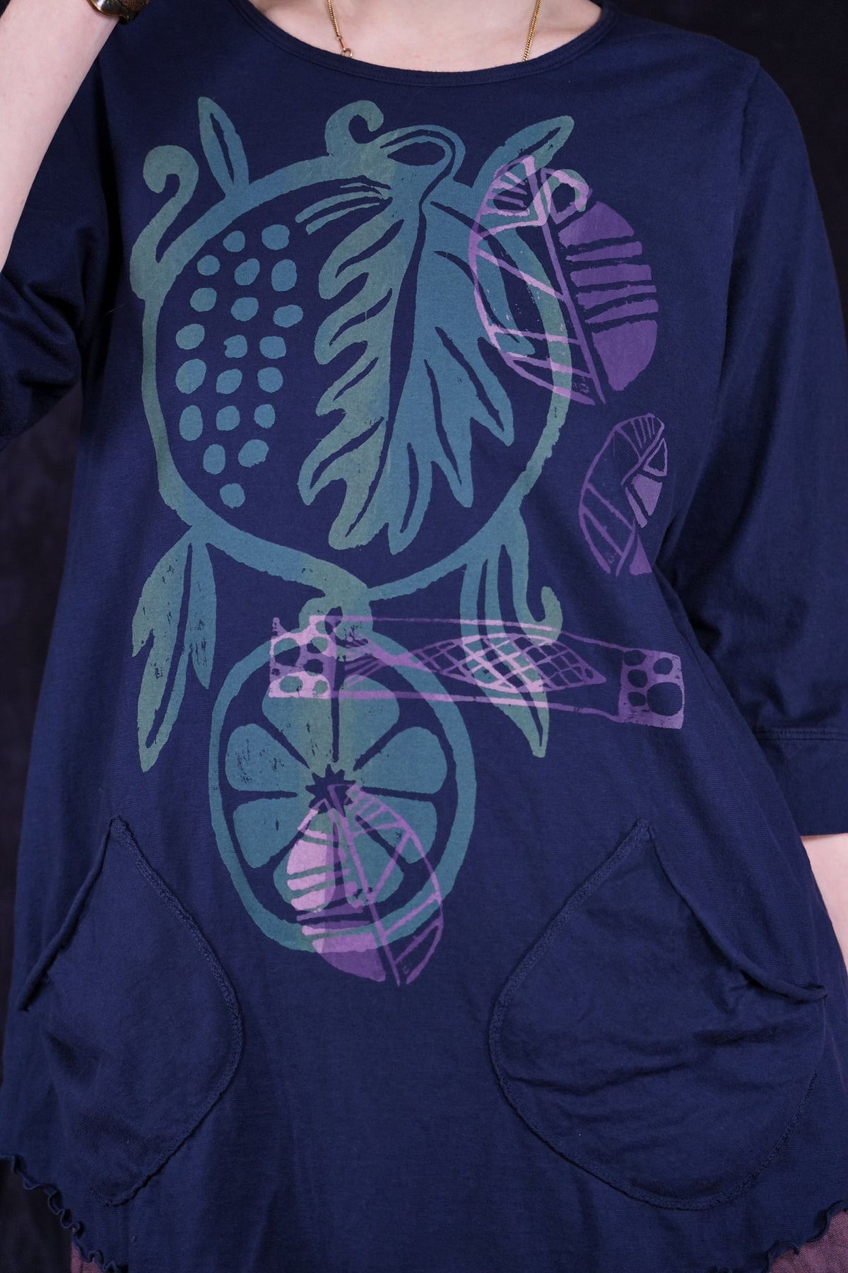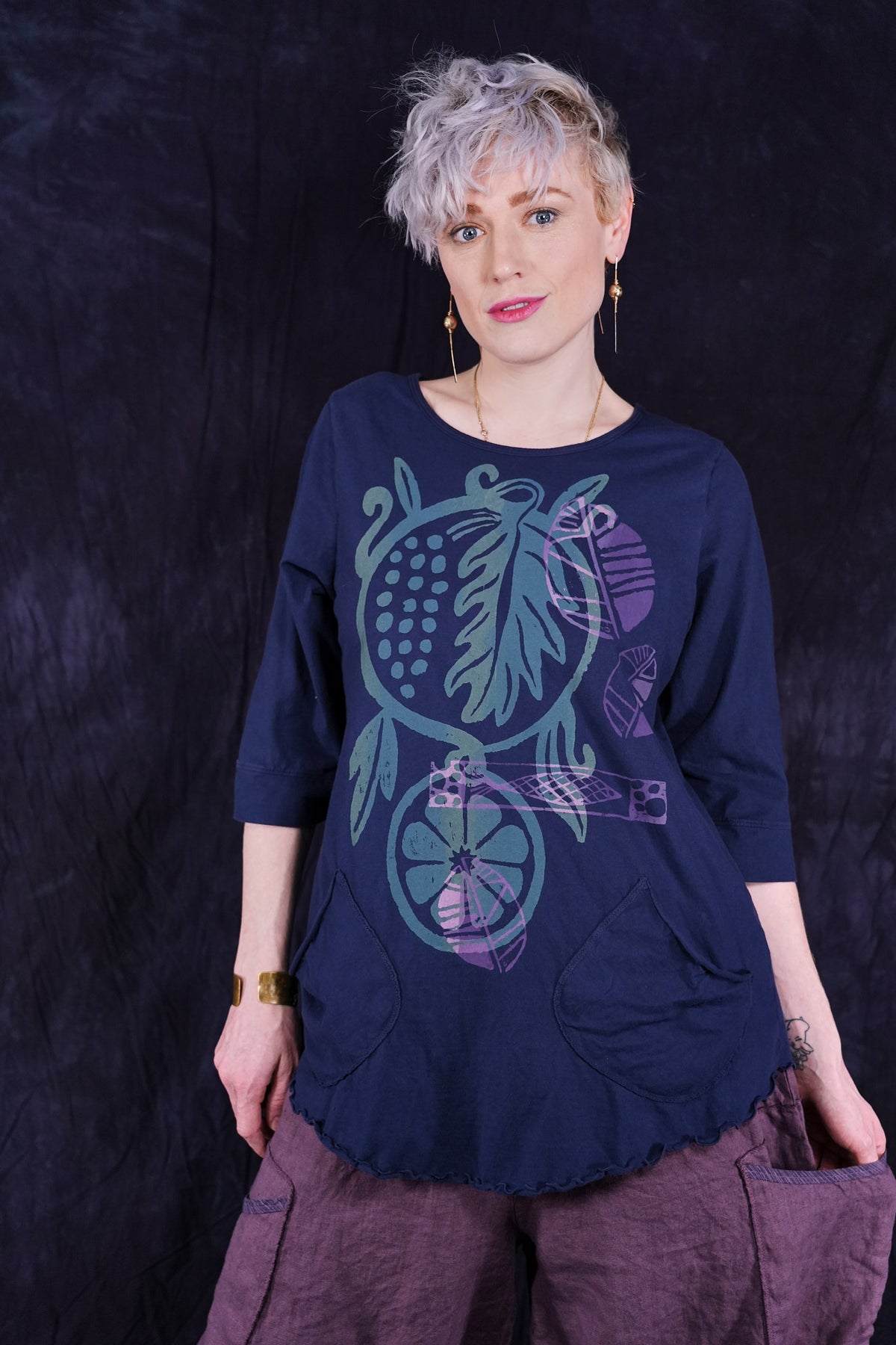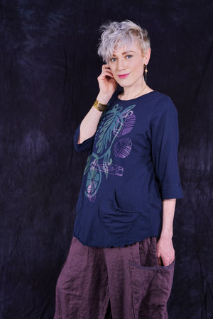 We adore this sweet top: It is the perfect blend of elegance, art, & practicality. Imagine wearing this to lunch at a cafe, on a stroll through town on a picturesque spring day, or even gardening or painting (hello, pockets!). Printing on the front from our Iowa studio is so dreamy that you’ll want to wear this every day.