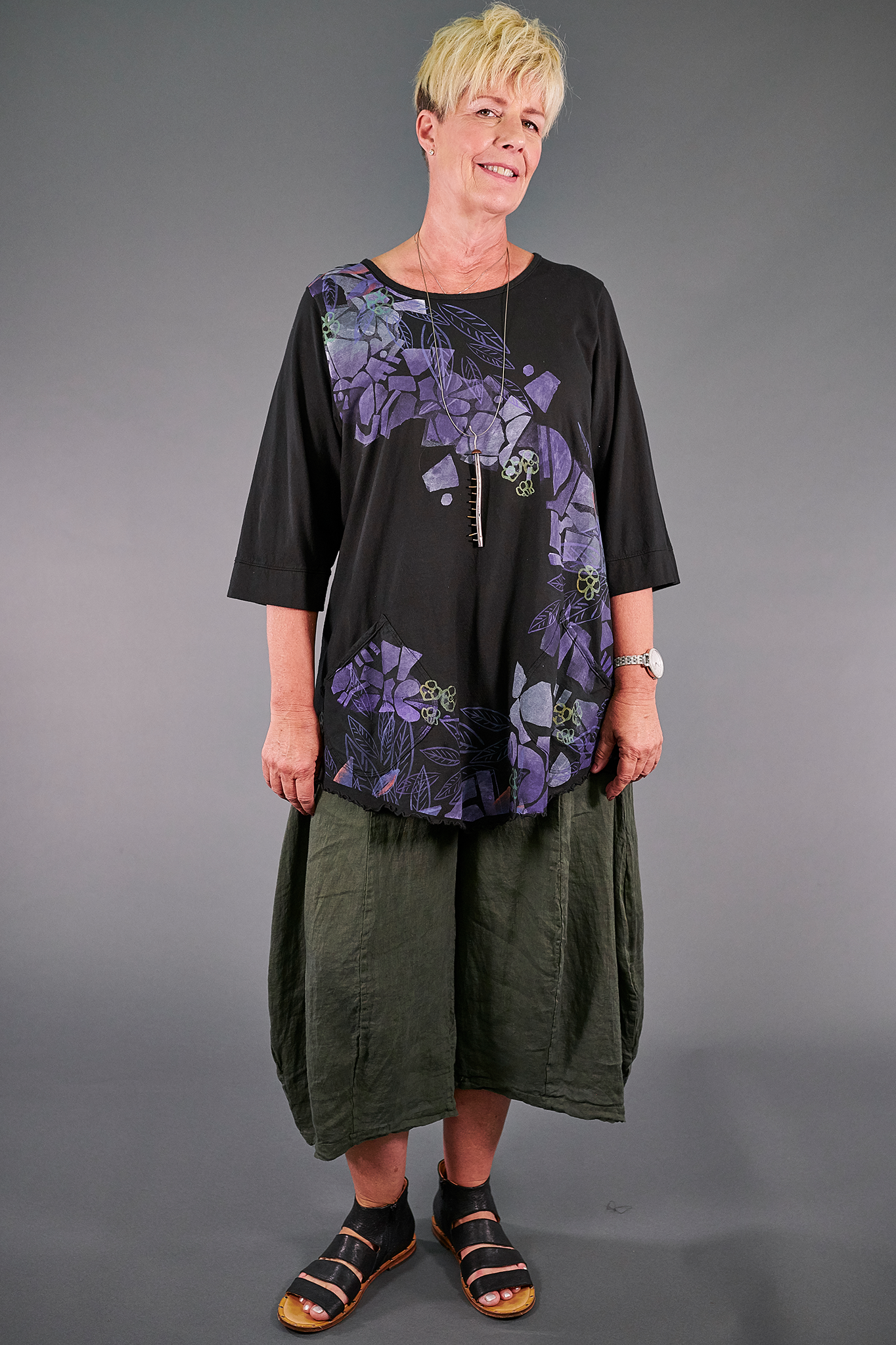 We adore this sweet top: It is the perfect blend of elegance, art, & practicality. Imagine wearing this to lunch at a cafe, on a stroll through town on a picturesque spring day, or even gardening or painting (hello, pockets!). Printing on the front from our Iowa studio is so dreamy that you’ll want to wear this every day.