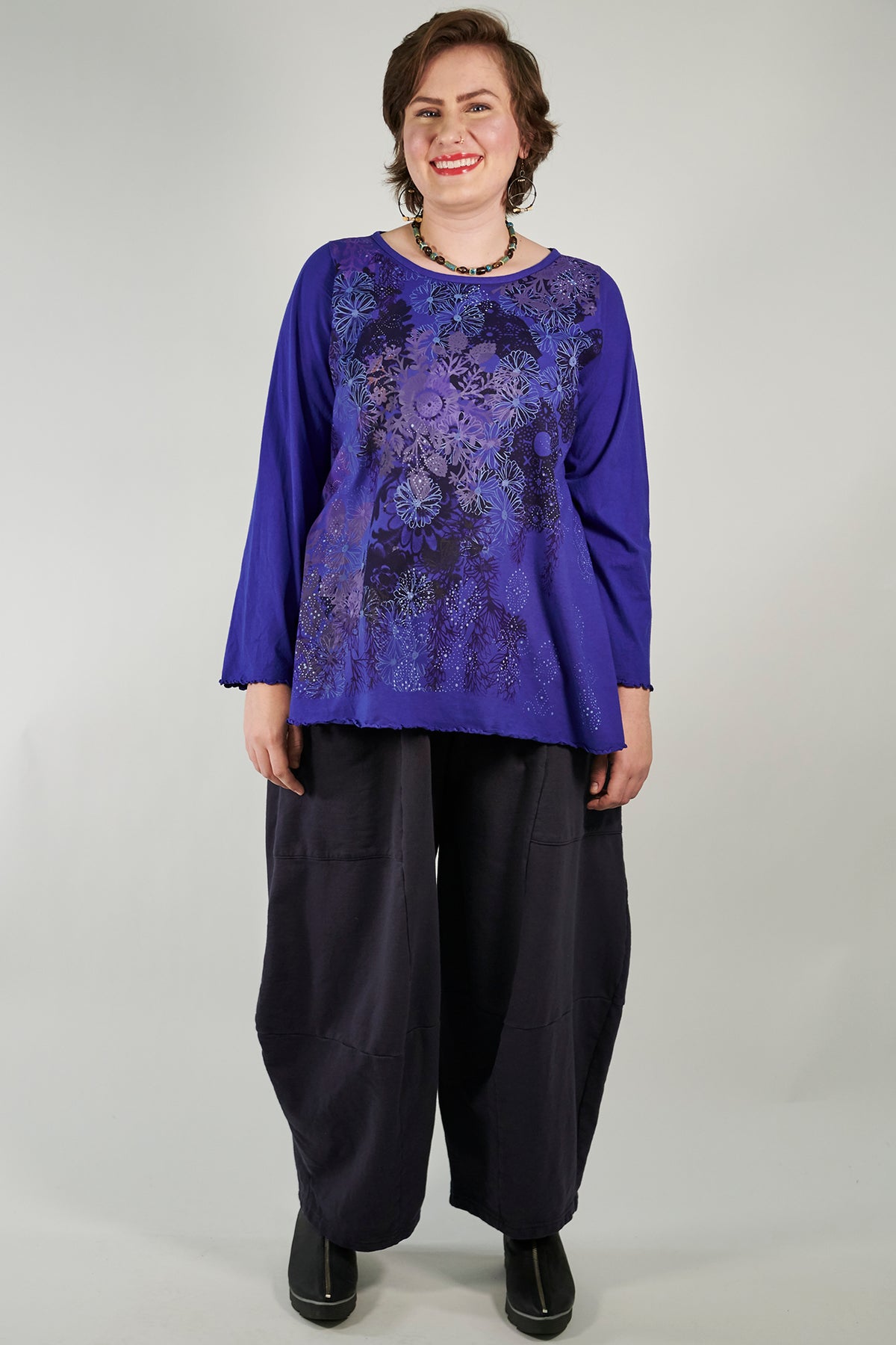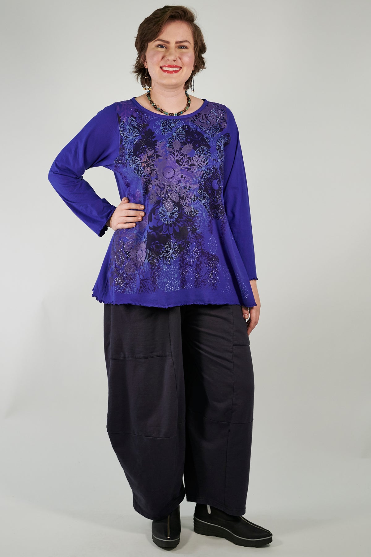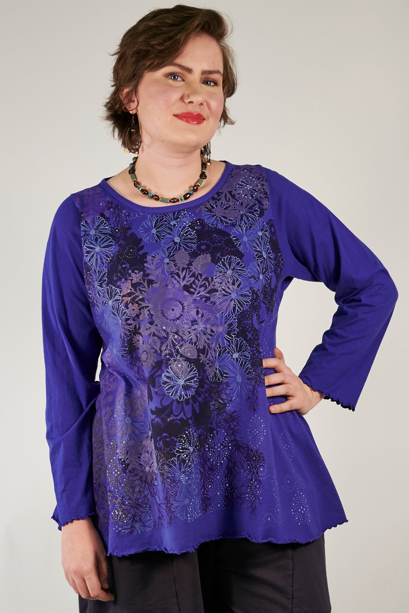 The classic blue fish cafe tee now with long sleeves for the season- in our perfect seasonless weight organic cotton jersey. The style features an A-line cut which is more fitted at the top, and which flatters nearly every body.