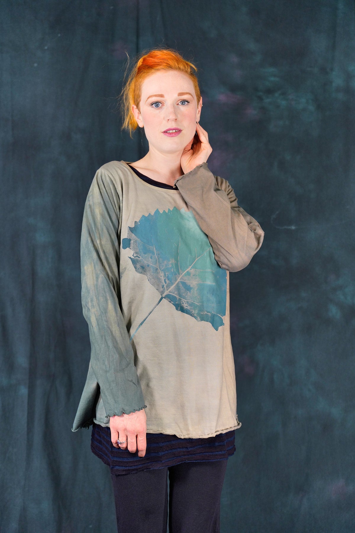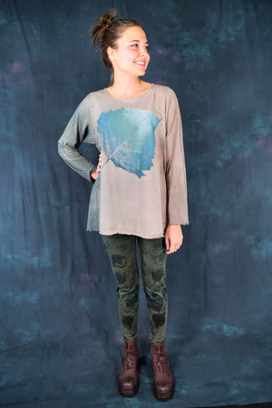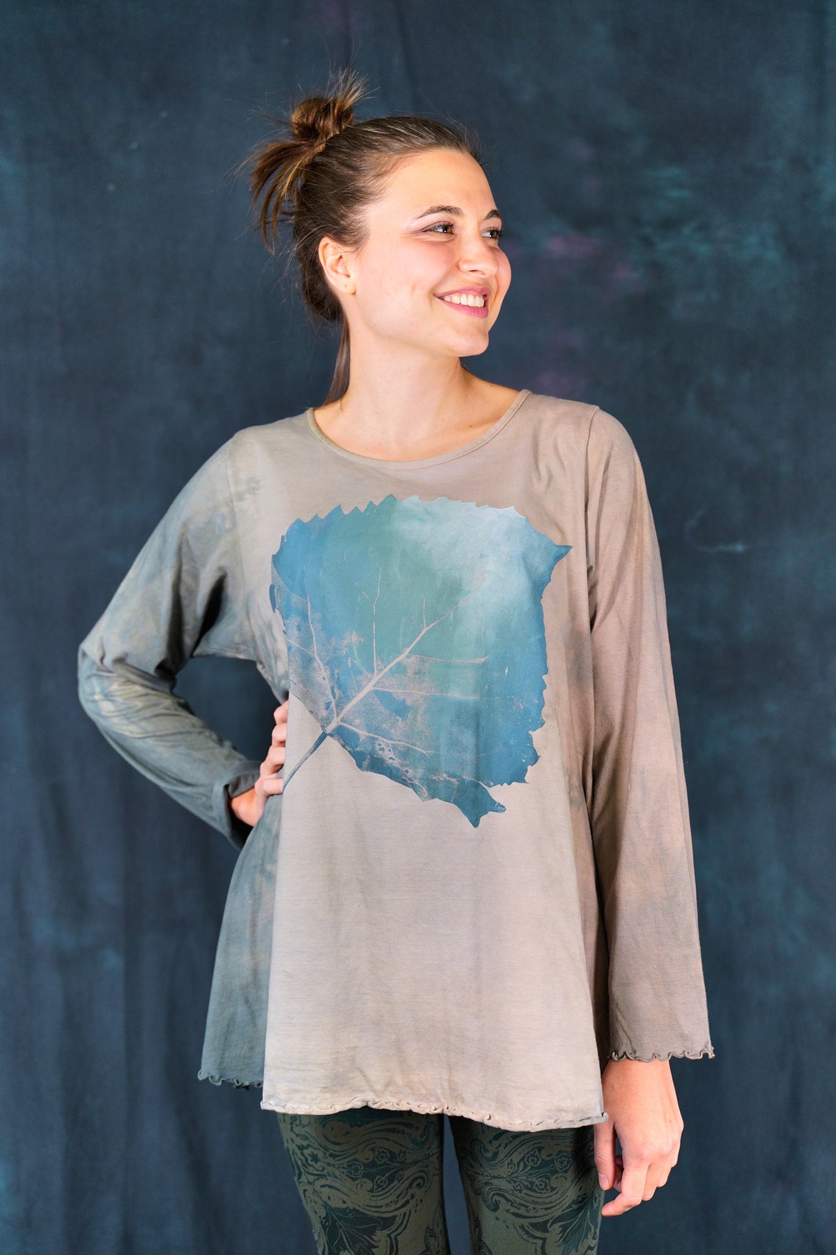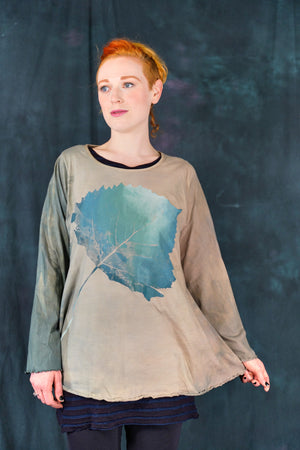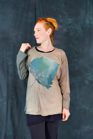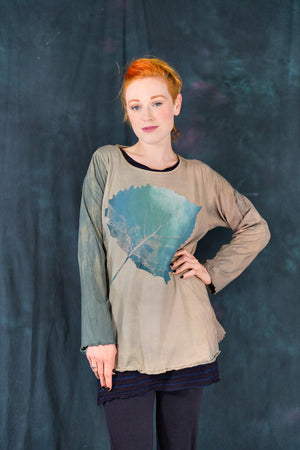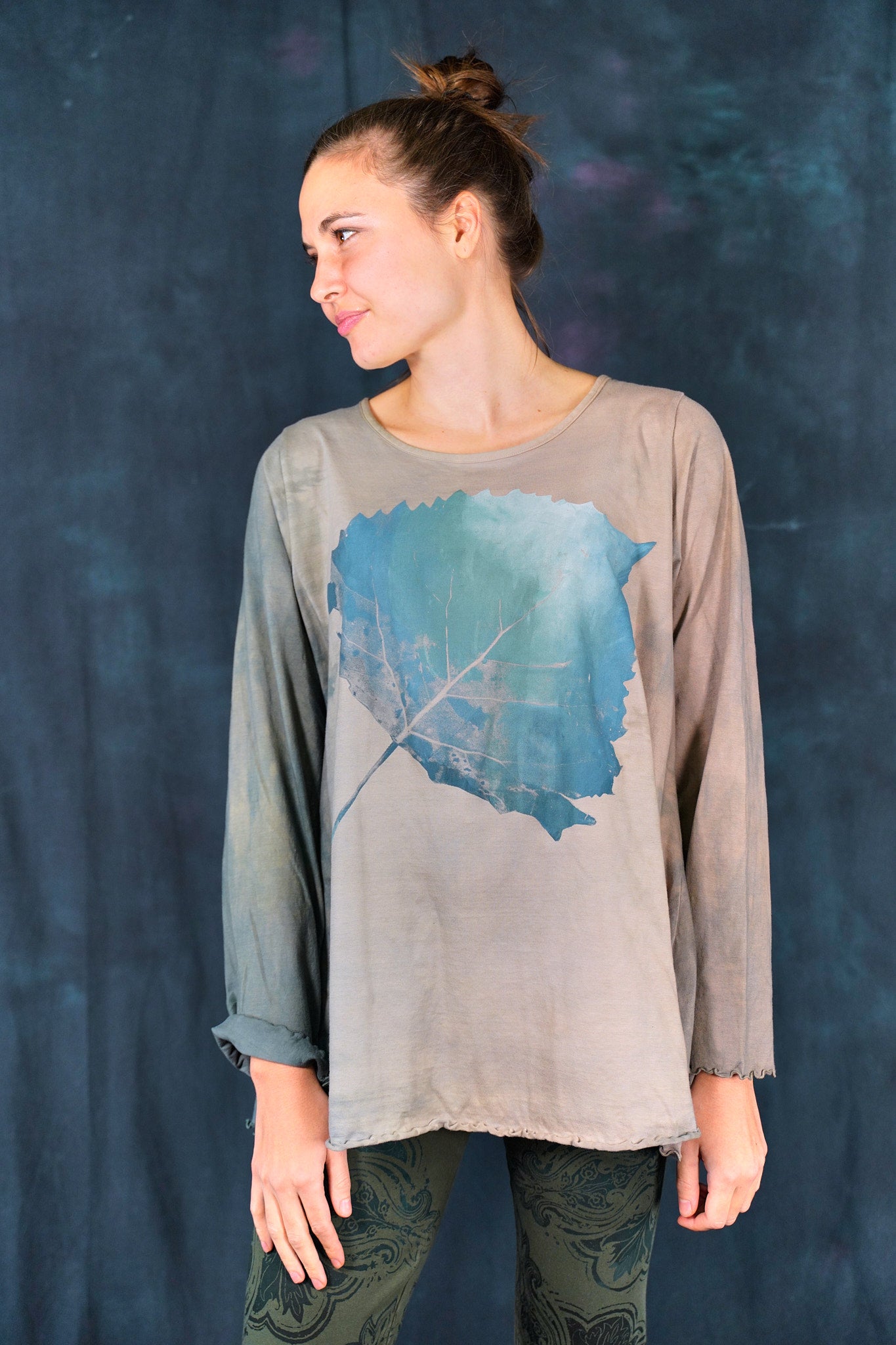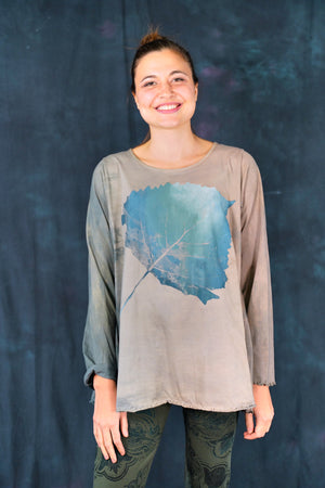 Our classic Blue Fish tee, Hand-dyed and then hand printed...with long sleeves to roll up, for year round wear-in our perfect, season-less weight organic cotton jersey.