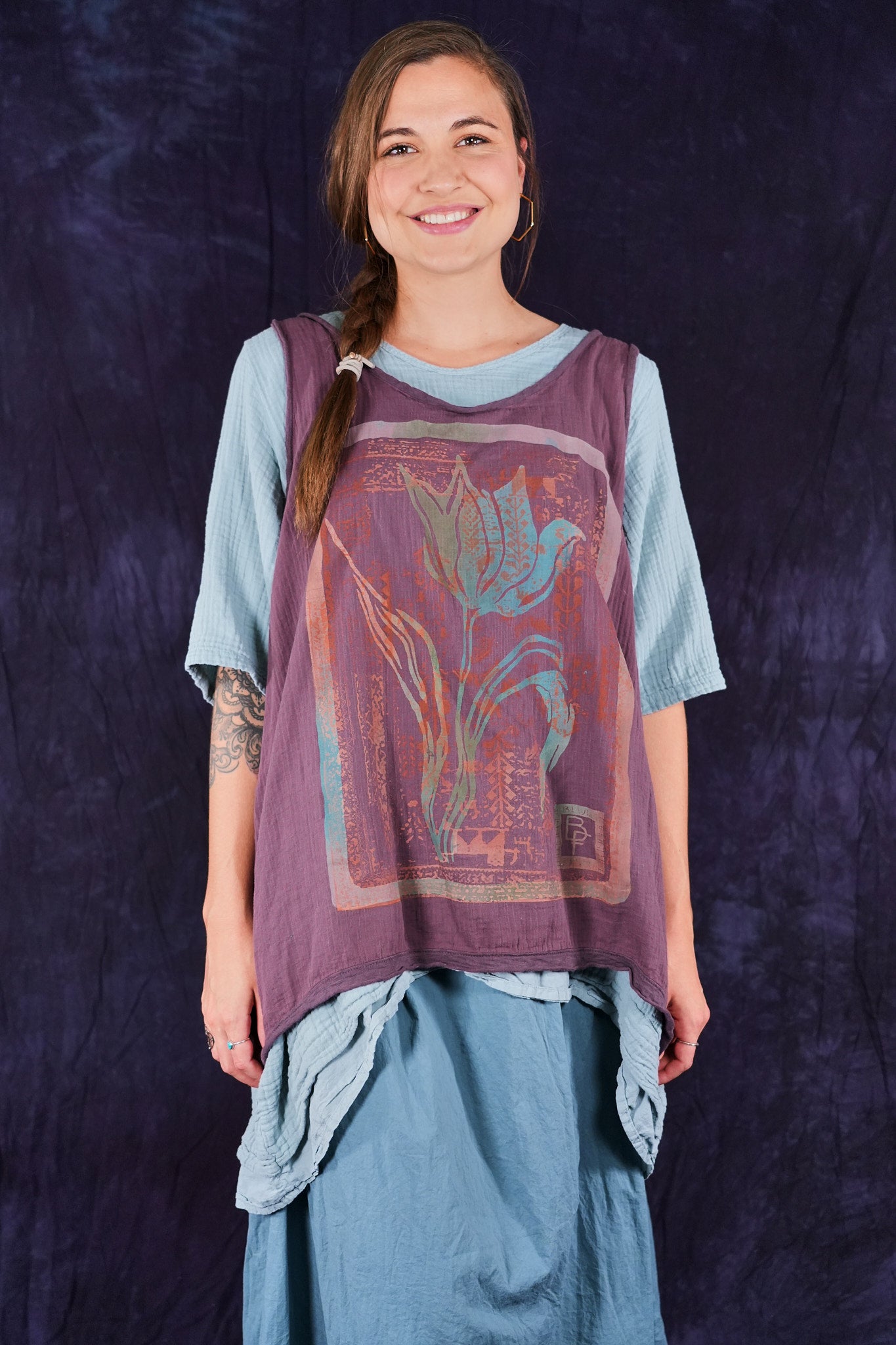 This tank is flattering and cool in light weight cotton. This style has it all: elegance, comfort, good-looks, and practicality. Featuring super soft cotton in an A-line shape and the perfect length.