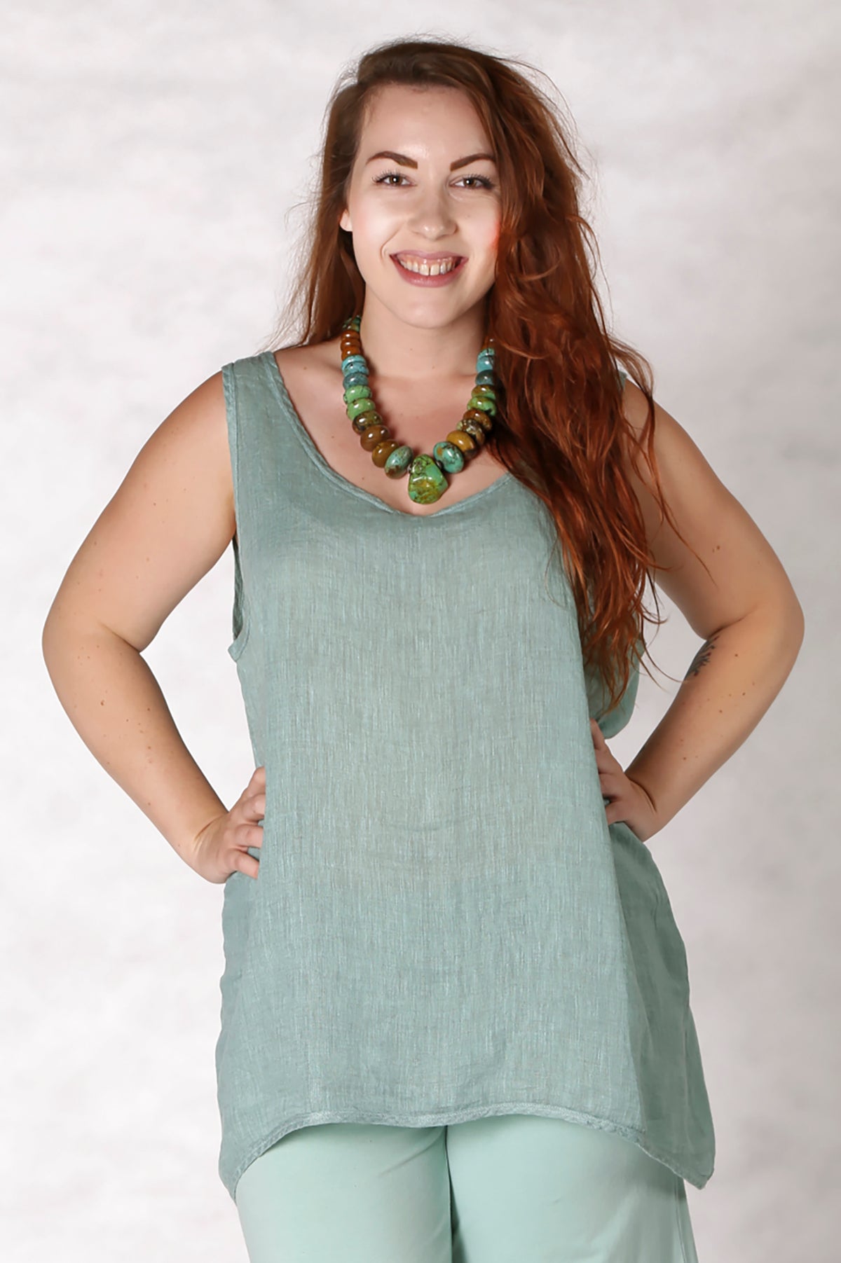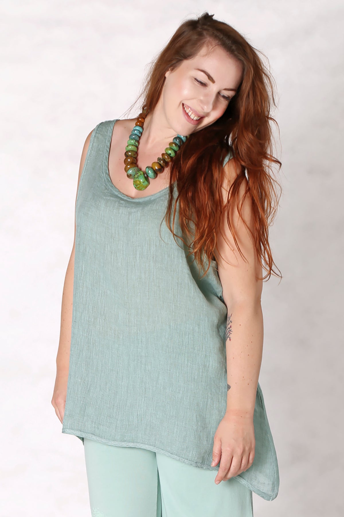 Cool mint. This tank is flattering and cool in lightest weight linen. This style has it all: elegance, comfort, good-looks, and practicality. Featuring super soft linen in an A-line shape and the perfect length.