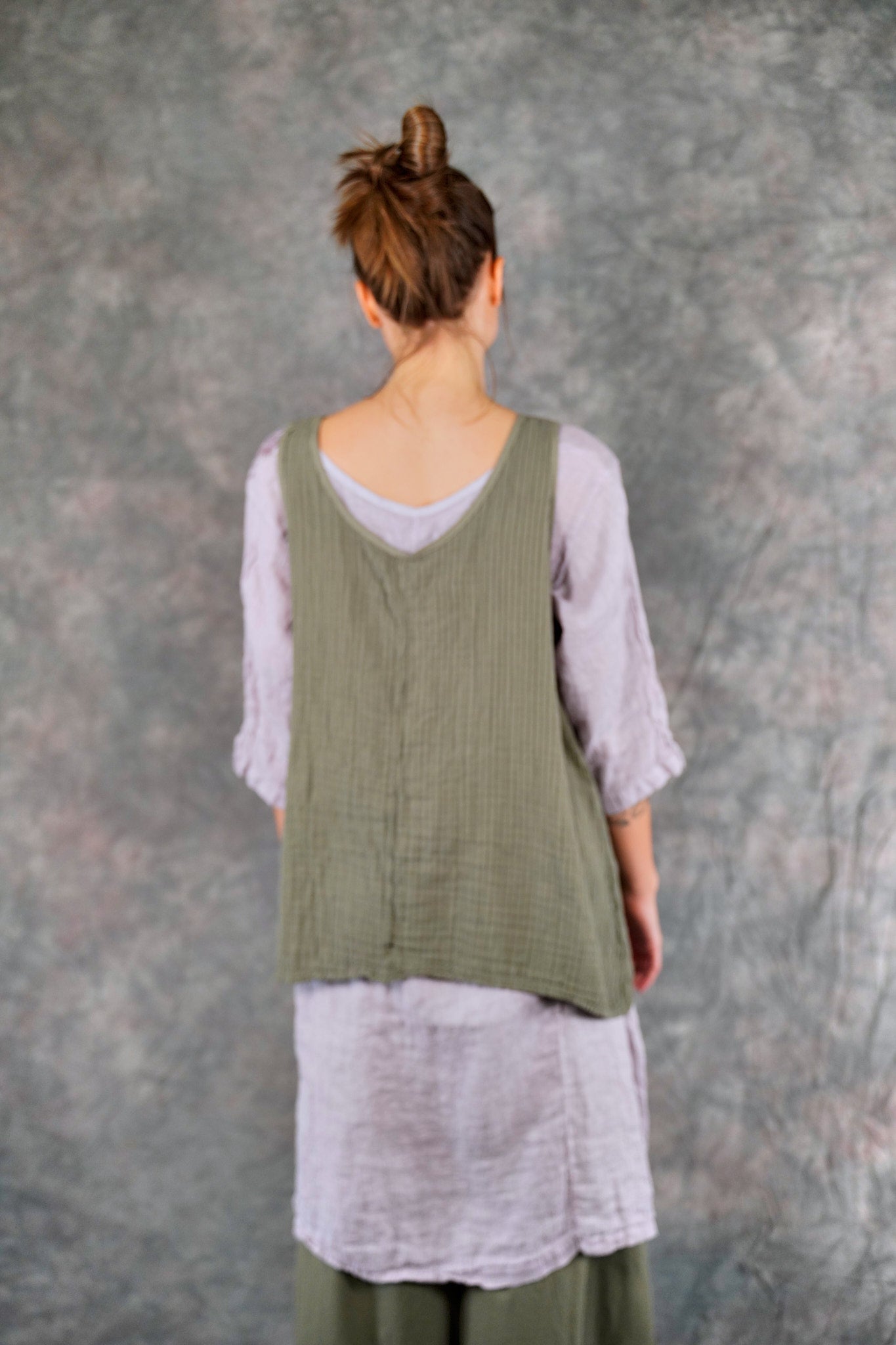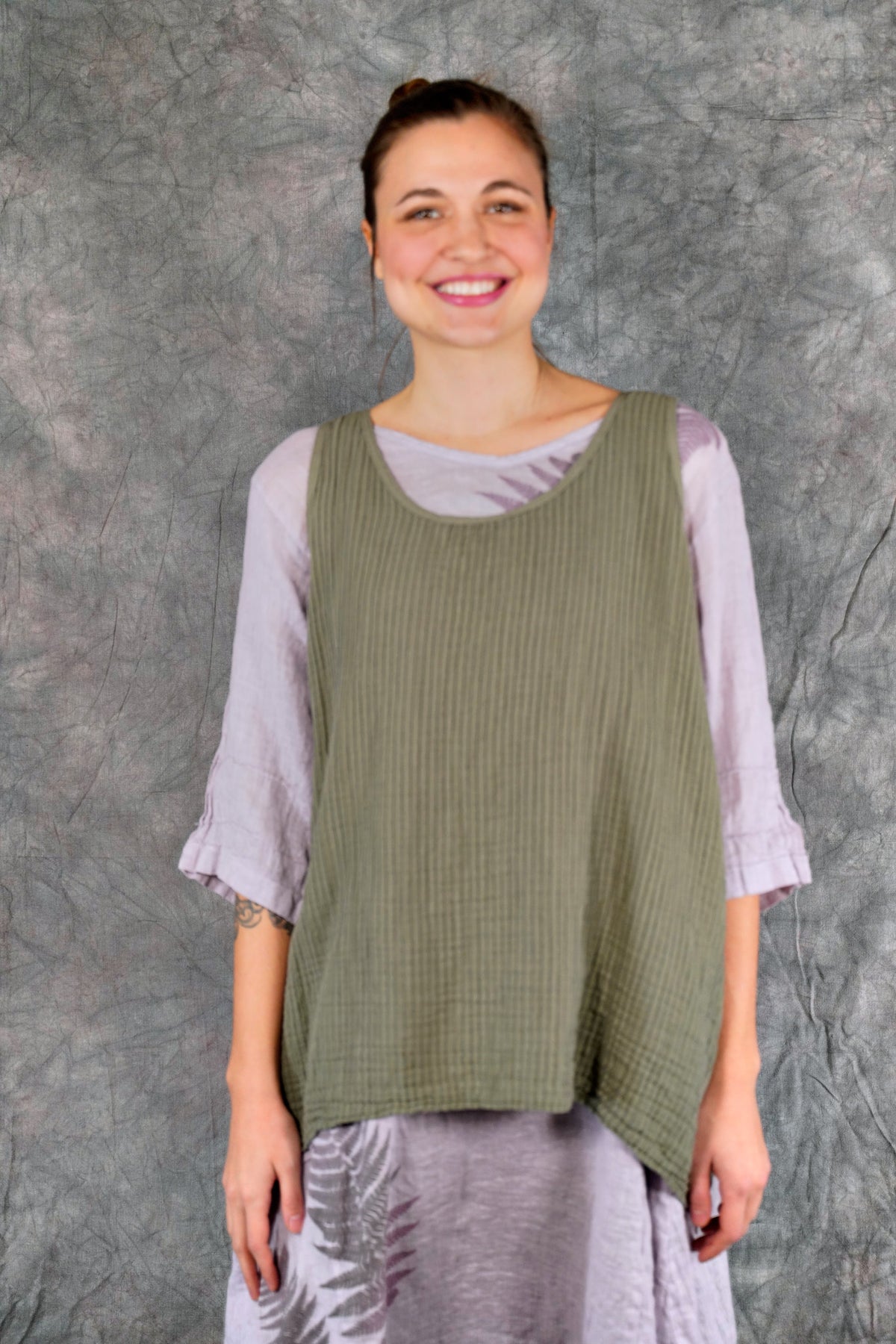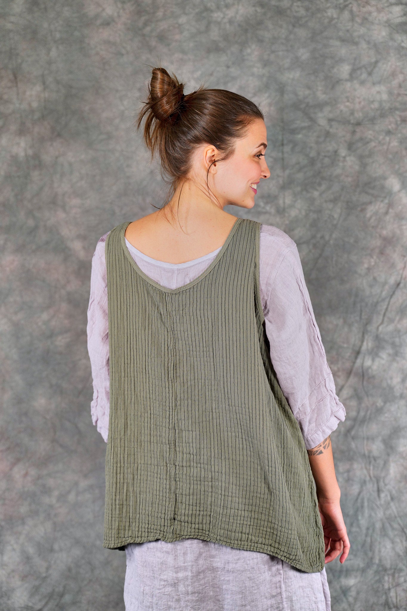Lightweight, comfy, easy to wear double gauze striped tank...or vest.