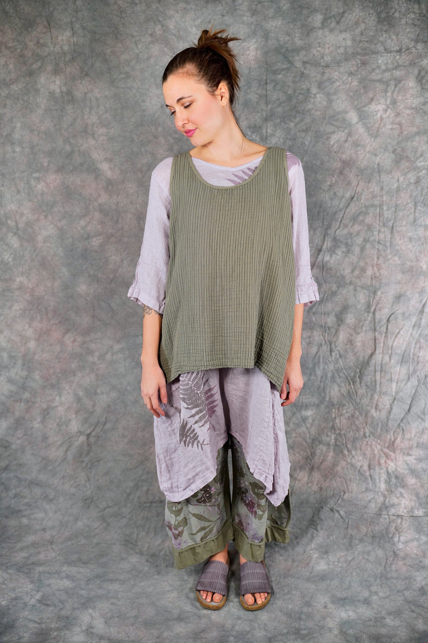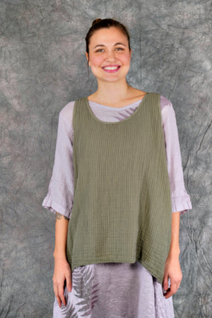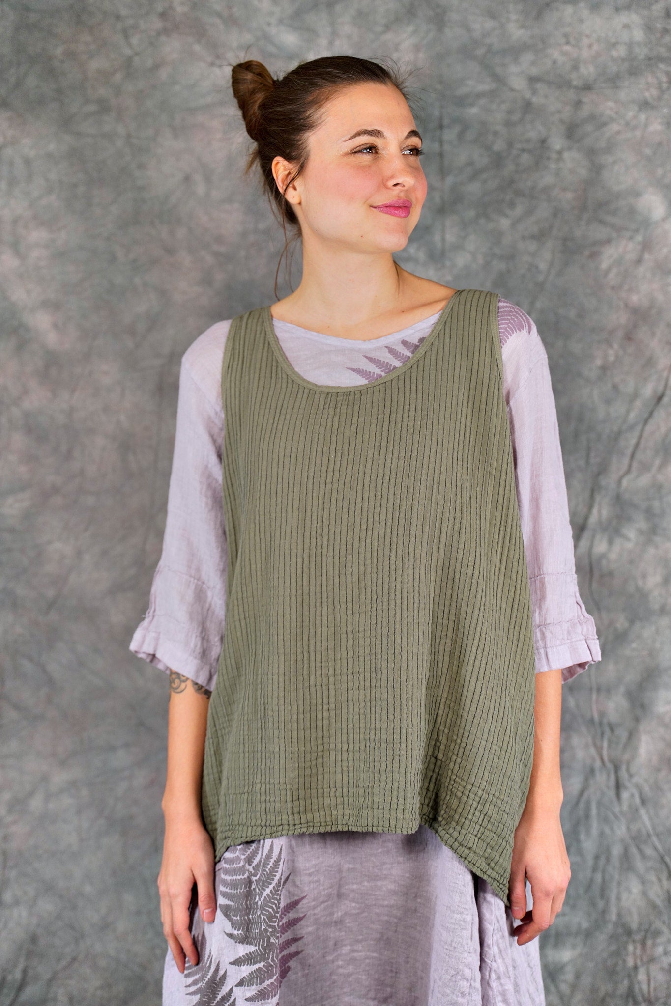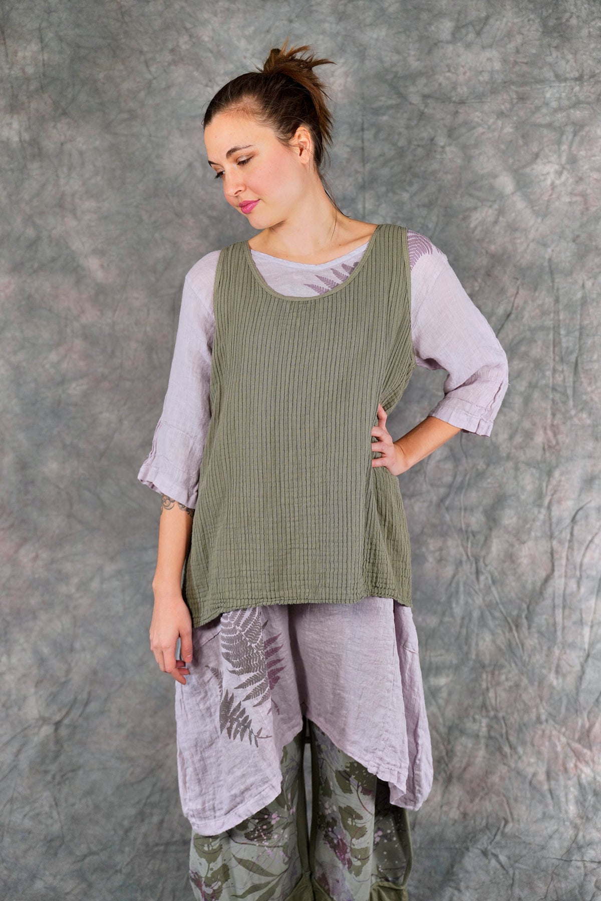Lightweight, comfy, easy to wear double gauze striped tank...or vest.