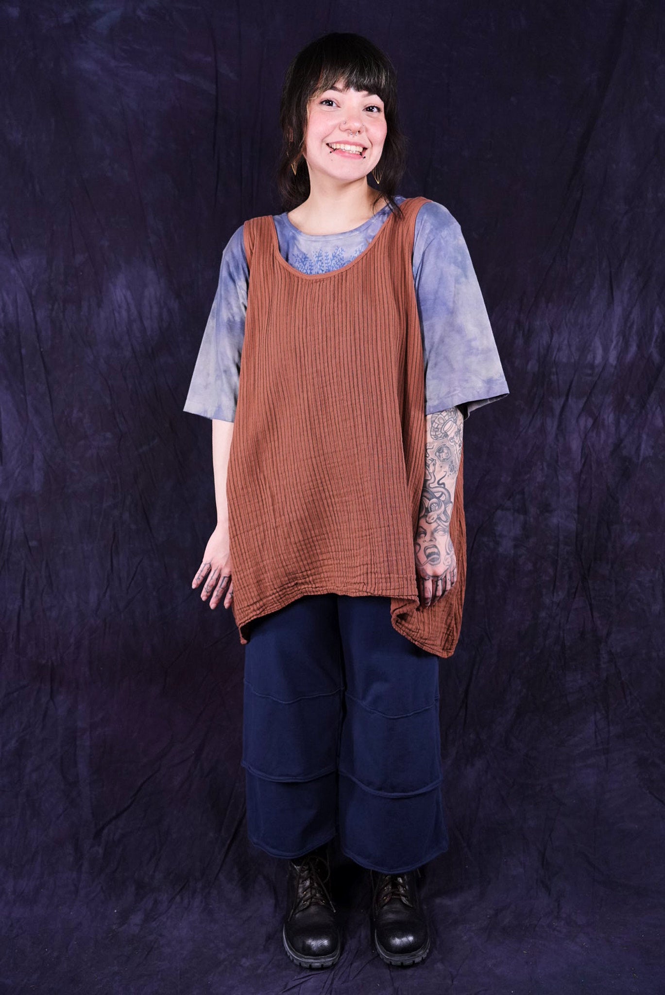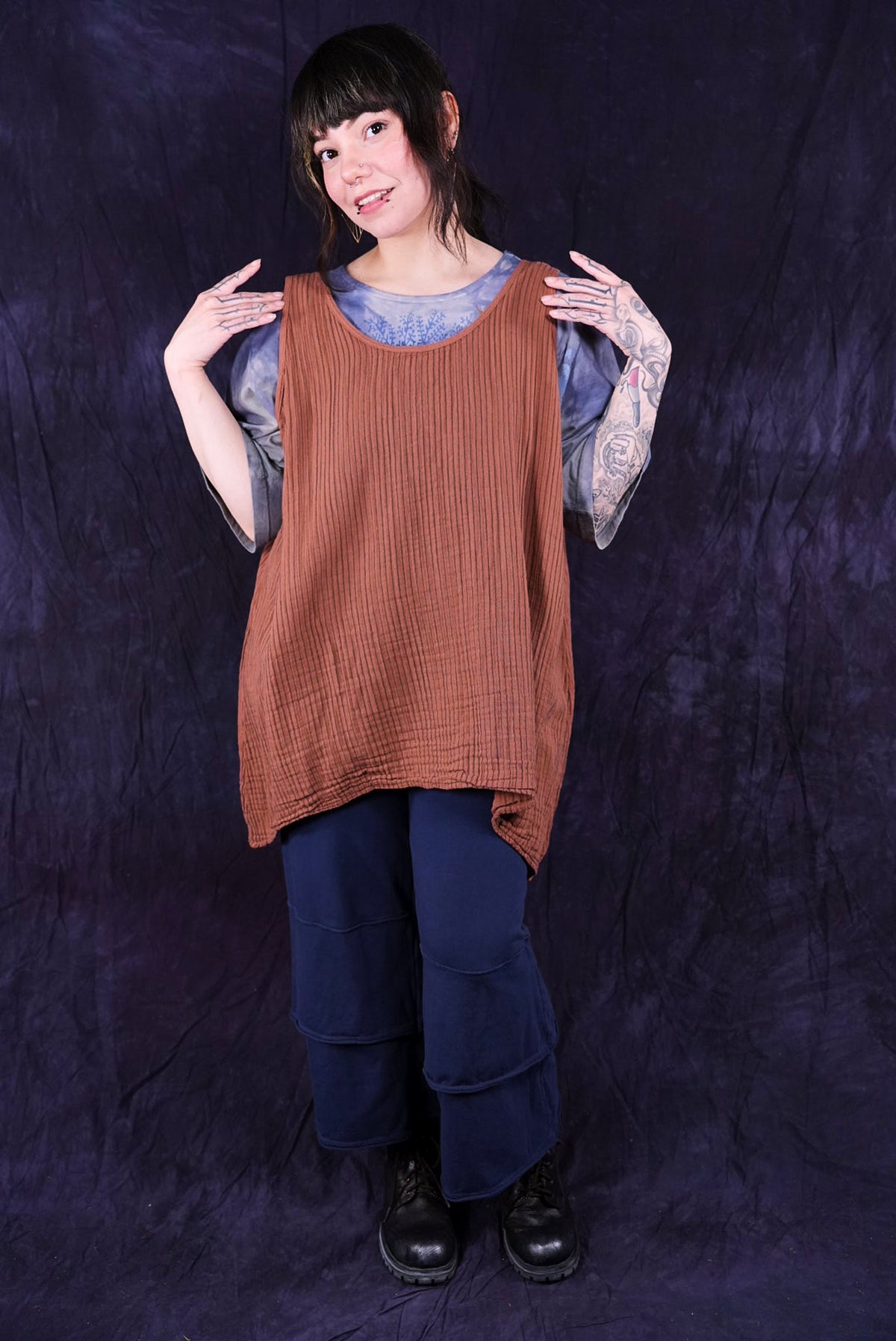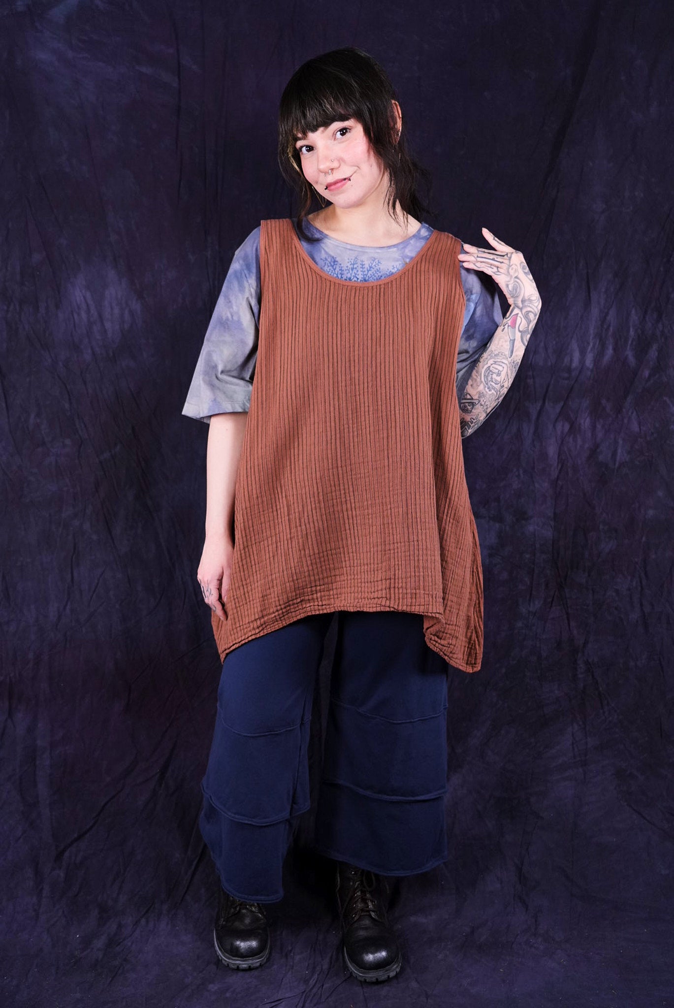 Lightweight, comfy, easy to wear double gauze striped tank.