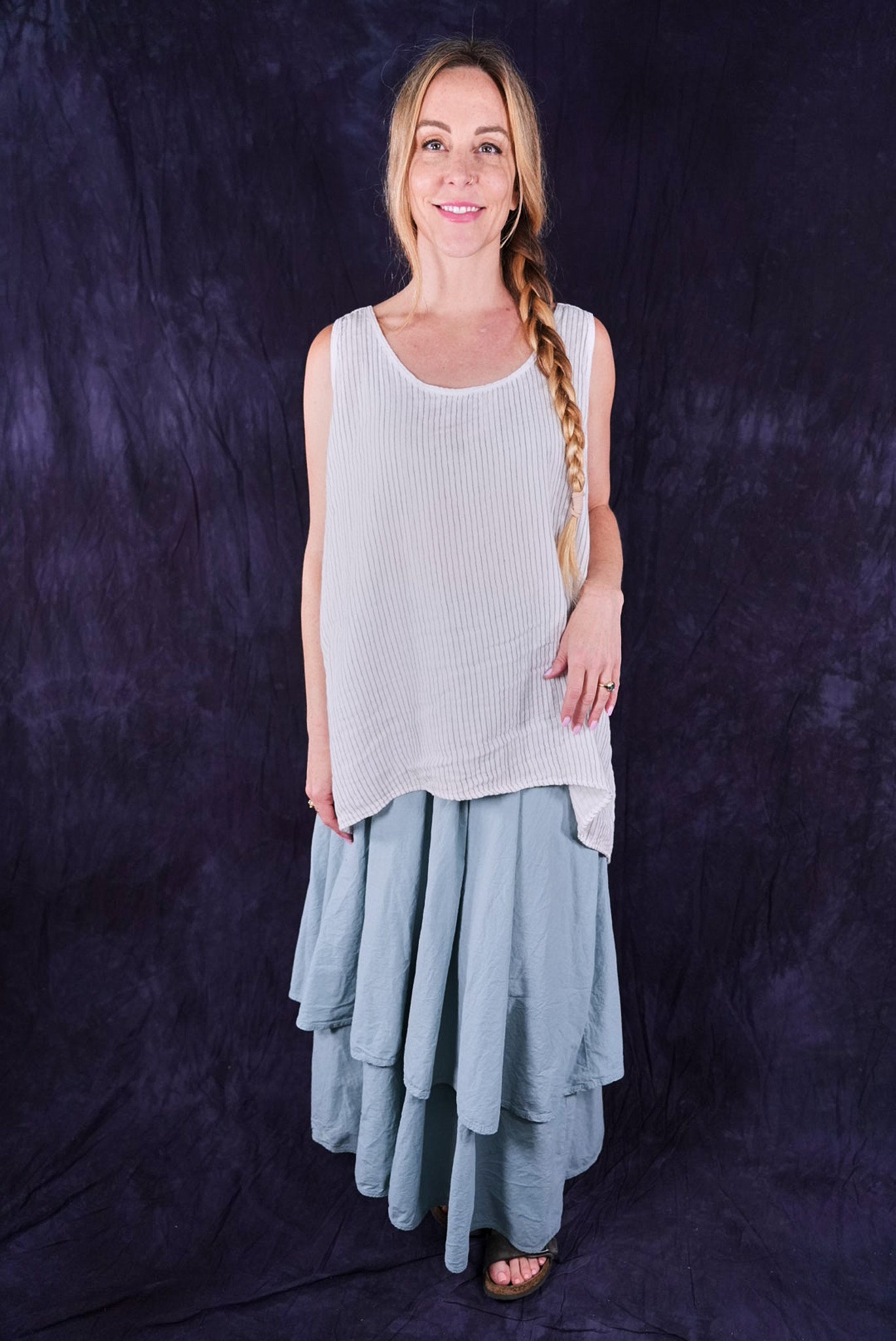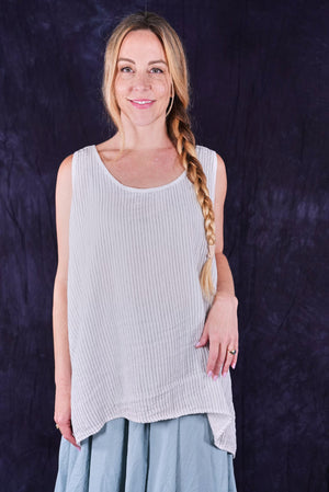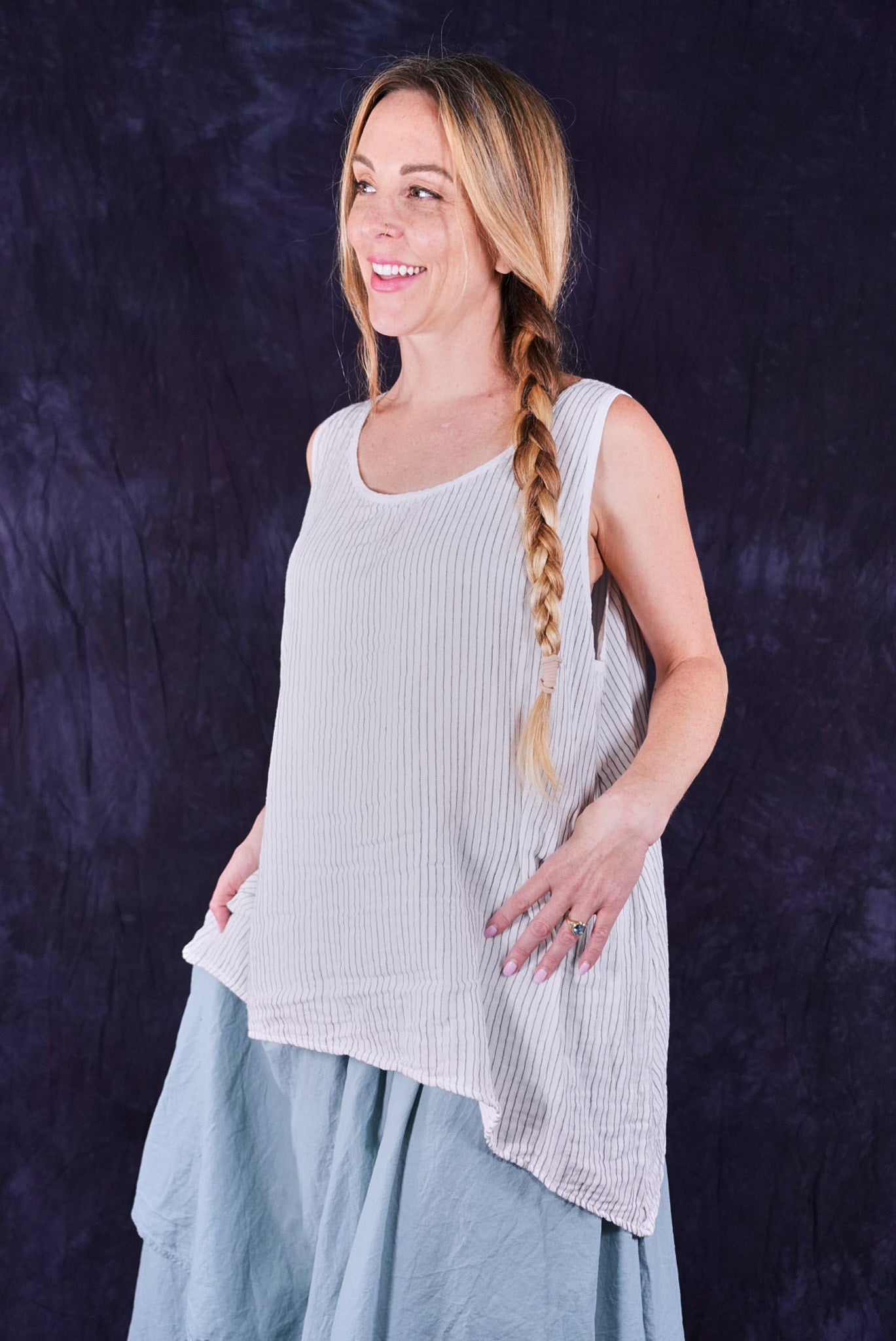 Lightweight, comfy, easy to wear double gauze striped tank...or vest.