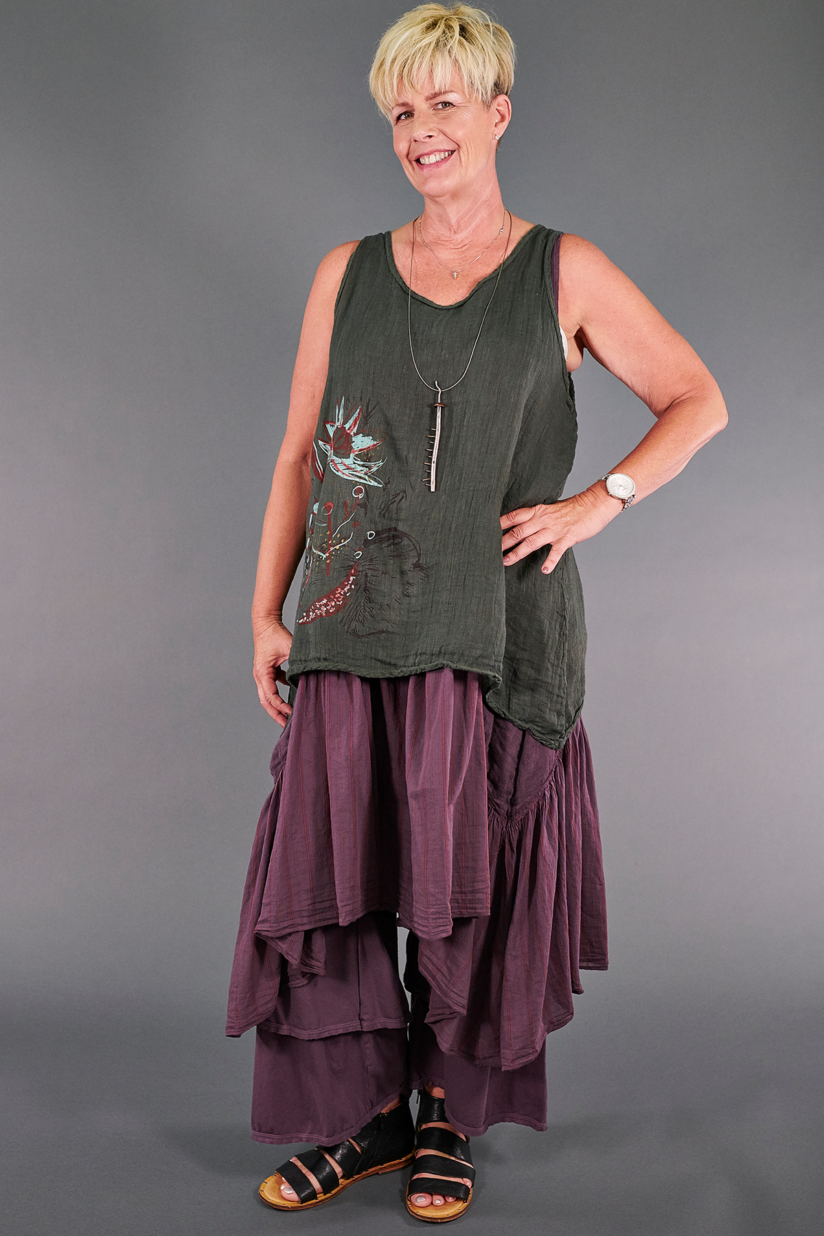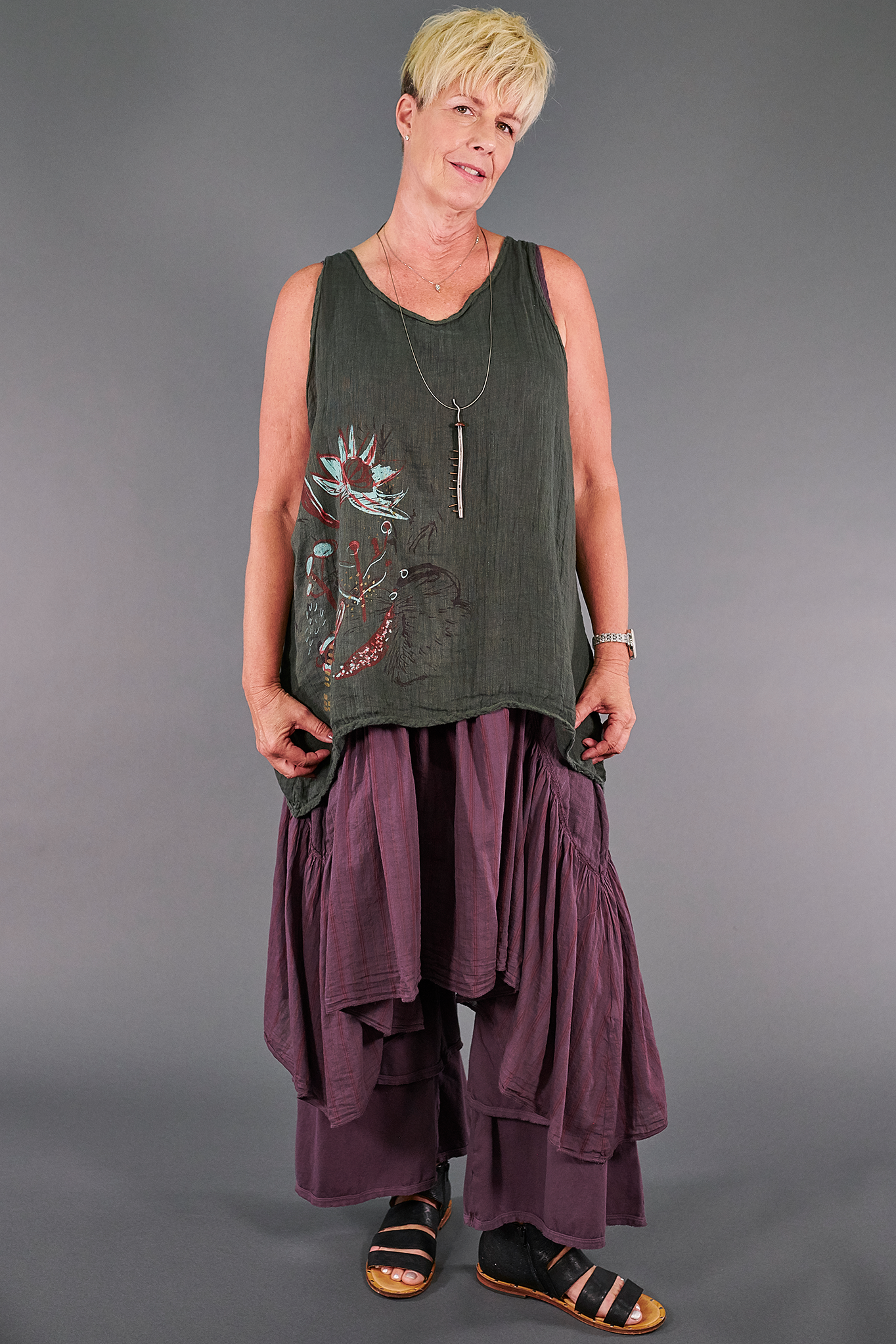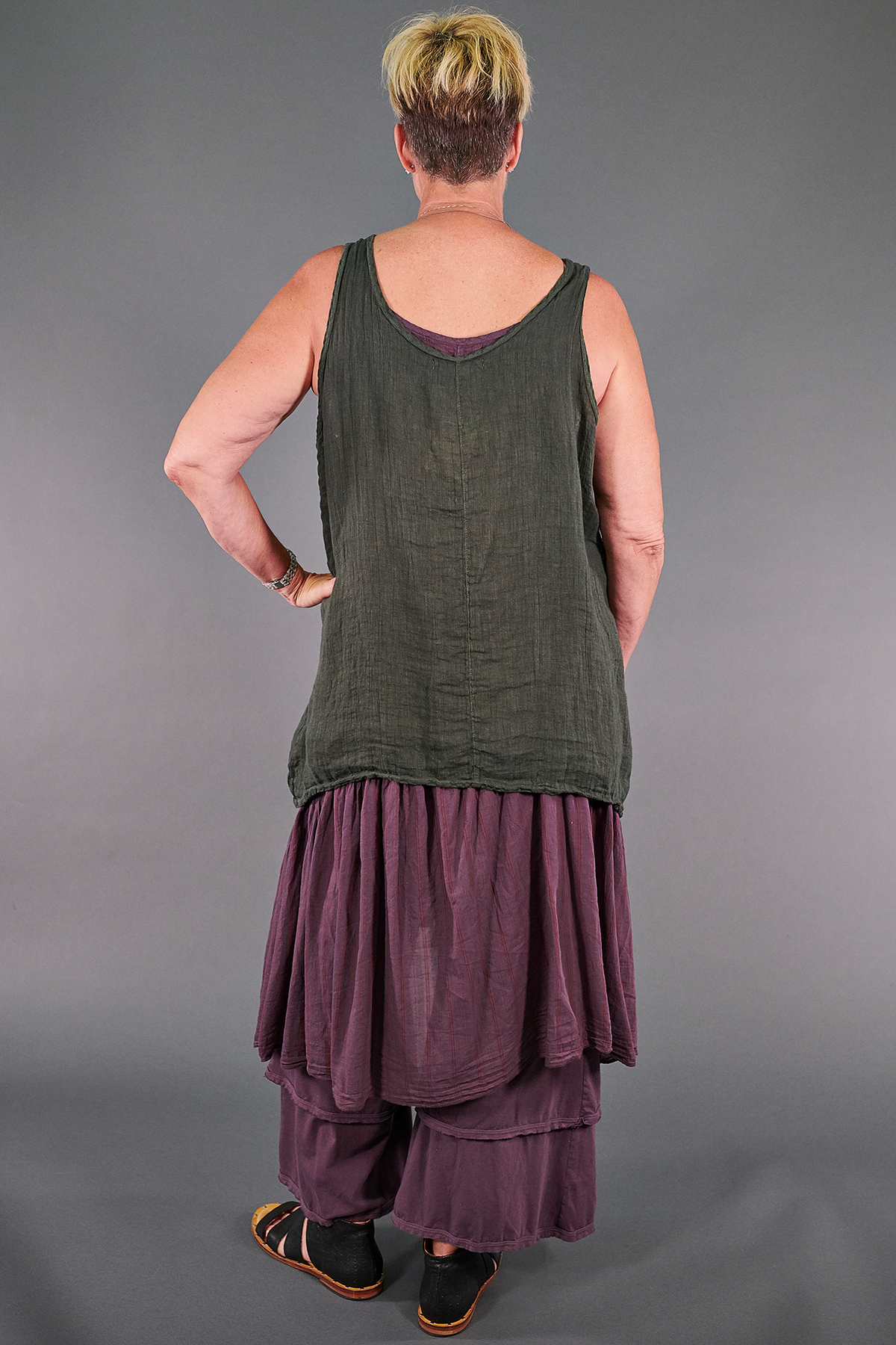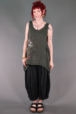 We designed this batch of linen tanks to be slightly more fitted than those we have made in the past--please read the measurements to see which size will work best for you!