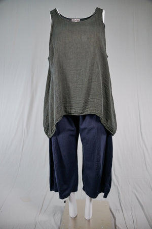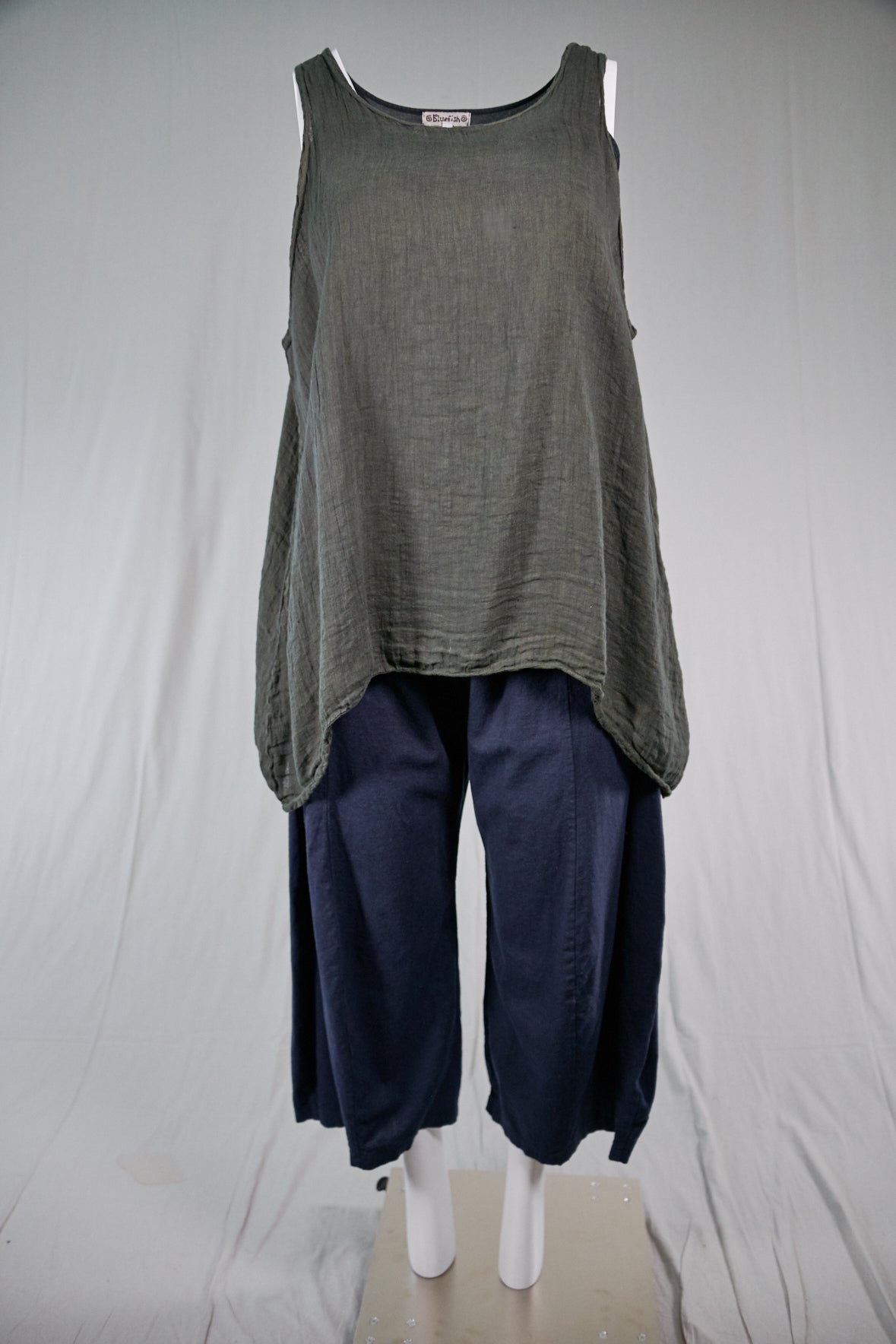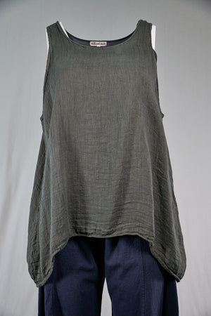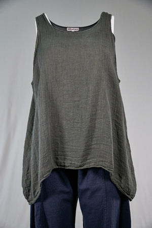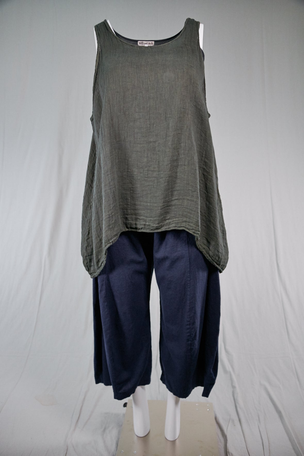 We designed this batch of linen tanks to be slightly more fitted than those we have made in the past--please read the measurements to see which size will work best for you!