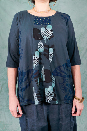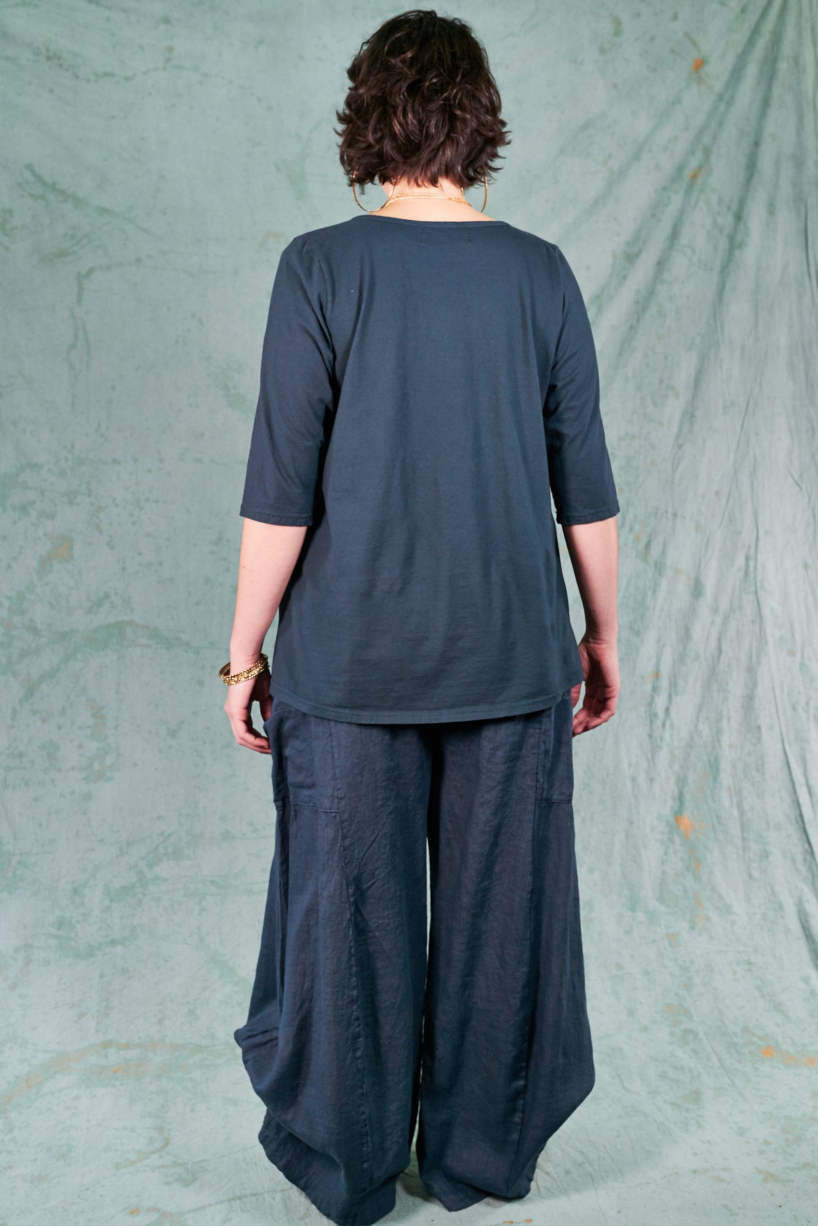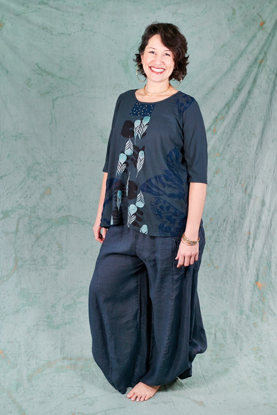 This bell seamed top is gently shaped to flatter the body, not excessively oversized.