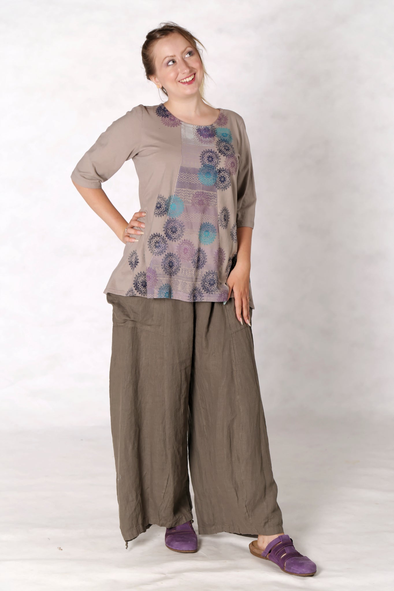 We love the look of this top with a skirt, over leggings, or with linen pants.