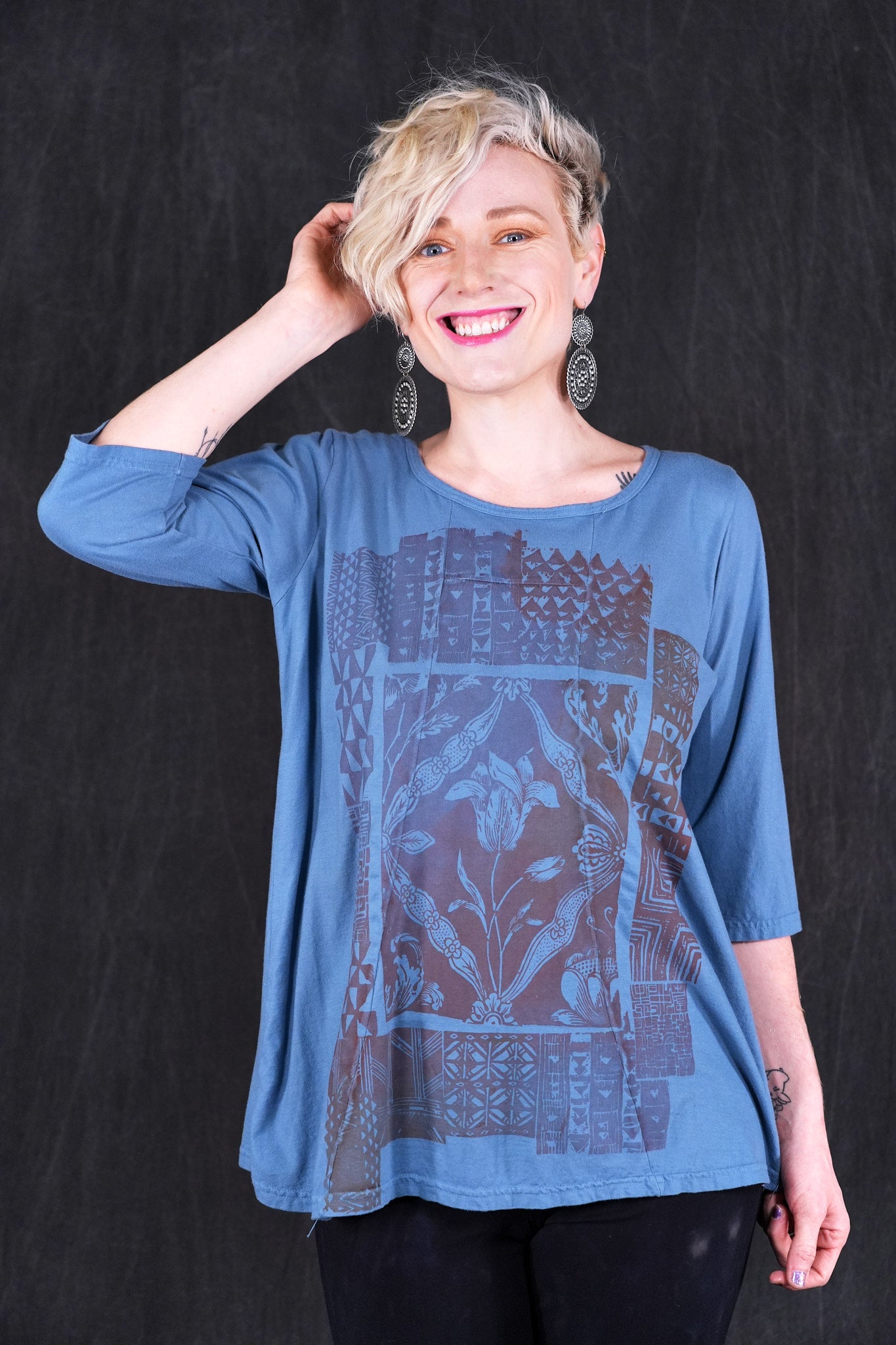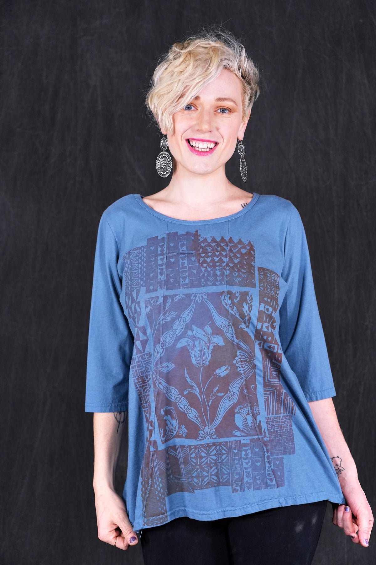 This bell seamed top is gently shaped to flatter the body, not excessively oversized.