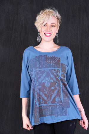 We recommend cold wash with gentle liquid laundry soap on the gentle cycle. Dry in a low heat tumble dryer for a few minutes, then hand dry the rest of the way for best garment longevity. Remember: if you turn your hand printed pieces inside-out, they will look great for a long time.