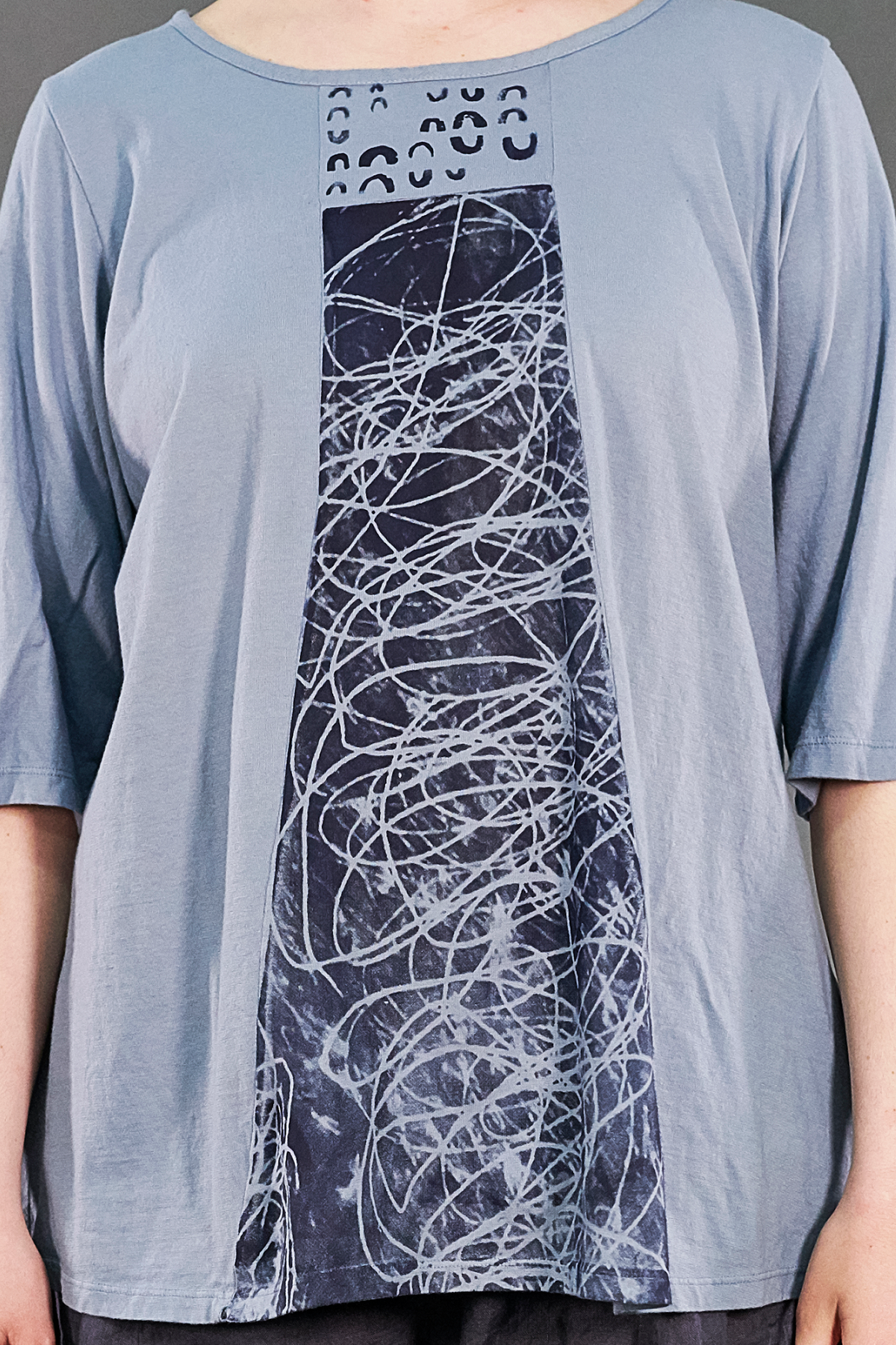 This bell seamed top is gently shaped to flatter the body, not excessively oversized.