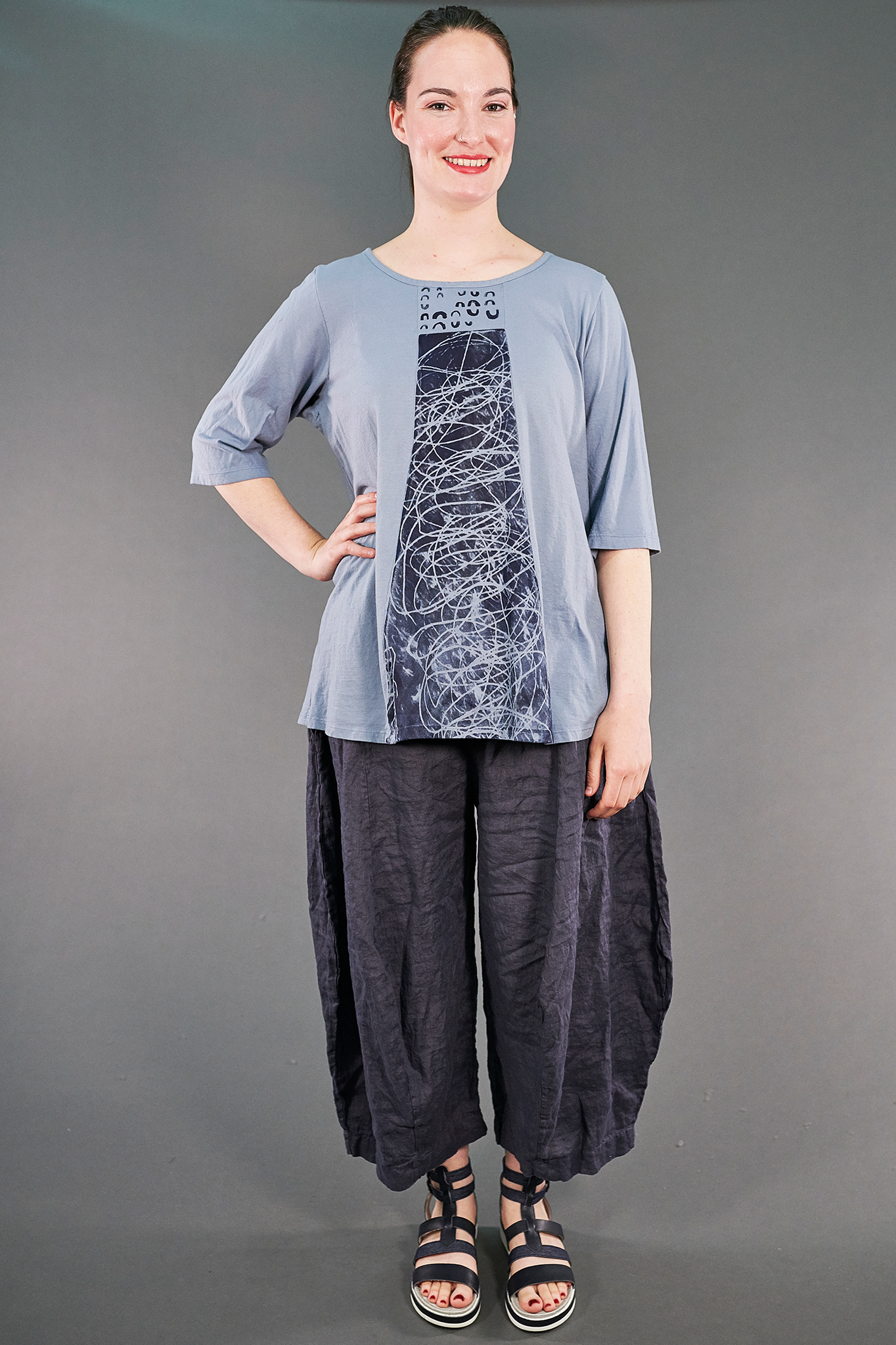 We love the look of this top with a skirt, over leggings, or with linen pants.