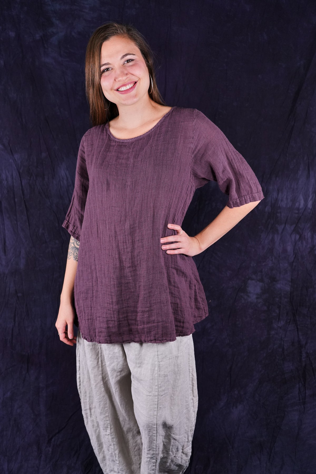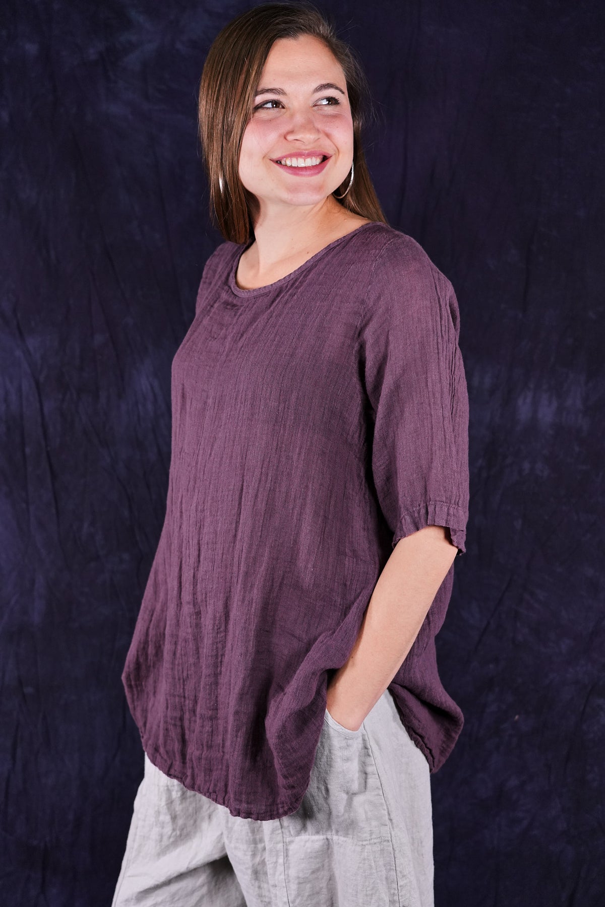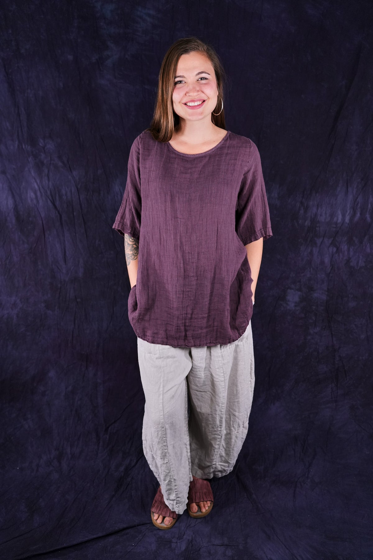 Soft relaxed linen tee that great for both travel and everyday wear. Works well with pants and skirts, a great springtime wardrobe staple!