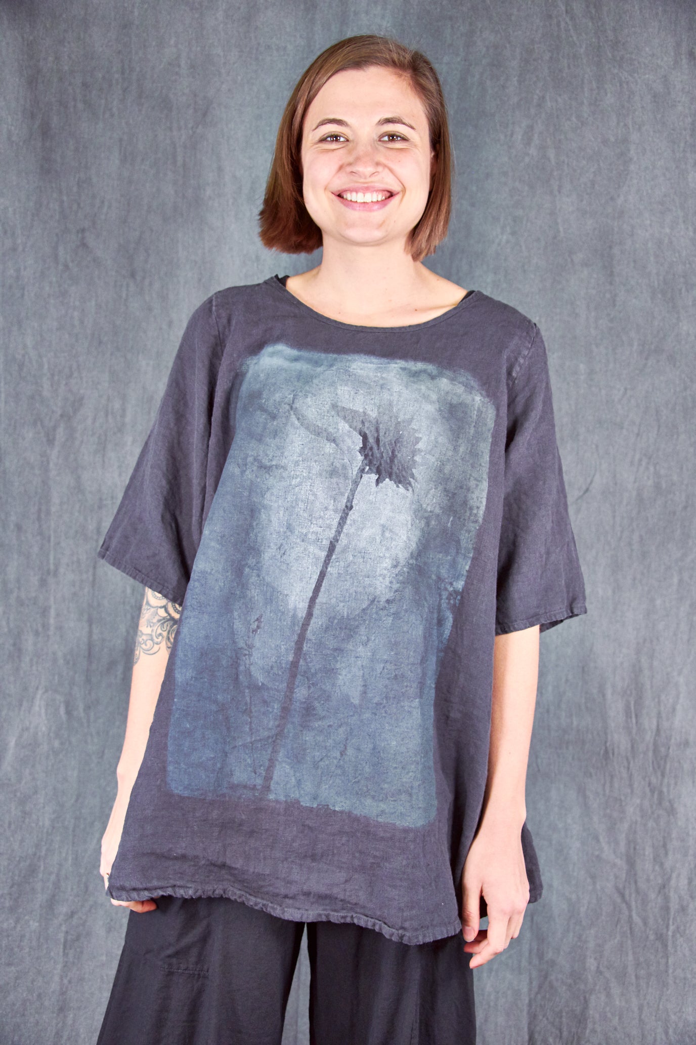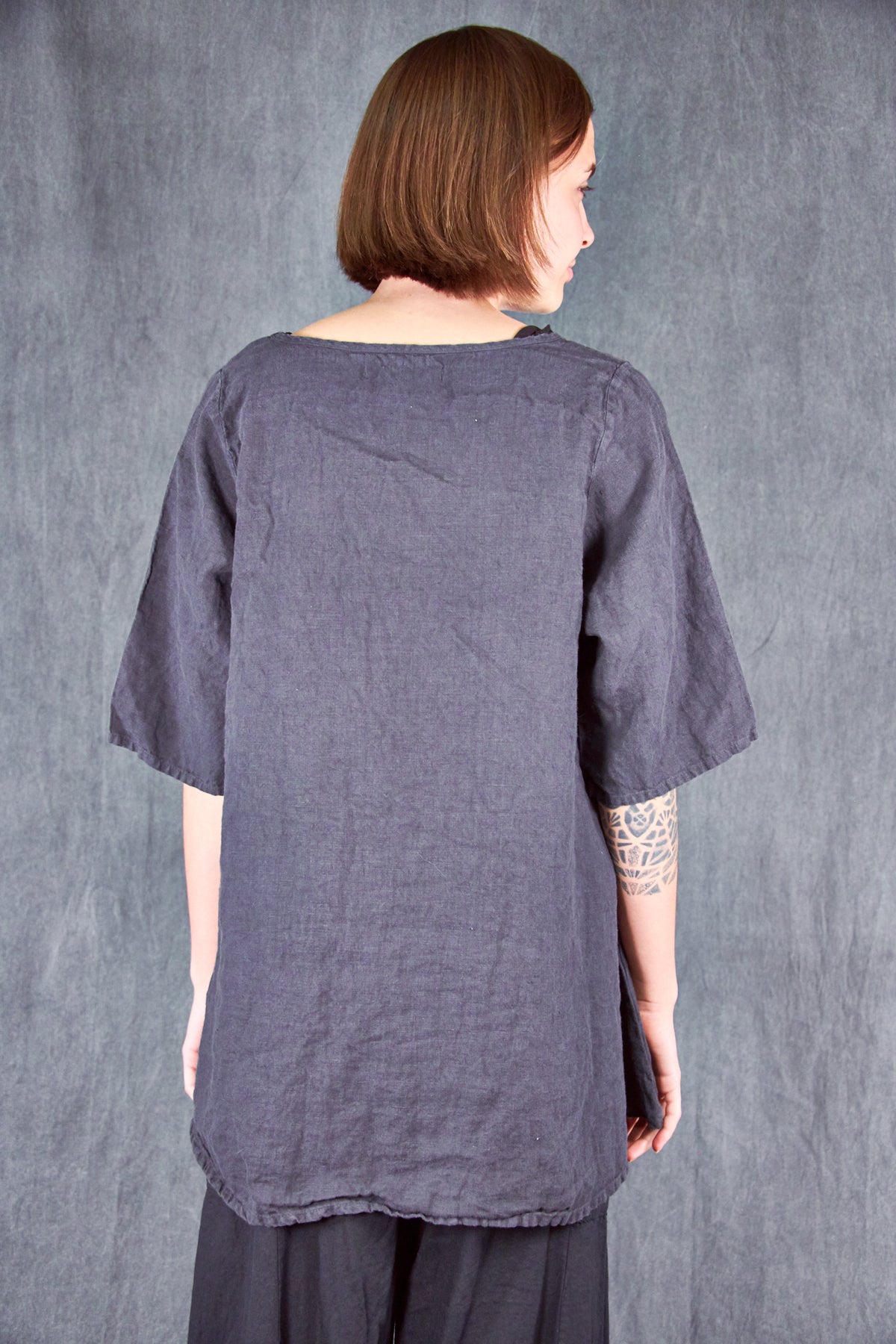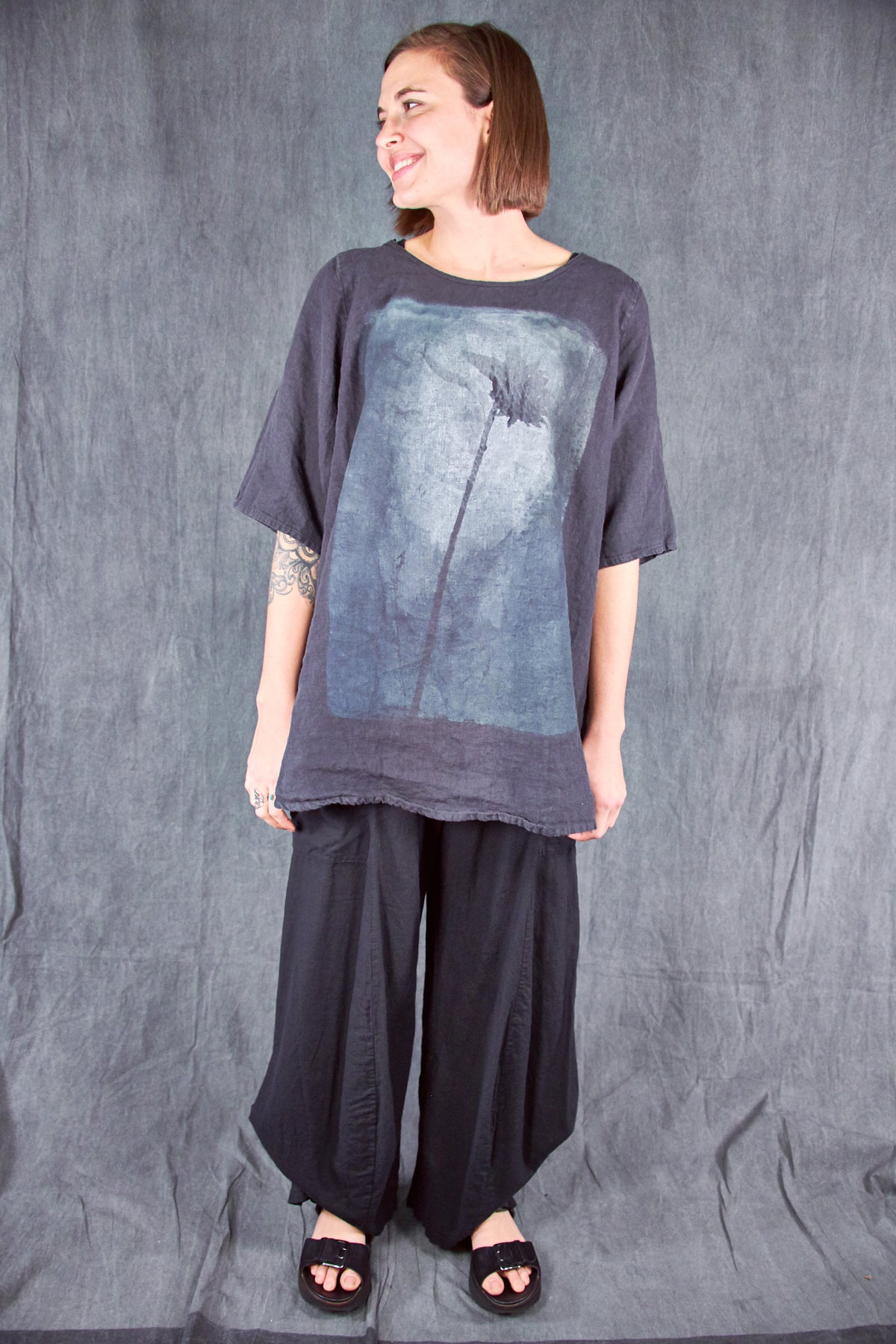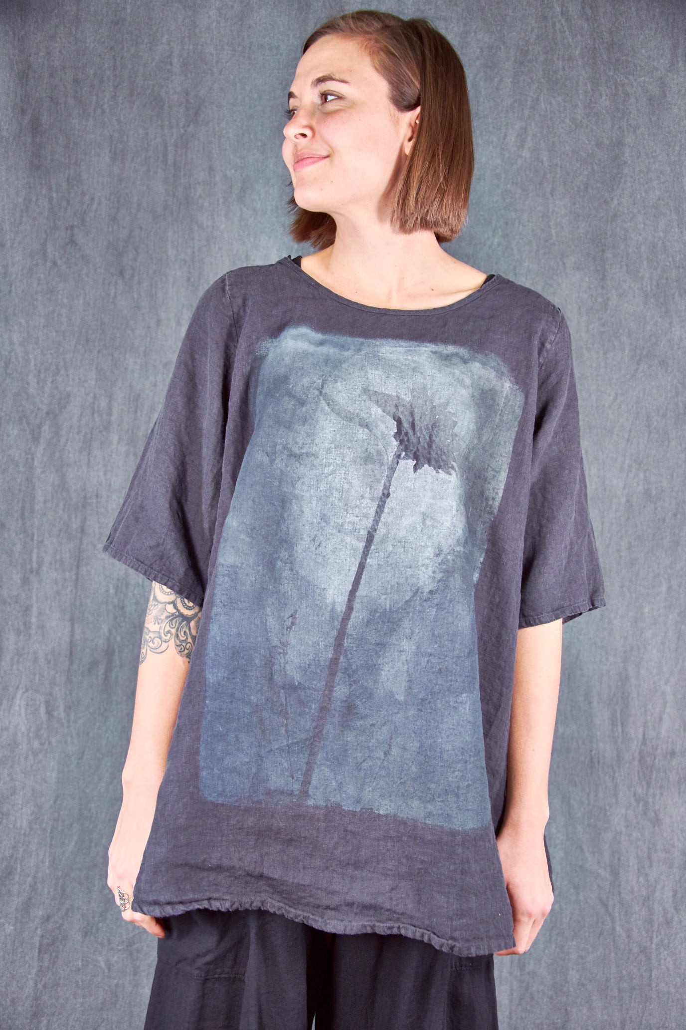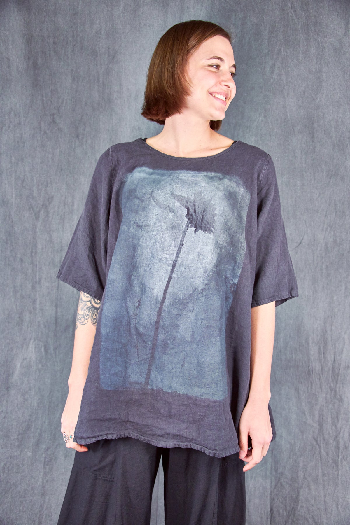 Our Linen Tee is a new wardrobe staple. We LOVE this linen material--it is a wonderful soft substantial weight and feels like heaven next to your skin! This is just what you'll want to pack for your next vacation- YES we will travel again SOON! To wear on every warm day...this top makes a wonderful addition to your Blue Fish collection.