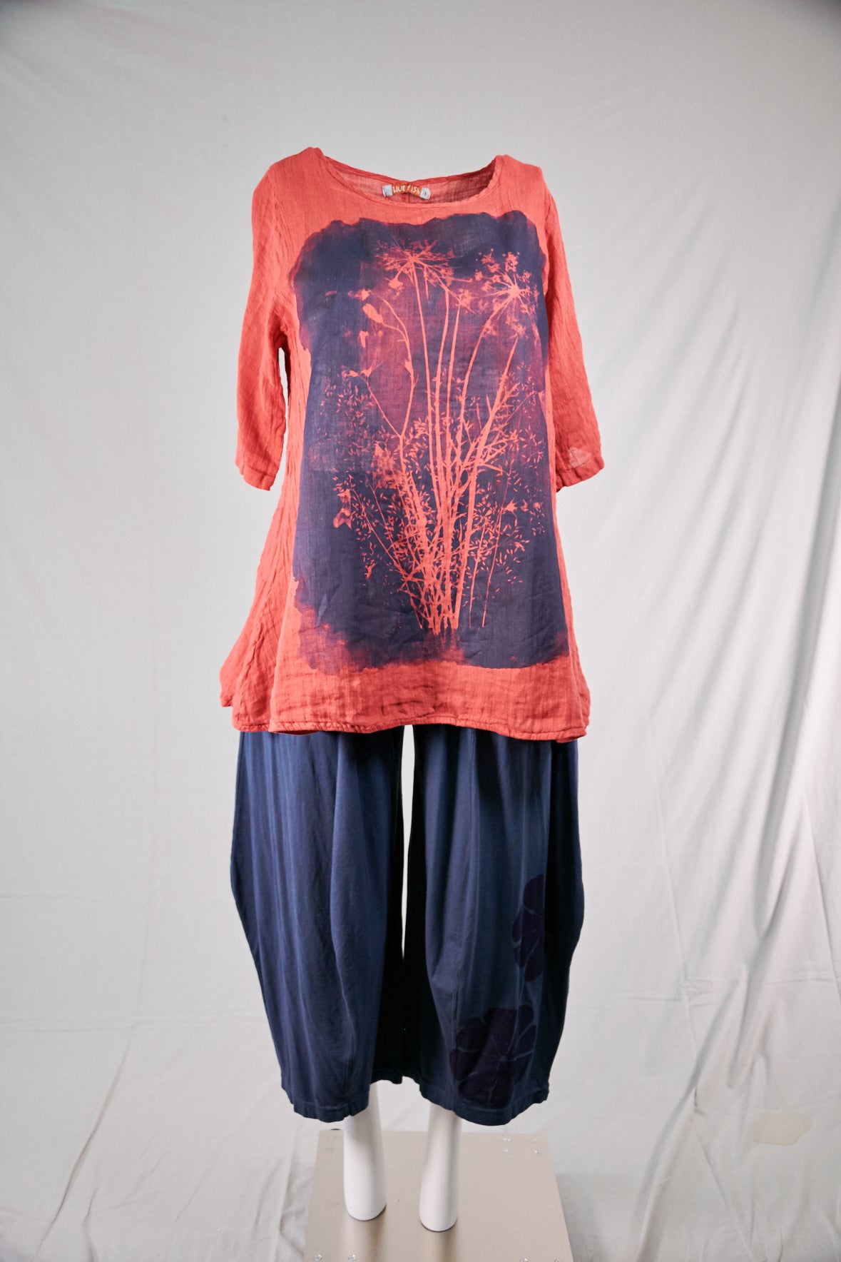 Our Simple Tunic is a new wardrobe staple. We LOVE this breeze linen material--it is so lightweight and feels like heaven on your skin! This is just what you'll want to wear on every warm day and makes a wonderful addition to your Blue Fish collection. Hand-printing on the front adds wonderful dimension to this top.