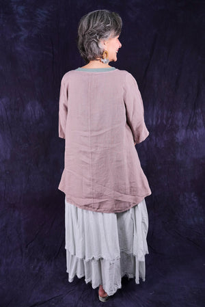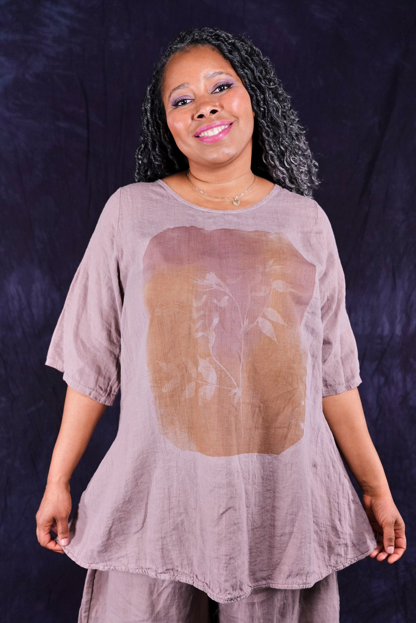 Beautiful soft flax linen t-shirt that drapes well and breathes as you walk. Pairs well with pants or skirt.