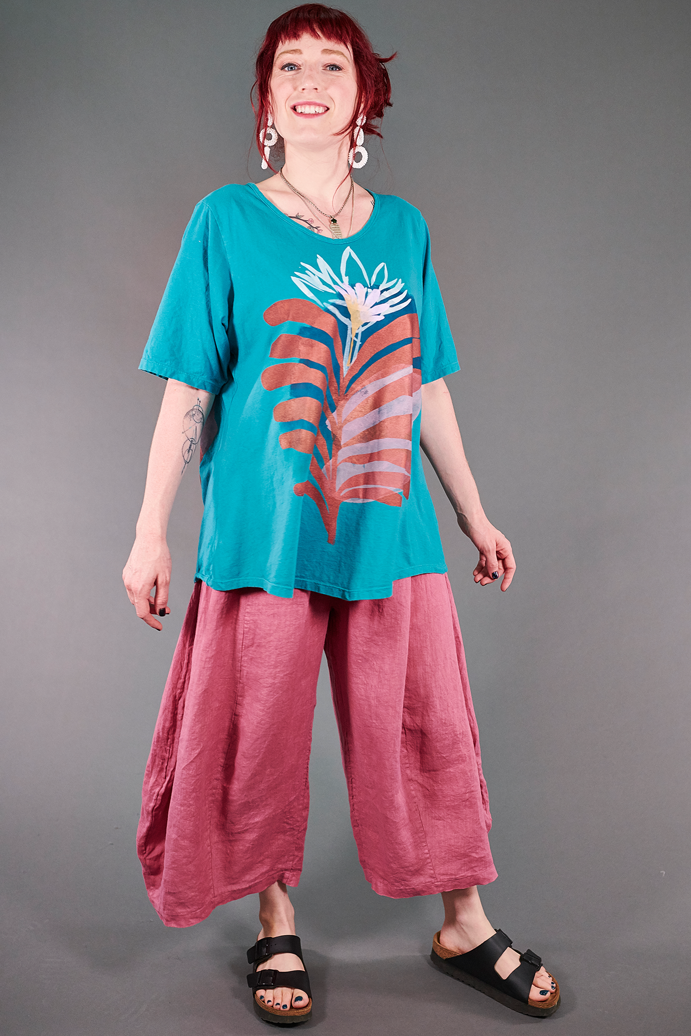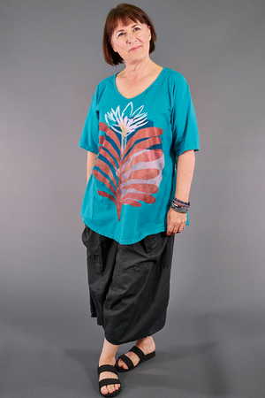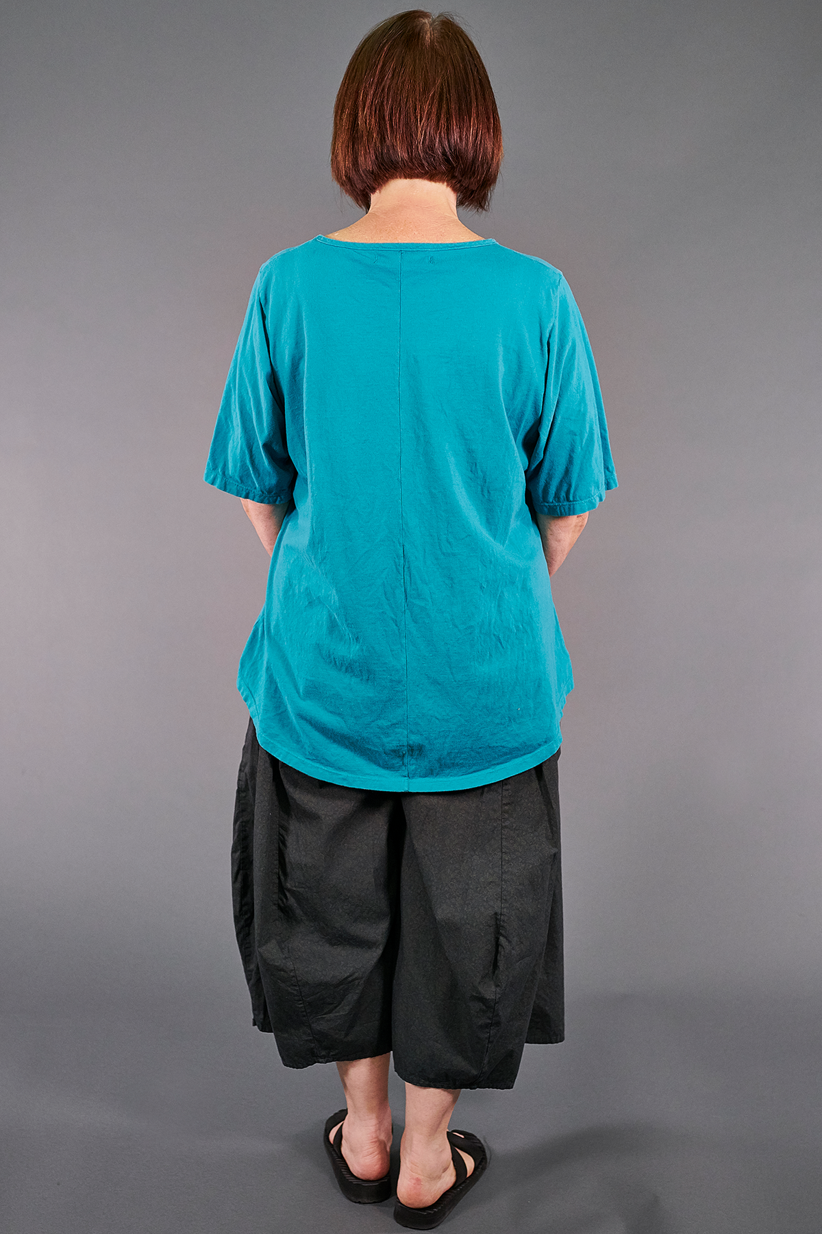 This feminine v-neck layer tee (previously known as the Lightweight A-Line Layer Tee), made of our soft organic cotton jersey, gradually flairs in a gentle A-line, with a slight downward curved hemline at the front and back. Sleeves hit just above the elbow. If you want a top that's slender yet doesn't cling to the body where it counts, this will be your favorite top!