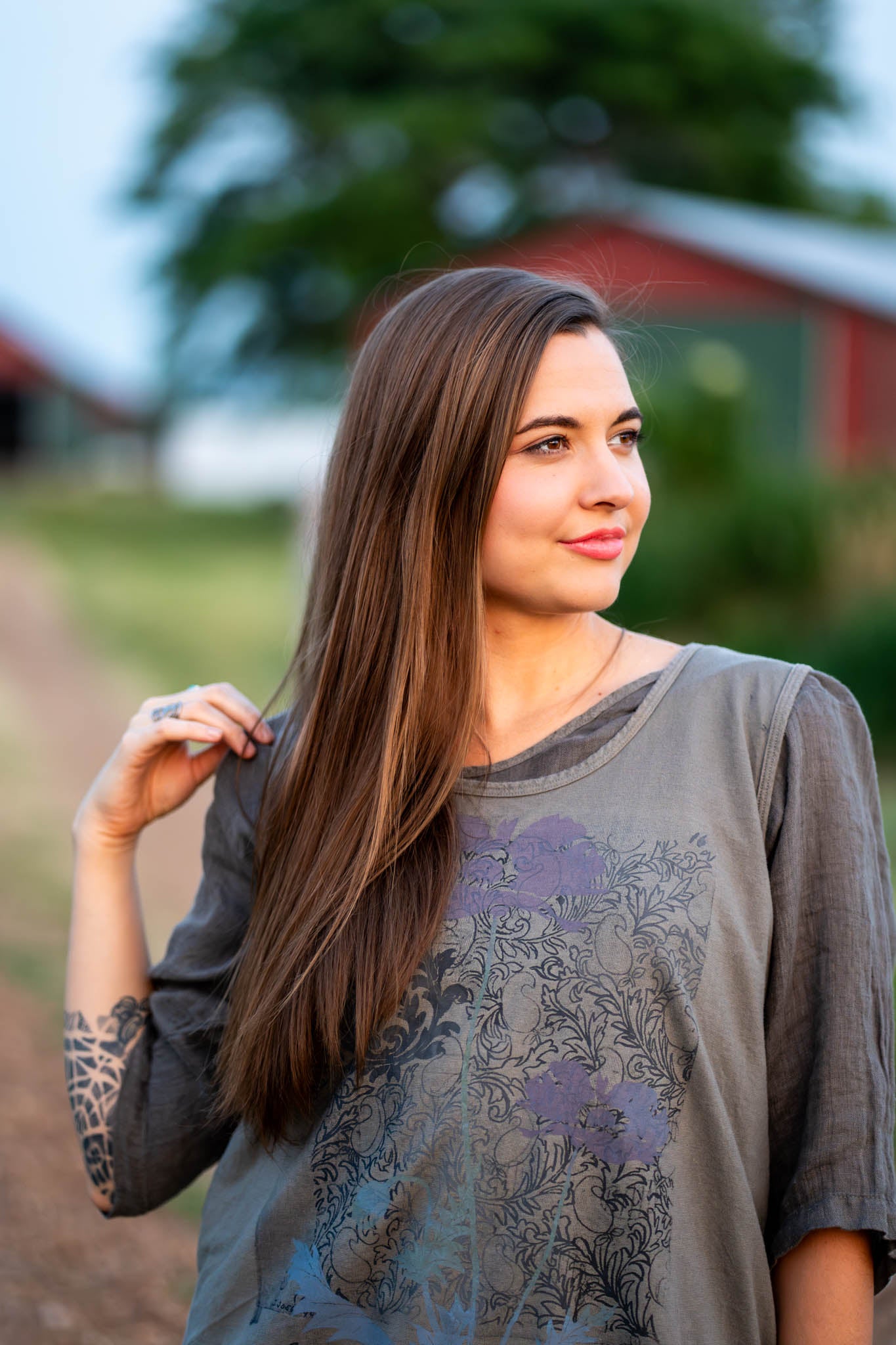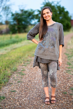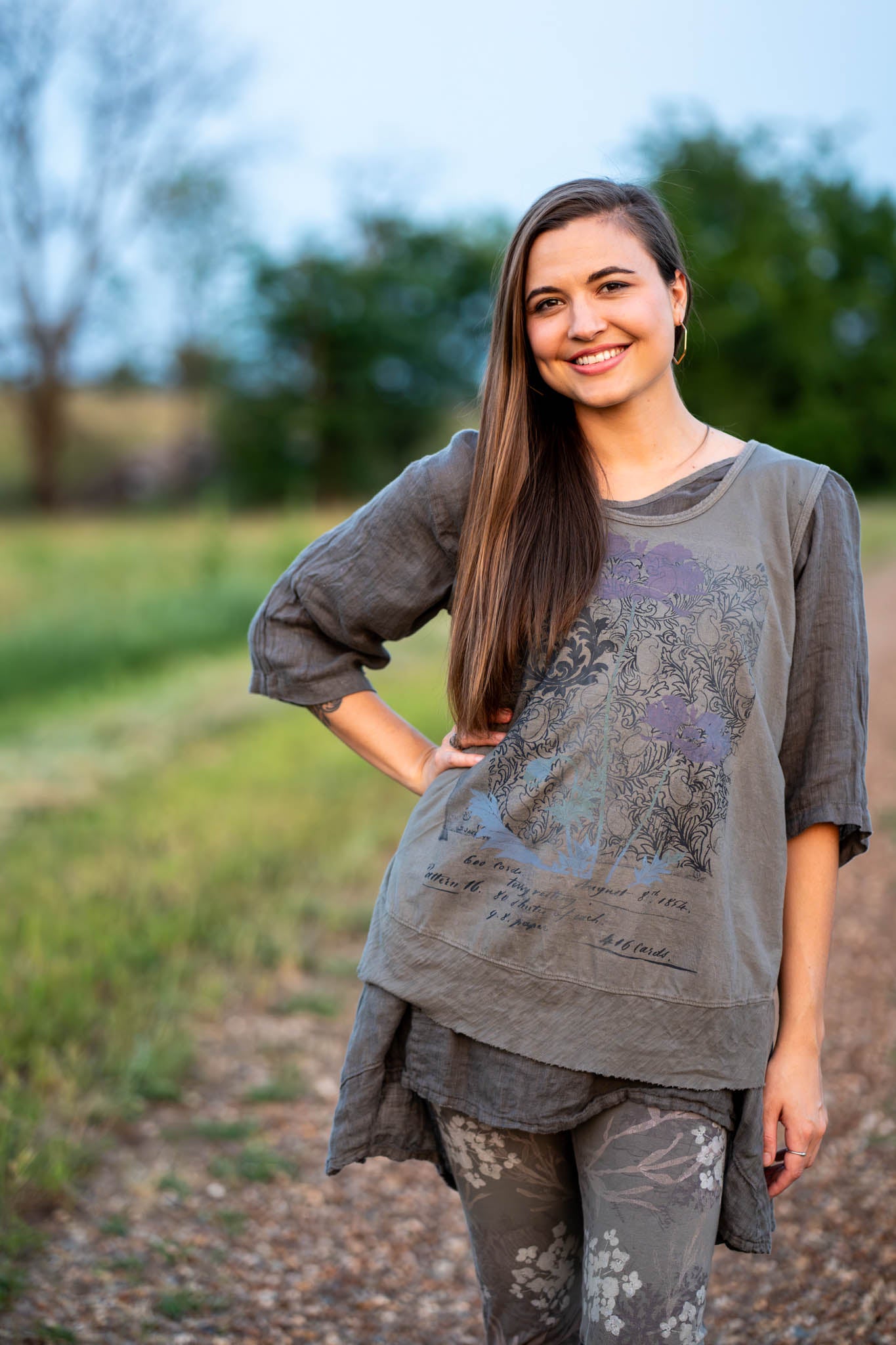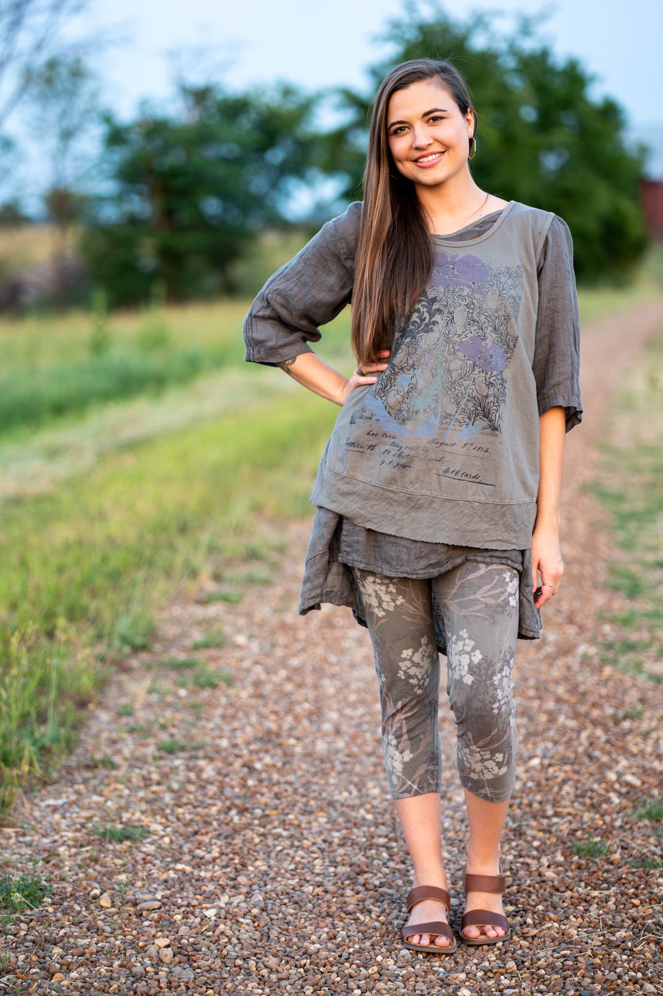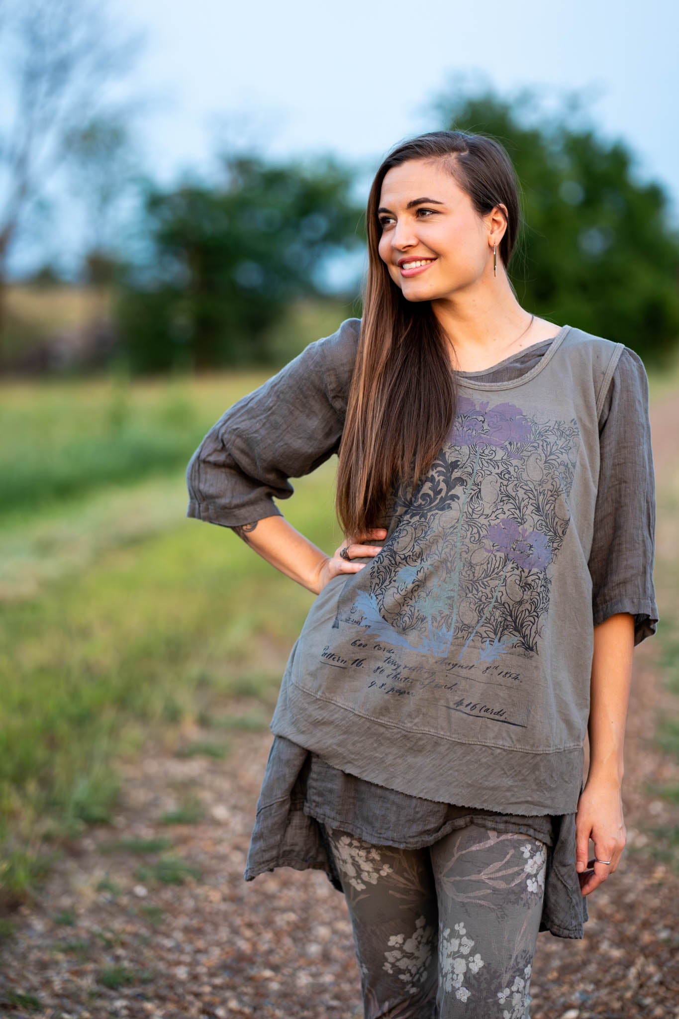 This organic cotton tank top is easy to wear alone or layered under linen jackets...the printing is lovely. Wear with the Double Layer Skirt or the Billow Pant. It's a timeless classic to wear every summer!
