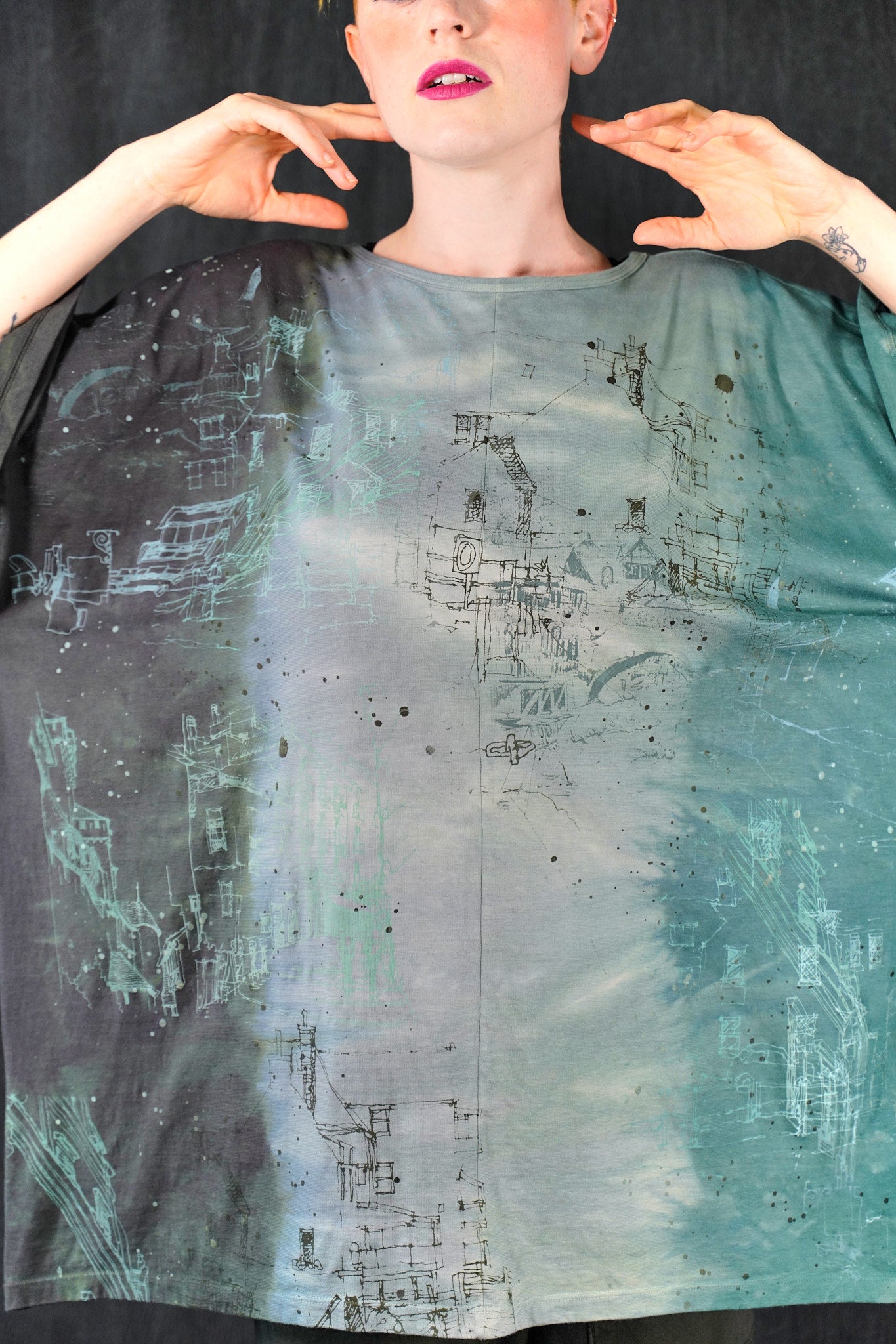 This one sized, boxy, wide organic cotton tunic is a wardrobe staple you'll want to wear all year long. All of us at Blue Fish HQ have at least a couple... this magical shape drapes beautifully to flatter every body type. Look closely at the print layers- so much print, in a gardenful of color and artful expression.