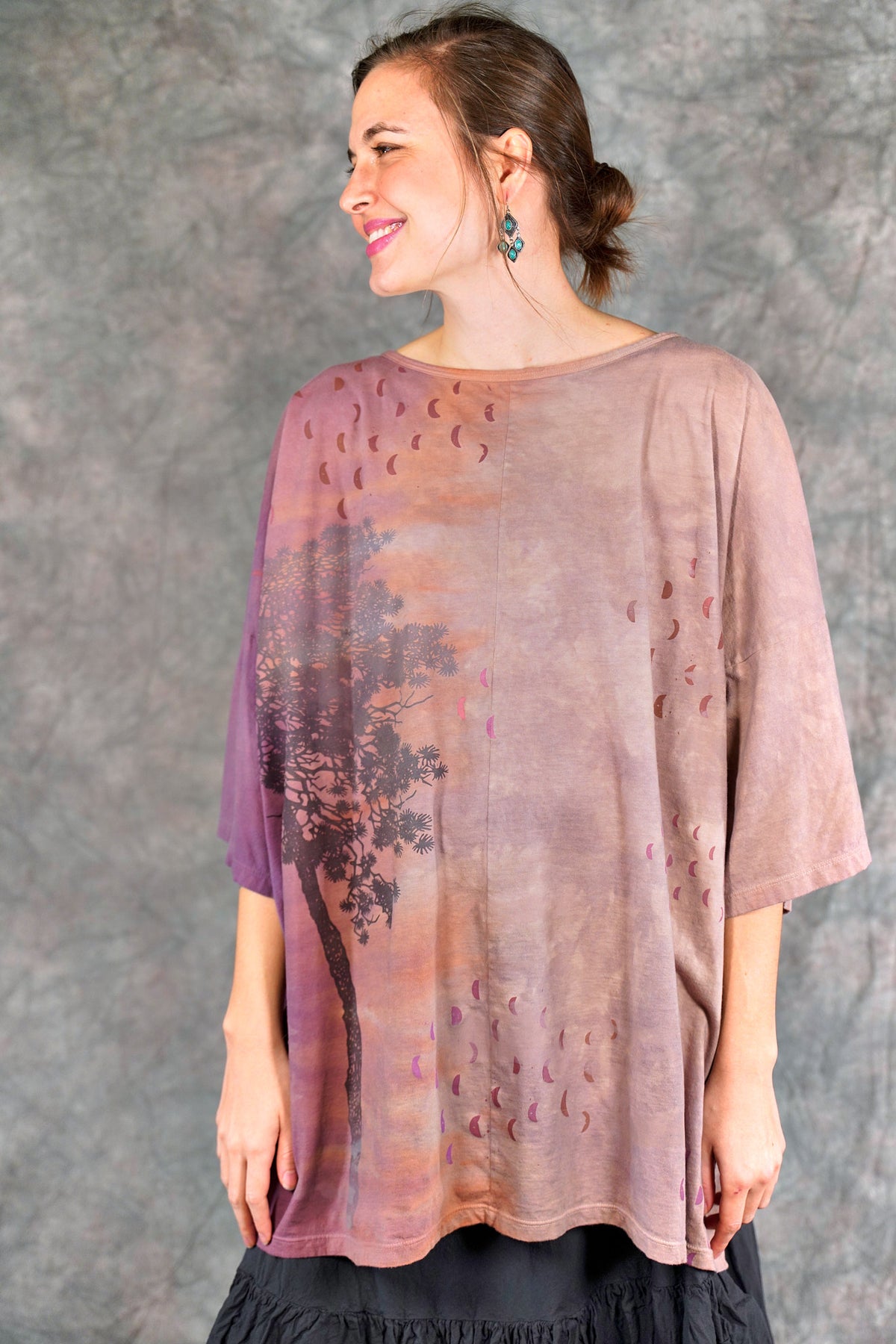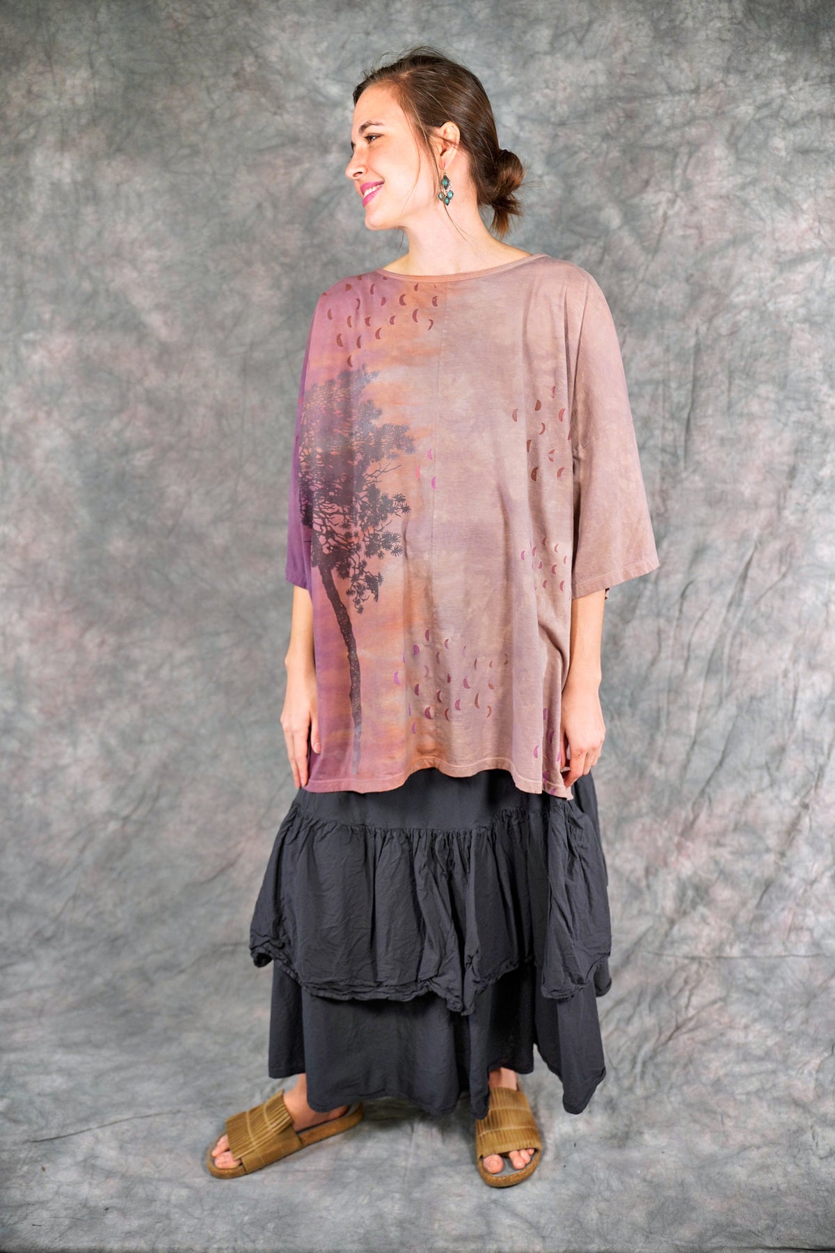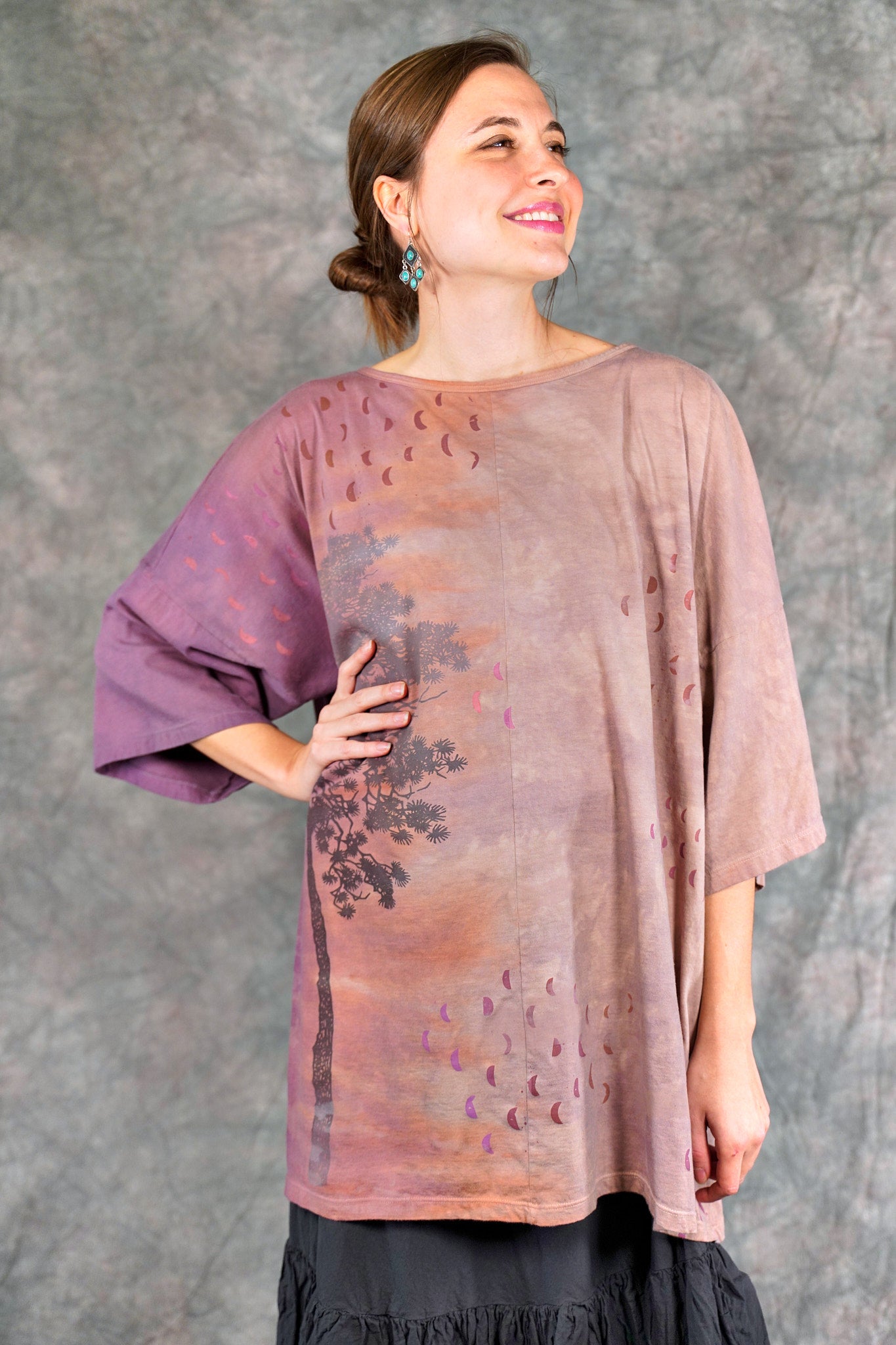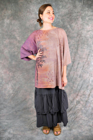 This one sized, boxy, wide organic cotton tunic is a wardrobe staple you'll want to wear all year long. All of us at Blue Fish HQ have at least a couple... this magical shape drapes beautifully to flatter every body type. Look closely at the print layers- so much print, in a gardenful of color and artful expression.