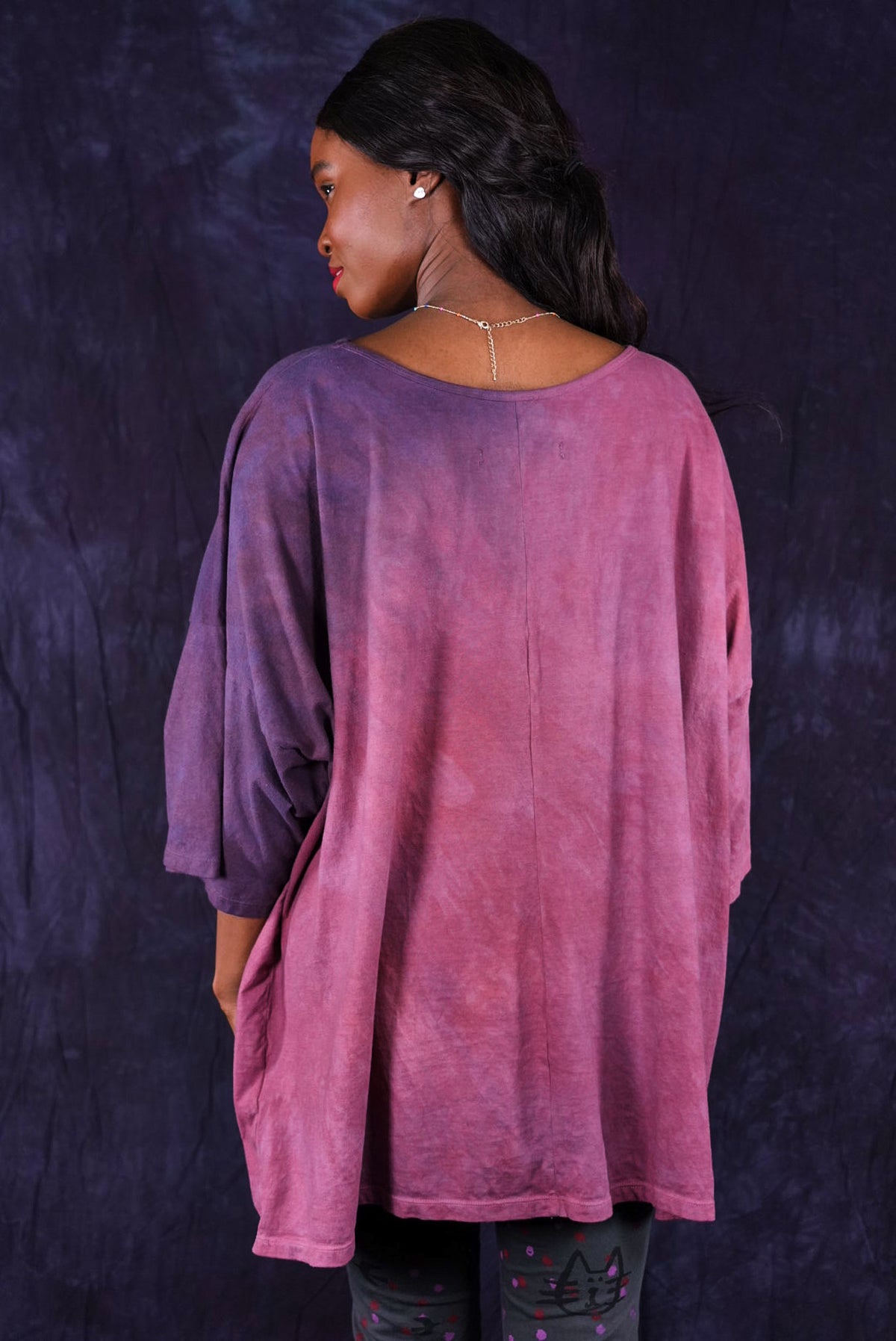 Due to the hand dyeing process, no two are exactly alike but your tee will include the same colors and print motifs.