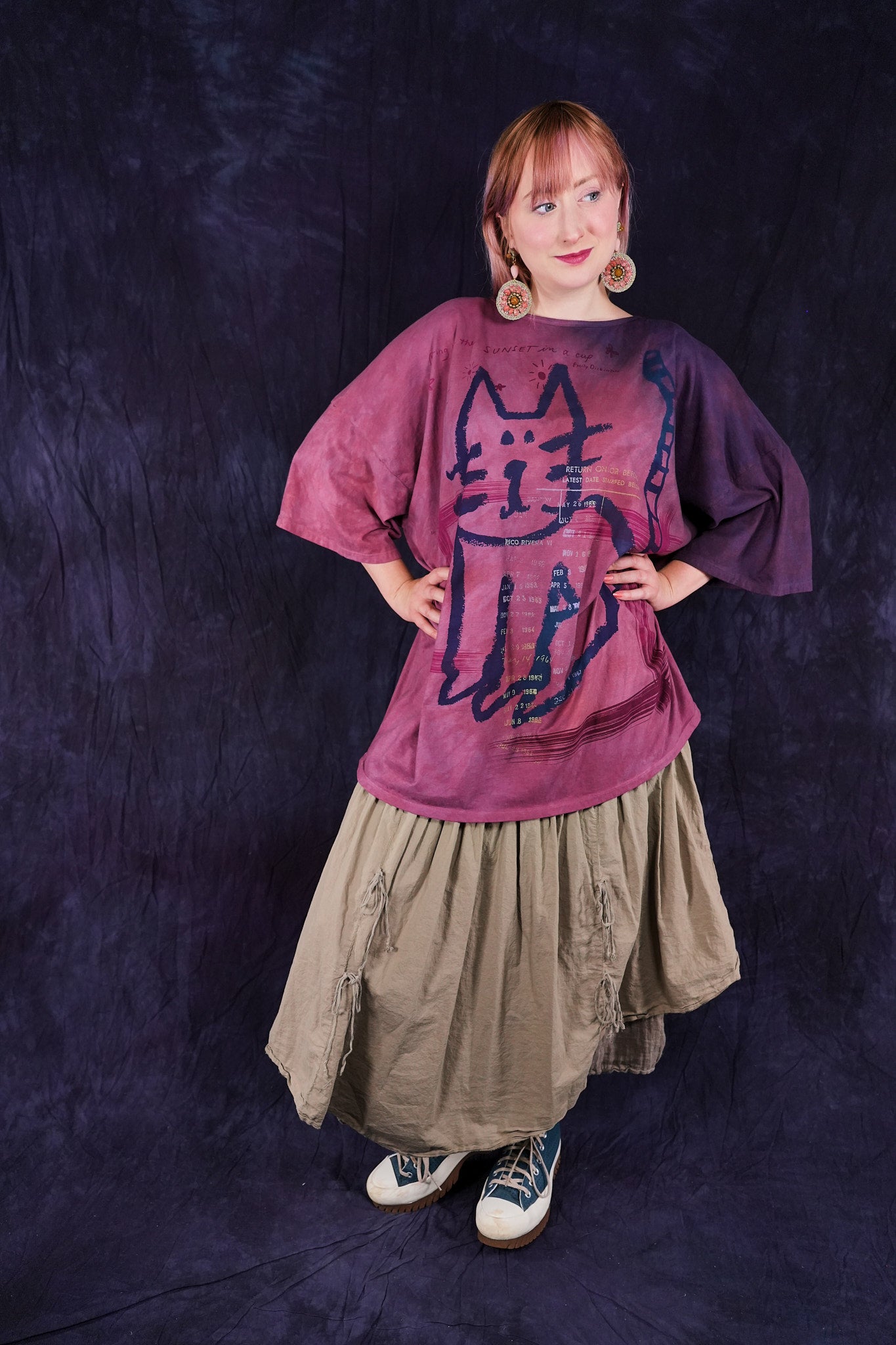 MEOW! This very special one sized, boxy, wide organic cotton tunic is a wardrobe staple you'll want to wear all year long... this magical shape drapes beautifully to flatter every body type.