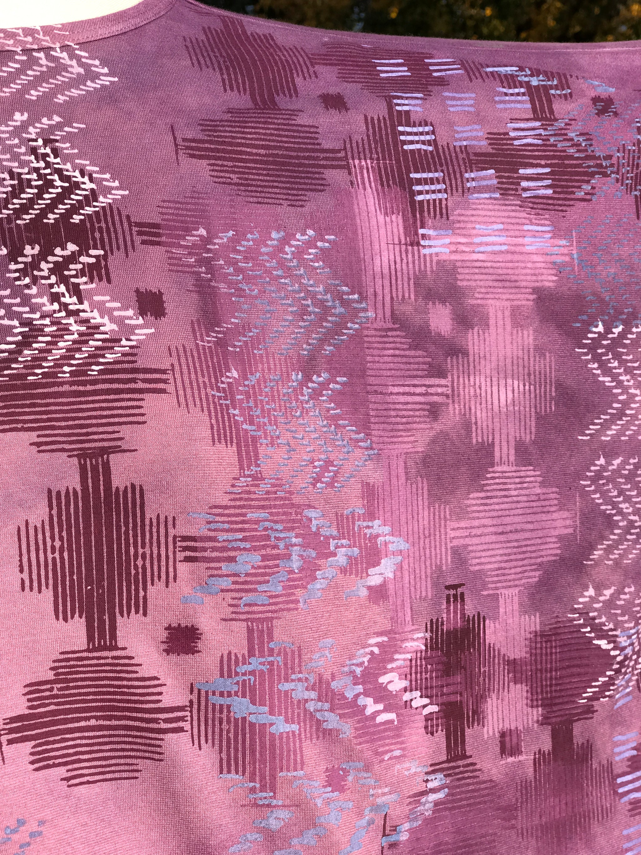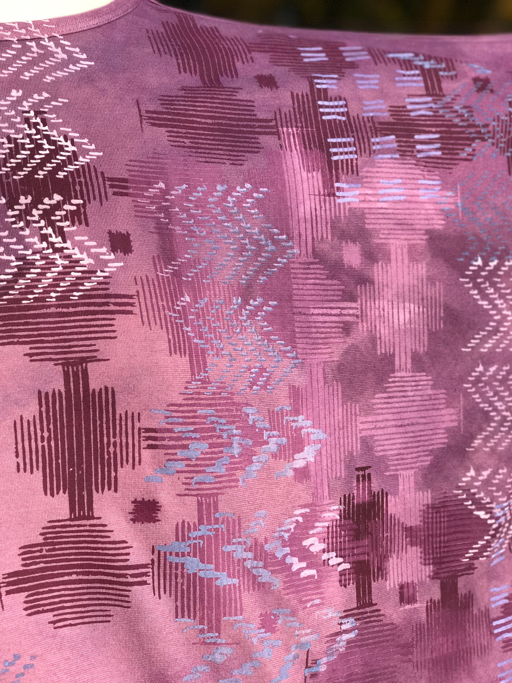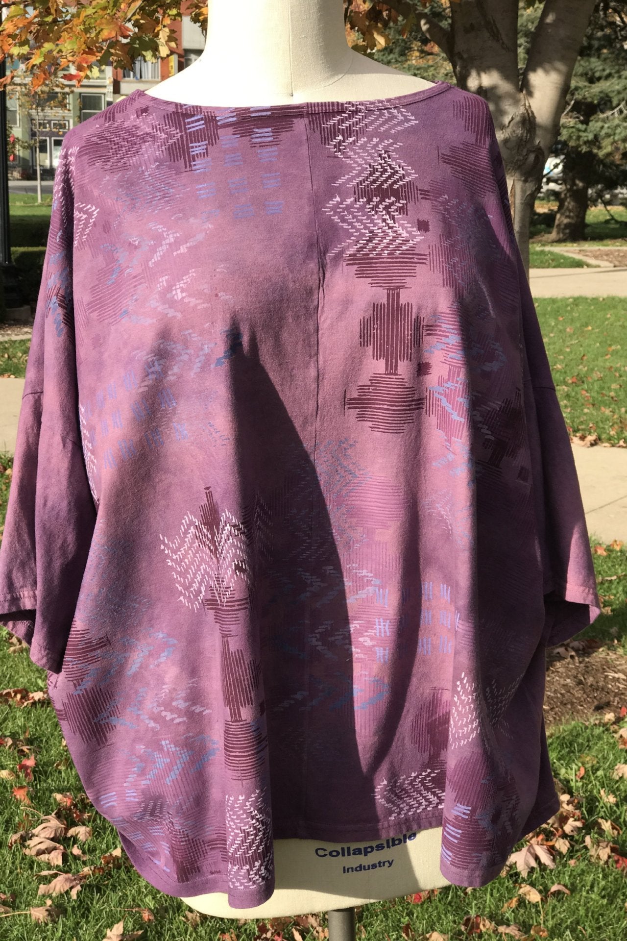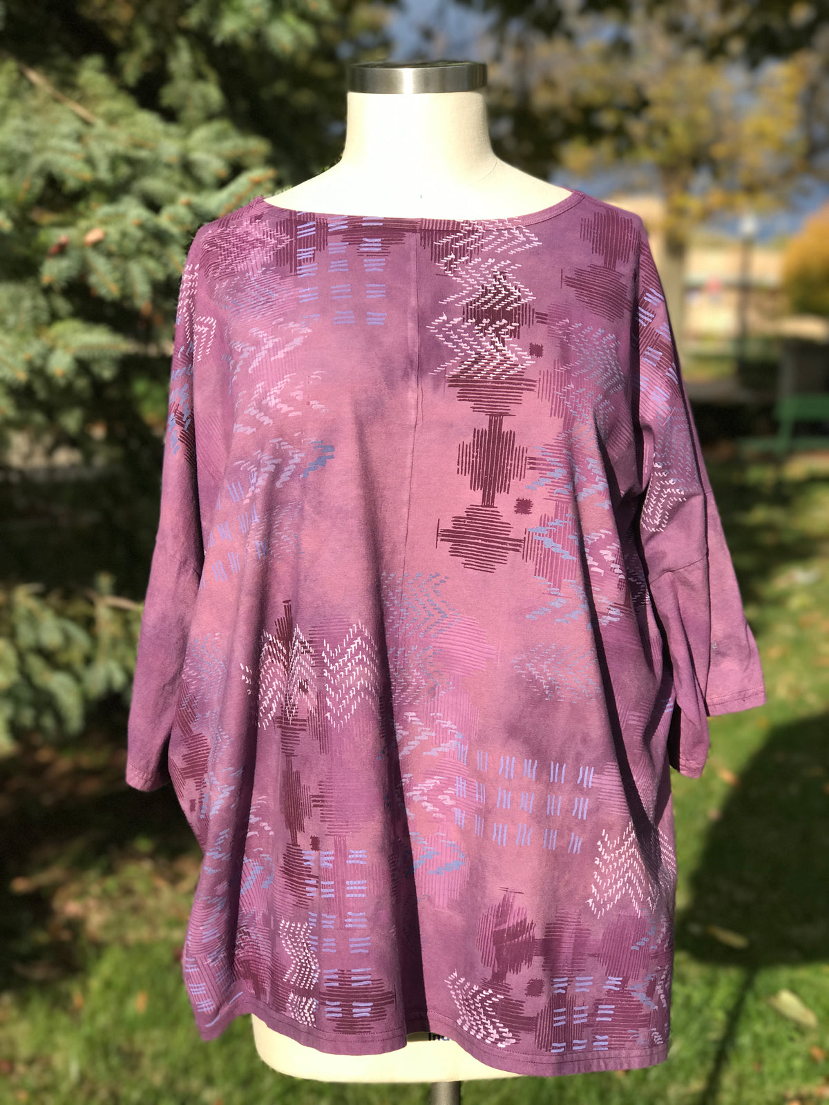 Perfect one-size soft, organic cotton tunic to wear now and into autumn...New colorful & magical designs in color drenched shades that we have hand printed for maximum effect. Limited quantities. Double hand dyed and layered multi-tonal printing. Very oversized. Perfect for lounging. If you love pink-purples, this is for you!