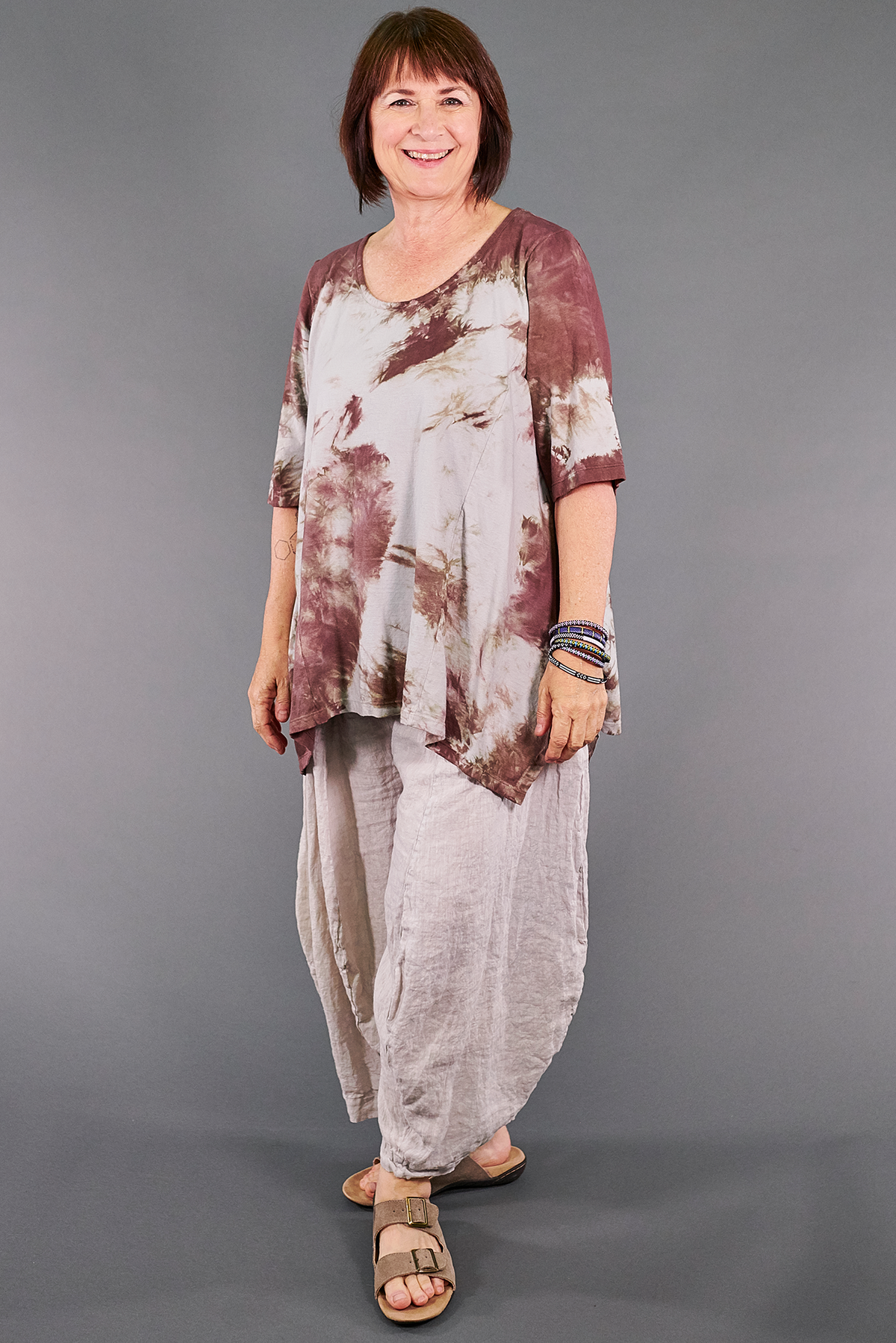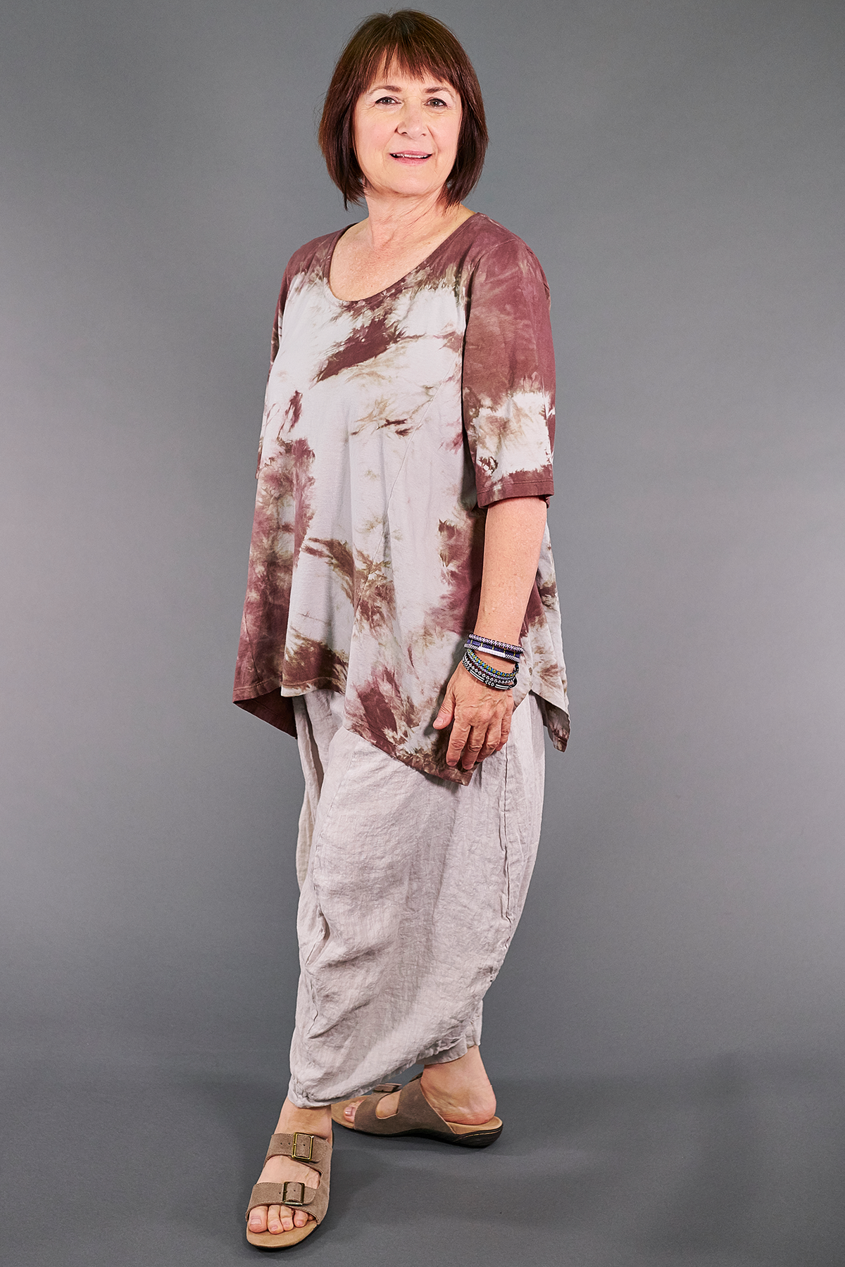 This favorite, limited-edition top was dyed by hand by Jen's son, Sam--in a happy summer color sure to make anyone smile! All body types look fabulous in this wonderfully swing-y tee. Panels on the side give a distinctly Blue Fish shape (zoom in to see details on the pictures).