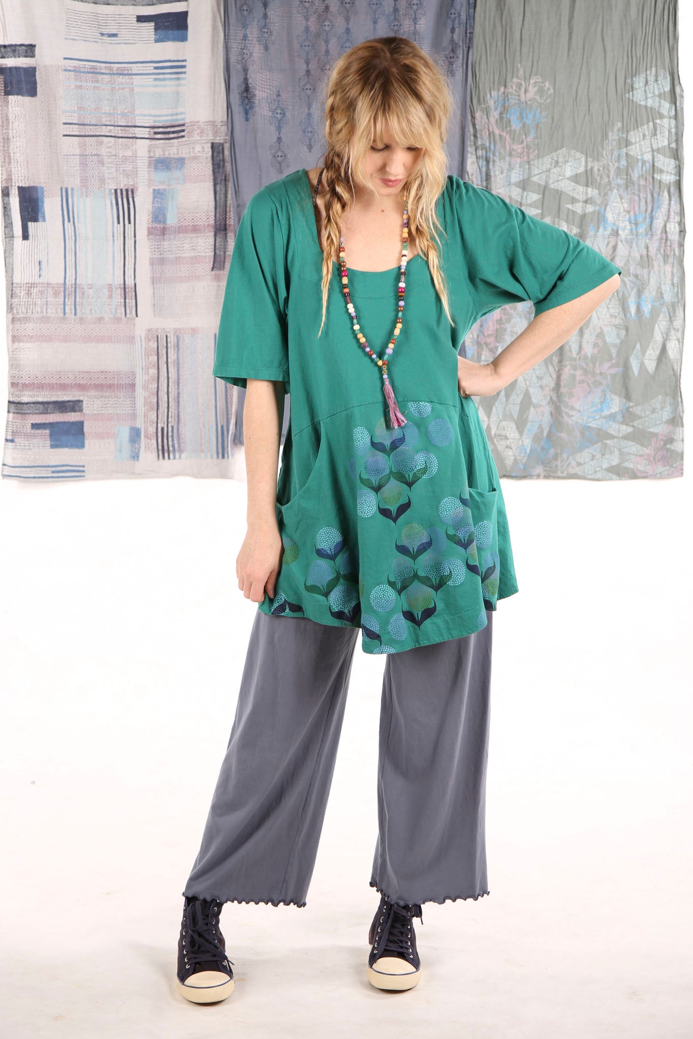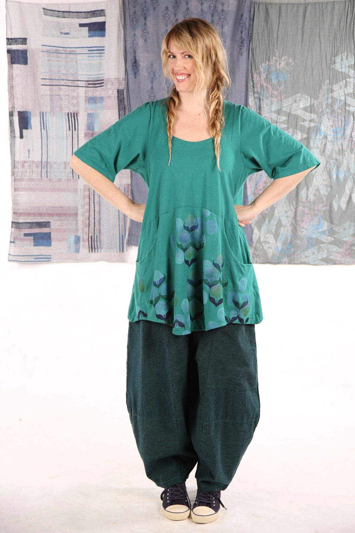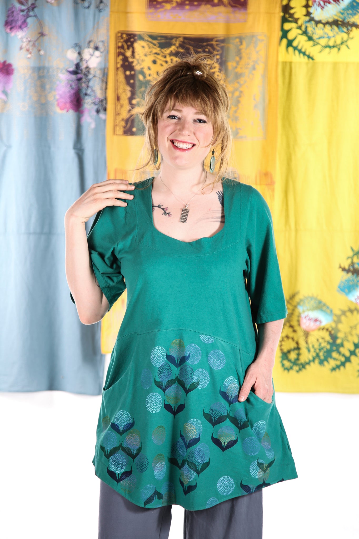 A beautifully feminine top fit for an artful queen of comfort and style. This flattering tunic features a softly squared neckline and gentle shaping through the bodice, ending in a slightly flared hemline. Set-in functional pockets and the softest organic cotton jersey make this top a dream to wear. Sleeves hit just above the elbow. 100% lightweight organic cotton knit, pre-shrunk.